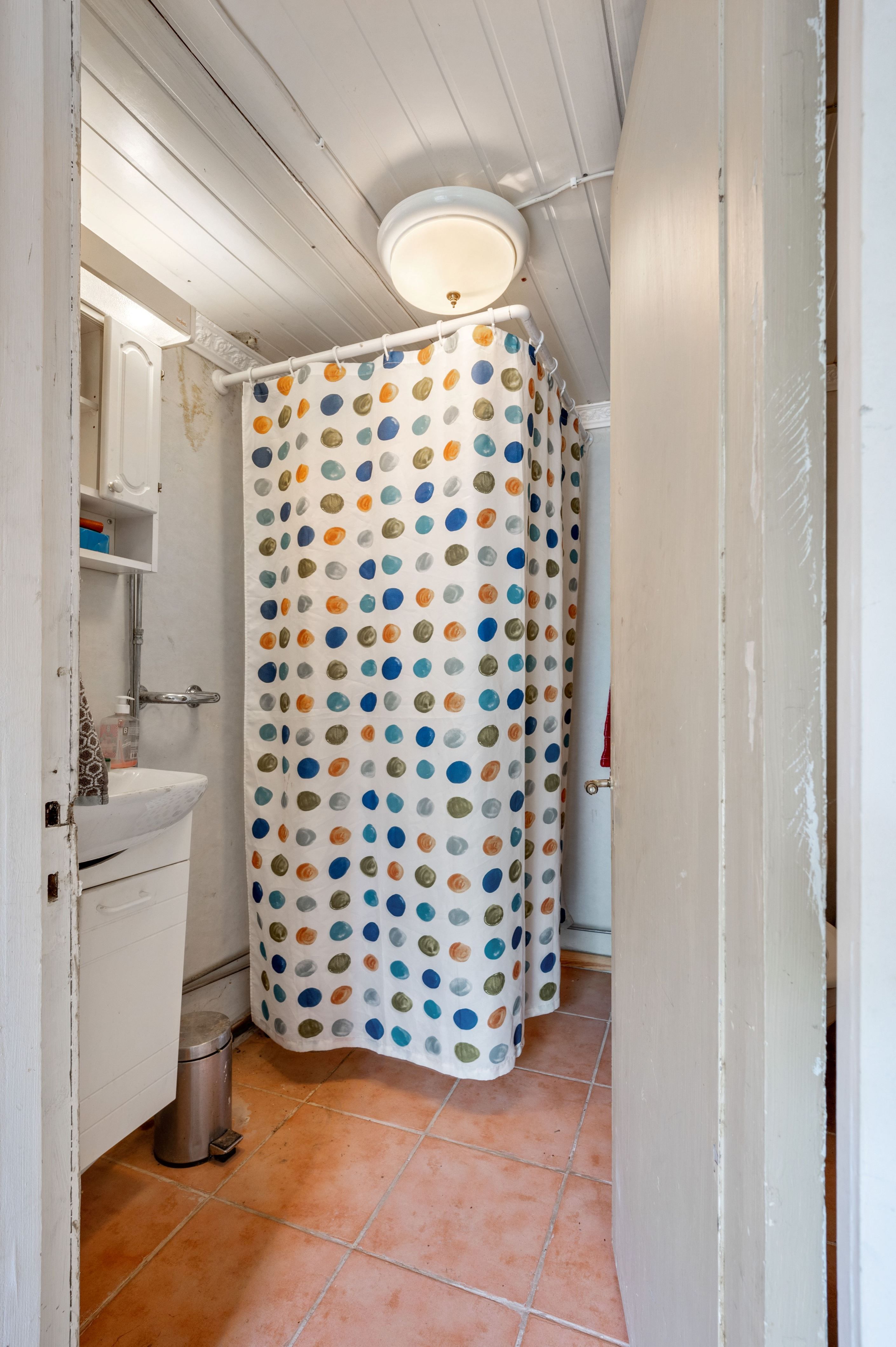 Villan består av två lägenheter om 140 kvm vardera fördelade över två plan. Perfekta att hyra ut eller för familjen som behöver utrymme. Ägaren har låtit renovera lägenheten på entréplan med nytt mörkt laminatgolv och nya vitvaror. Efter entrén följer tre sovrum med samma mörka golv och vita väggar. Efter sovrummen följer det rymliga vardagsrummet som öppnar upp till köket och den altan fastigheten besitter. Köket har nya vitvaror med plats för matbord. Andra våningen har också nyrenoverat kök och ett fint badrum med stora klinkerplattor i en mörk grå nyans. Ni får tillgång till en stor duschkabin och rymligt handfat med goda förvaringsmöjligheter i kommod och skåp. De två övre sovrummen har ett ljusare golv med inslag av en grå fondvägg som skapar en mysig känsla under de mörka timmarna. Vardagsrummet har vita väggar som bryts av med en mönstrade detaljvägg mellan de två fönstren som skapar ett bra ljusinsläpp.