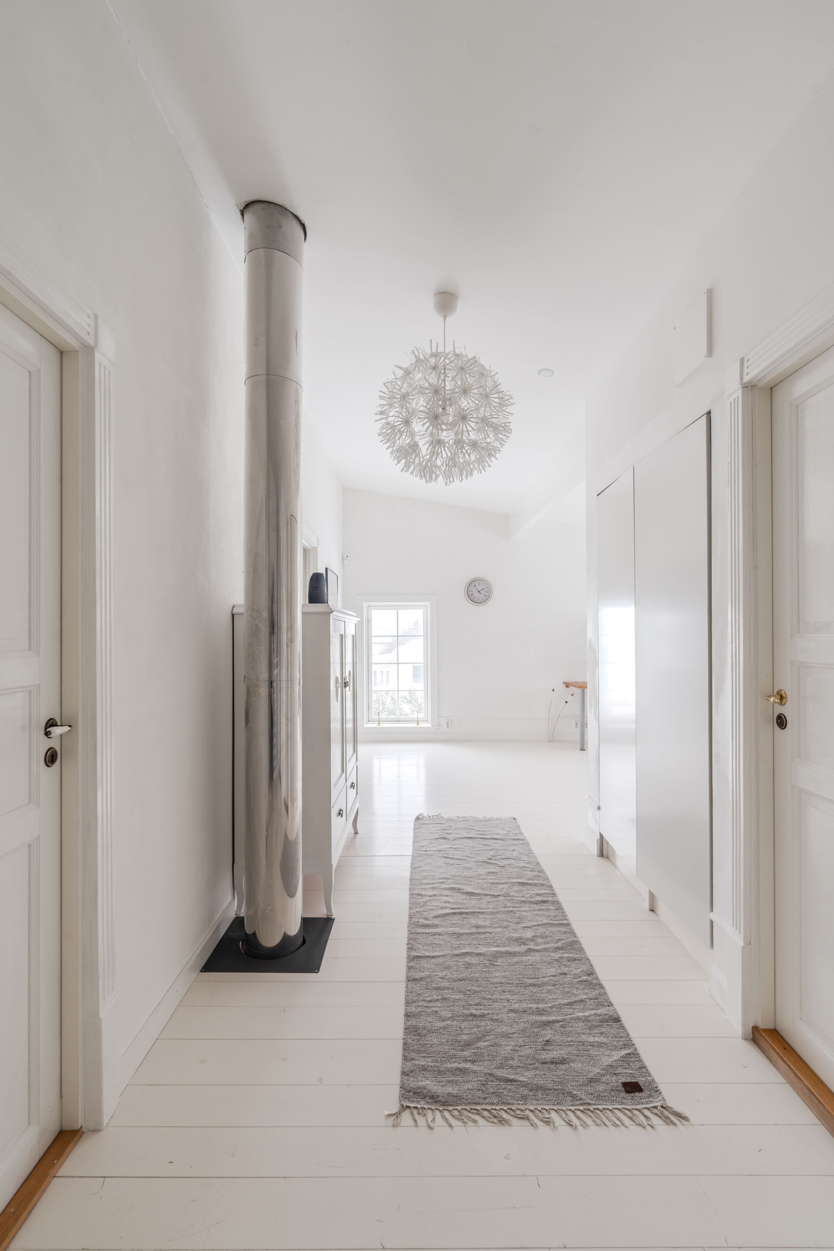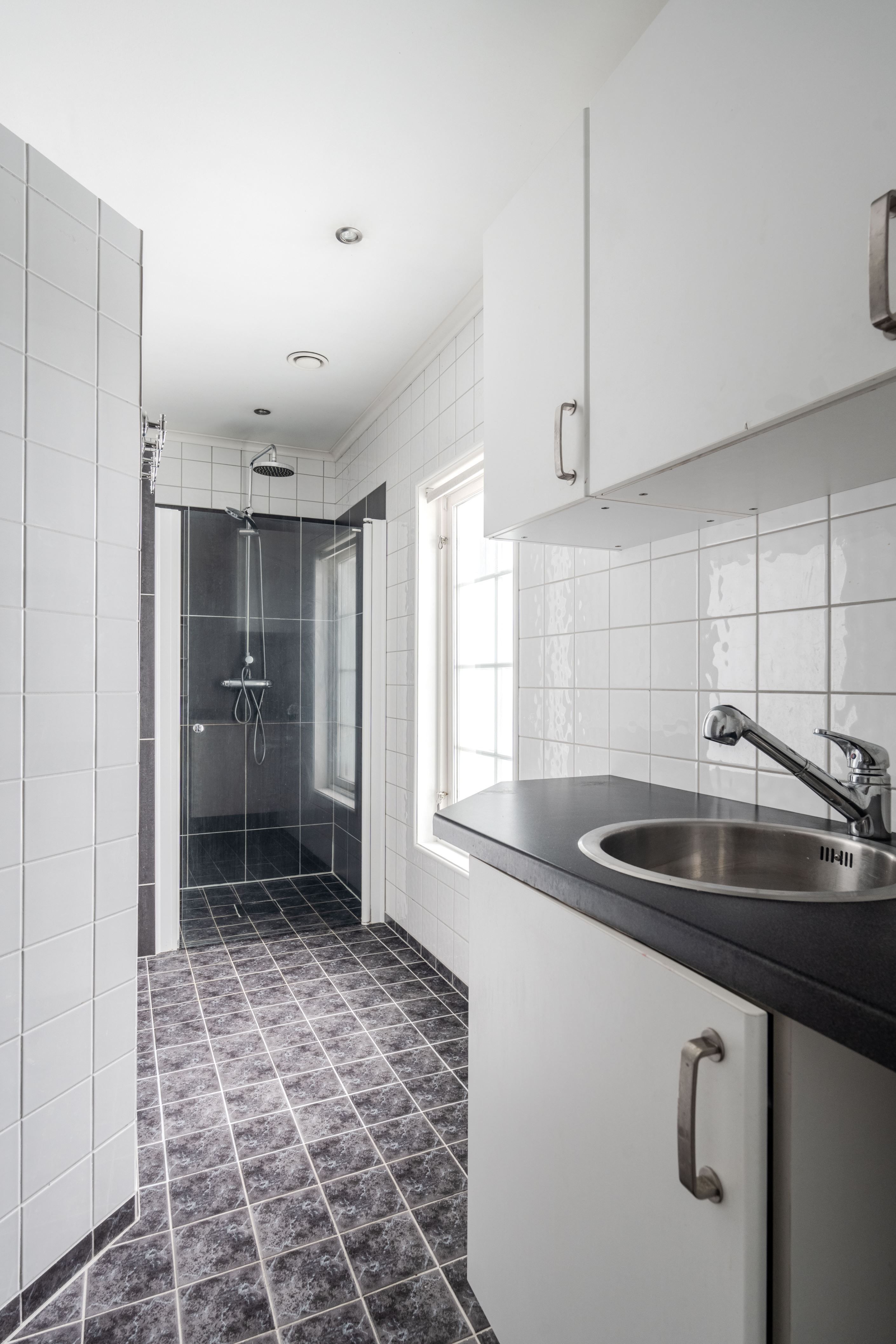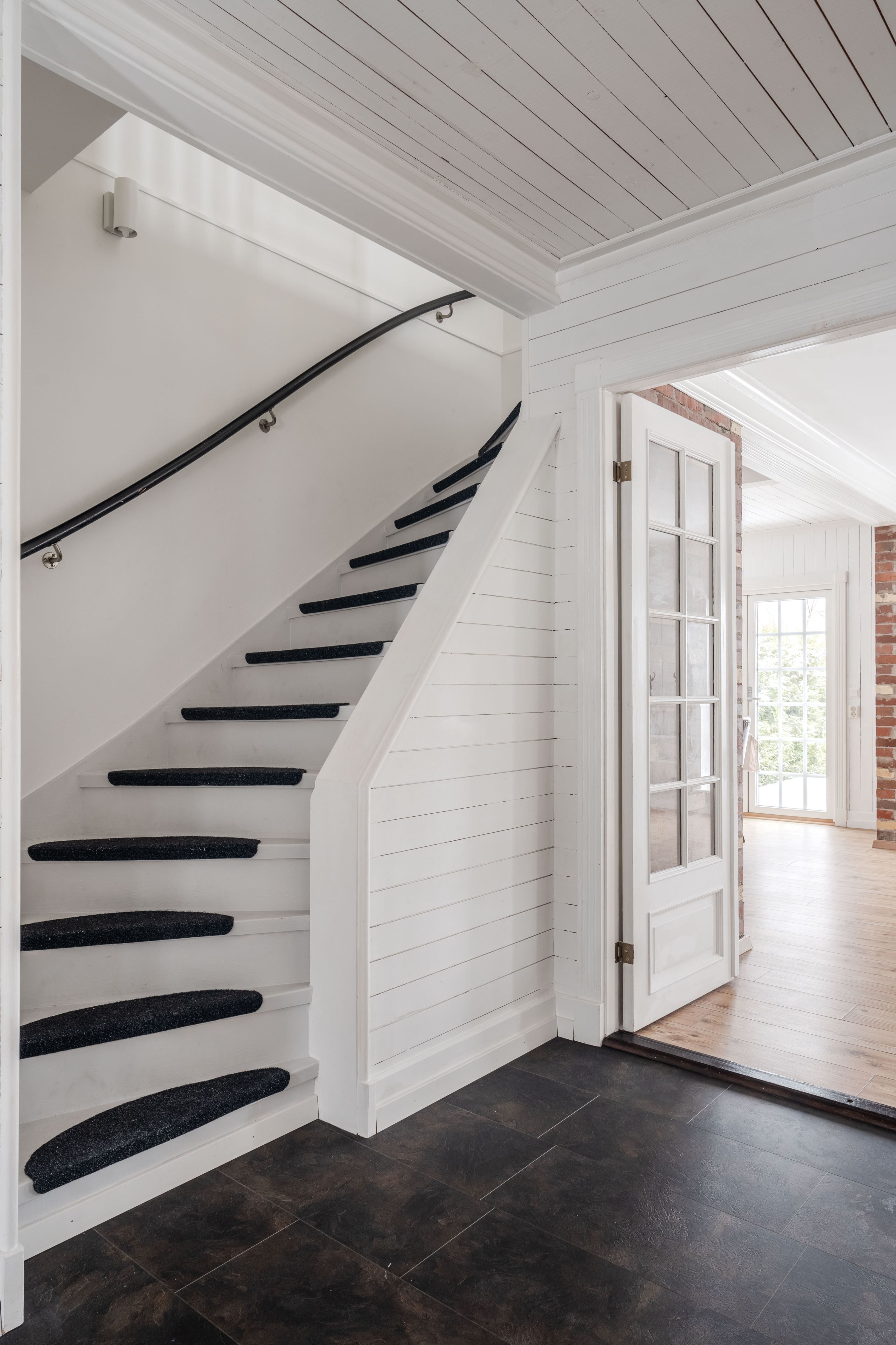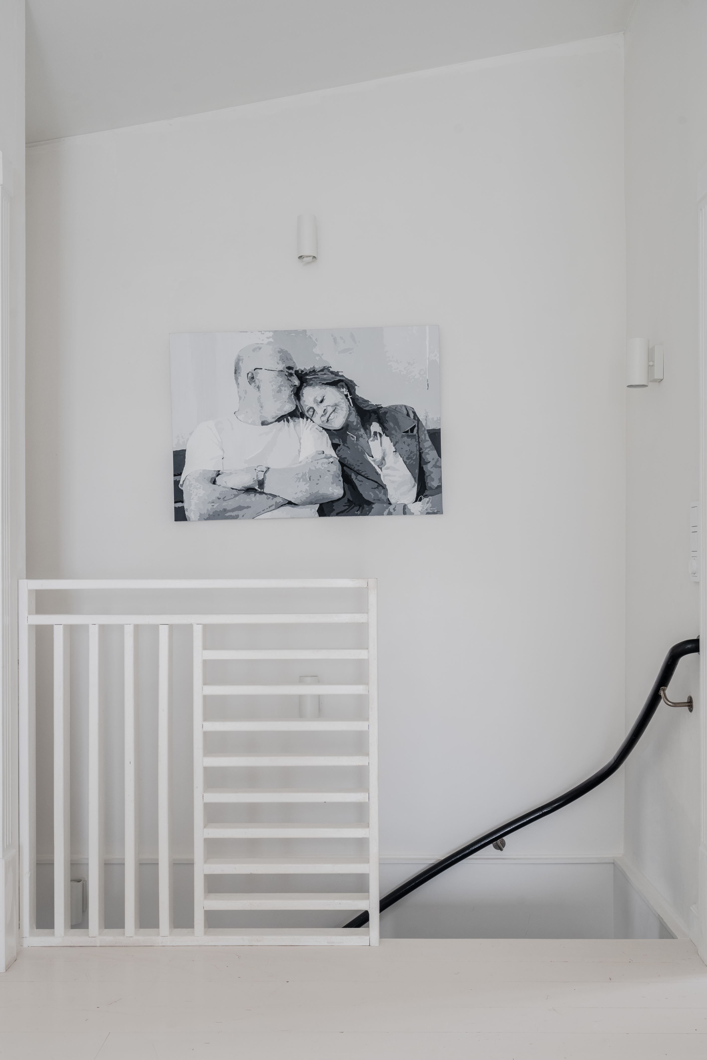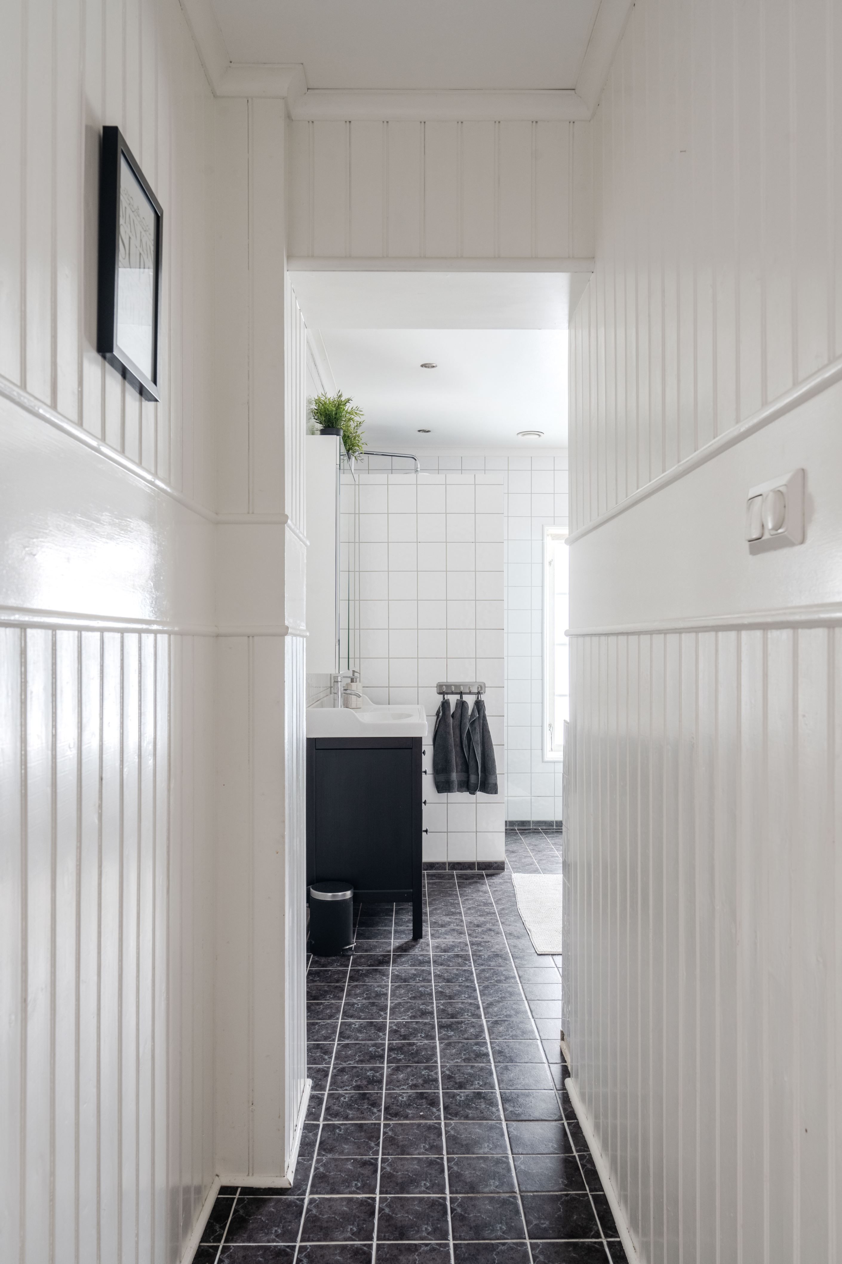 Här möts ni av en rymlig hall med goda förvaringsmöjligheter. Närmast tar ni er till gediget badrum med anslutande tvättstuga. Näst kommer ni till köket som är väl utrustat och erbjuder rejäla arbetsytor. Öppningen mellan matplats och vardagsrum är en mjuk kompromiss mellan stängt och öppet. Vardagsrummets platsbyggda bokhylla är lika vacker som praktisk och sätter tillsammans med kaminen en hemtrevlig prägel över rummet. De stora fönsterpartierna låter ljuset flöda och skapar ett fint samspel mellan ute och inne. Dubbeldörren leder er sedan ut till en fantastisk utsida som har fått minst lika mycket kärlek som insidan och bjuder på flera uteplatser där ni kan njuta av solen från morgon till kväll.
