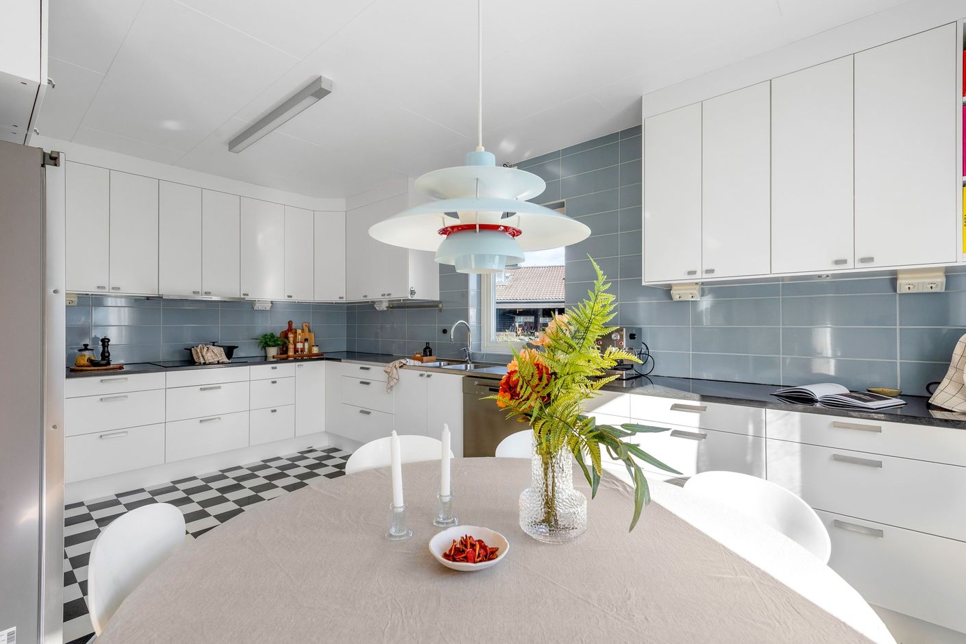 Villan har tegelfasad som inte bara är vacker att se på utan också enkel att sköta. Innanför dörren möts du av ljusa och rymliga sällskapsytor. De fem sovrummen ger utrymme för både familj, gäster och hemmakontor!
