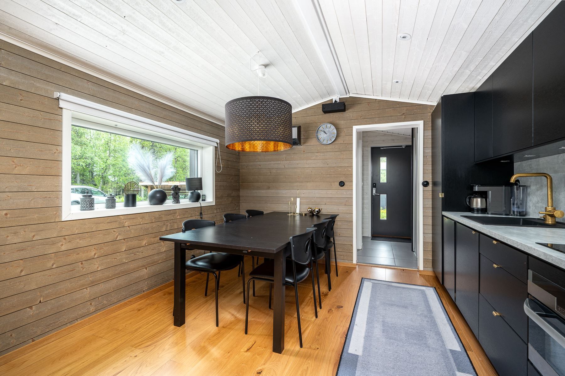 Här finner du en välrenoverad och utbyggd stuga på Dundret! Här kan du bjuda på middagar i det rymligt köket med stor matplats. På övervåningen finns underbart vardagsrum med fönster från alla håll vara av panorama fönster mot Dundrets topp. Genuina och enhetliga materialval med träpanel på väggar och tak. Klinkergolv med el golvvärme i hallen. Två sovrum var av ett med garderob. Varmt välkommen att anmäla ditt intresse!