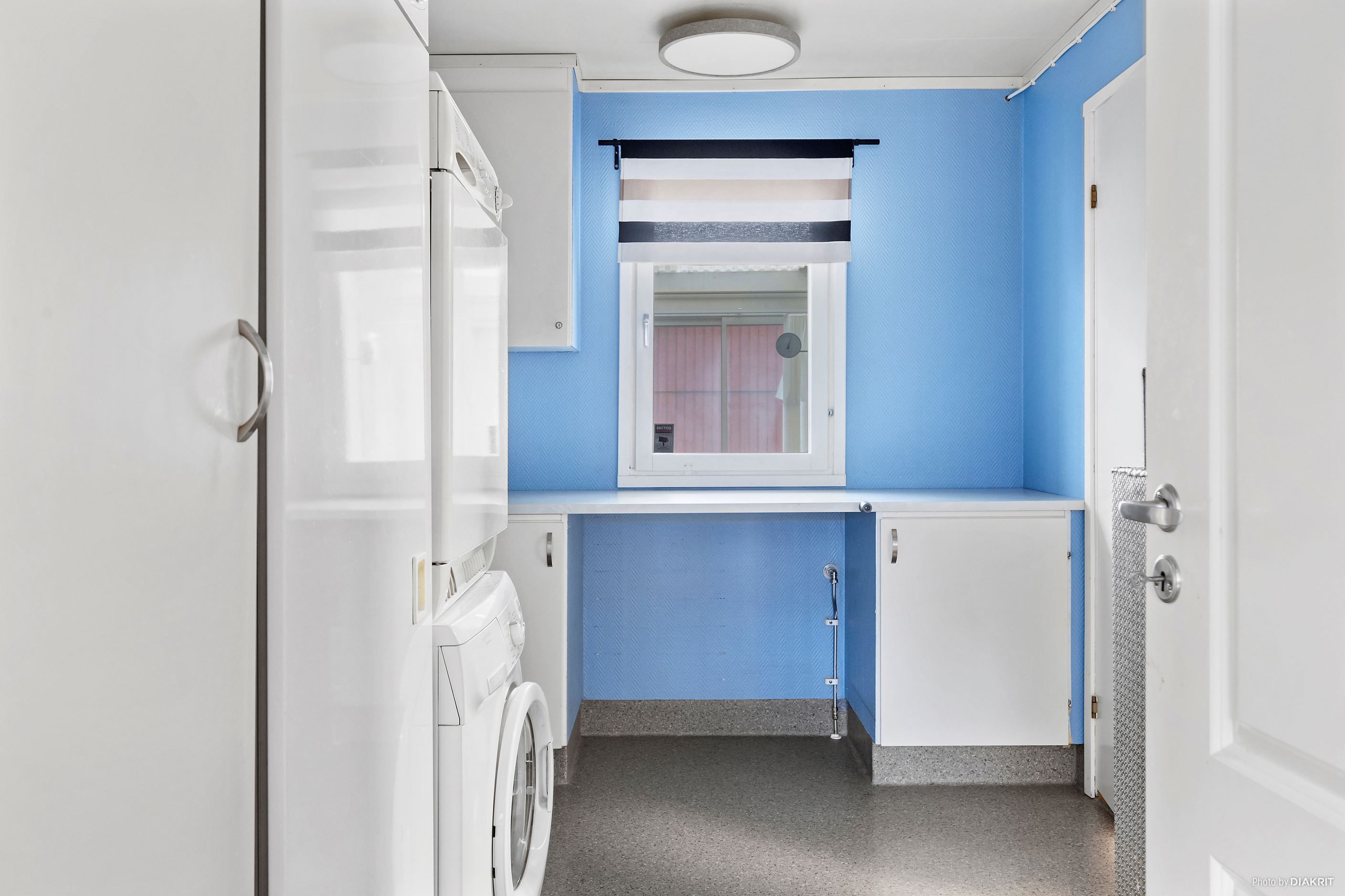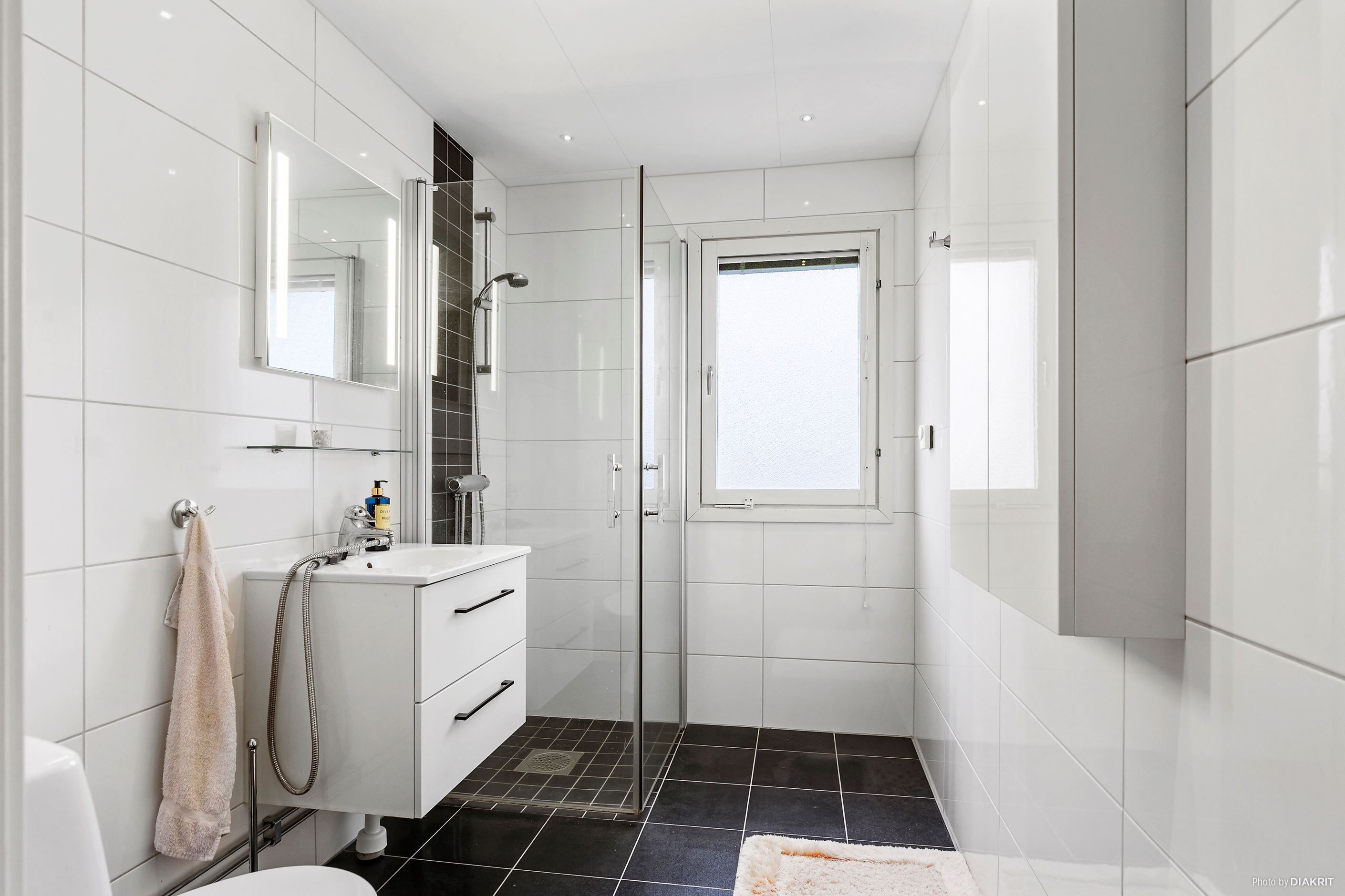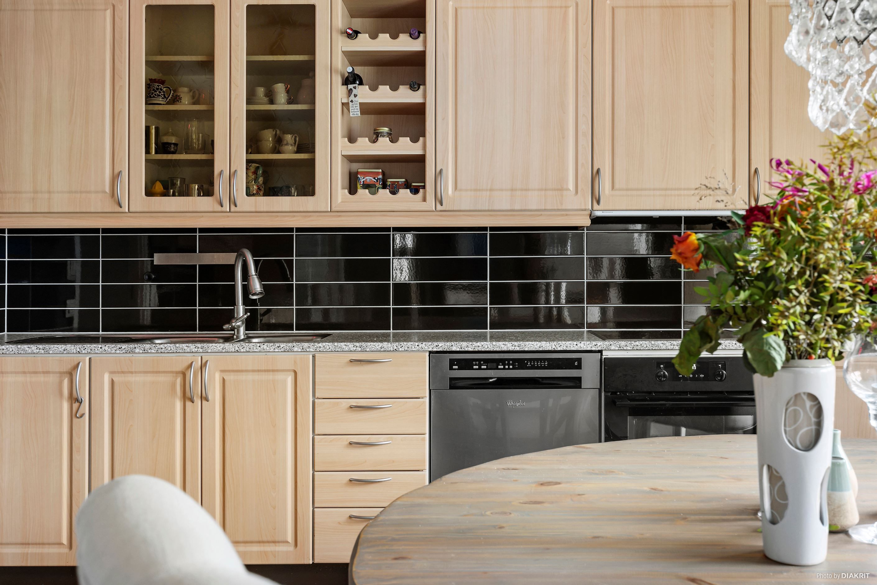 Intill vardagsrummet ligger det rymliga köket, välplanerat med generösa arbetsytor och plats för ett större matbord. Här finns alla förutsättningar för att laga mat, umgås och njuta av vardagen i en öppen och trivsam miljö.