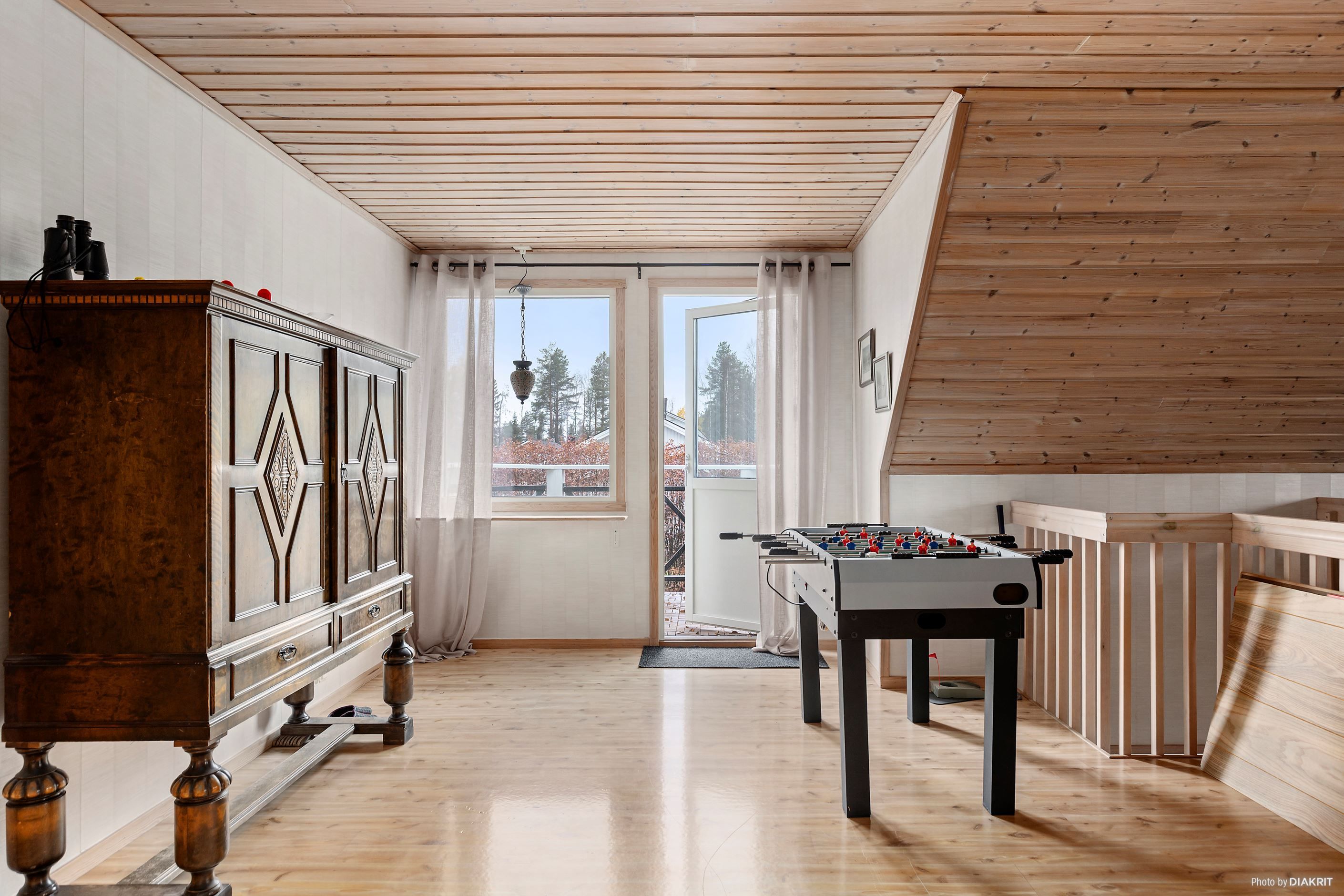 På övre plan möts du av ett stort och öppet allrum – en perfekt samlingsplats för familjen, lekrum för barnen eller ett rymligt hemmakontor. Här finns även två stora sovrum, ett förråd samt en wc. För den som behöver fler rum kan allrummet enkelt delas av för att skapa ytterligare ett eller två sovrum, vilket gör att bostaden kan anpassas efter familjens behov över tid.