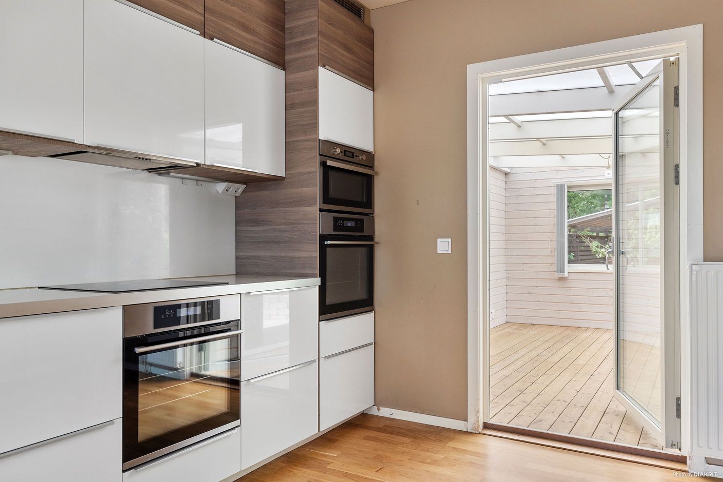 Från köket når du ett trivsamt uterum (ej vinterbonat) som förlänger utesäsongen, och i anslutning till detta finns en generös terrass i en avskild del av innegården – idealisk för både avkoppling och umgänge under årets varmare månader.