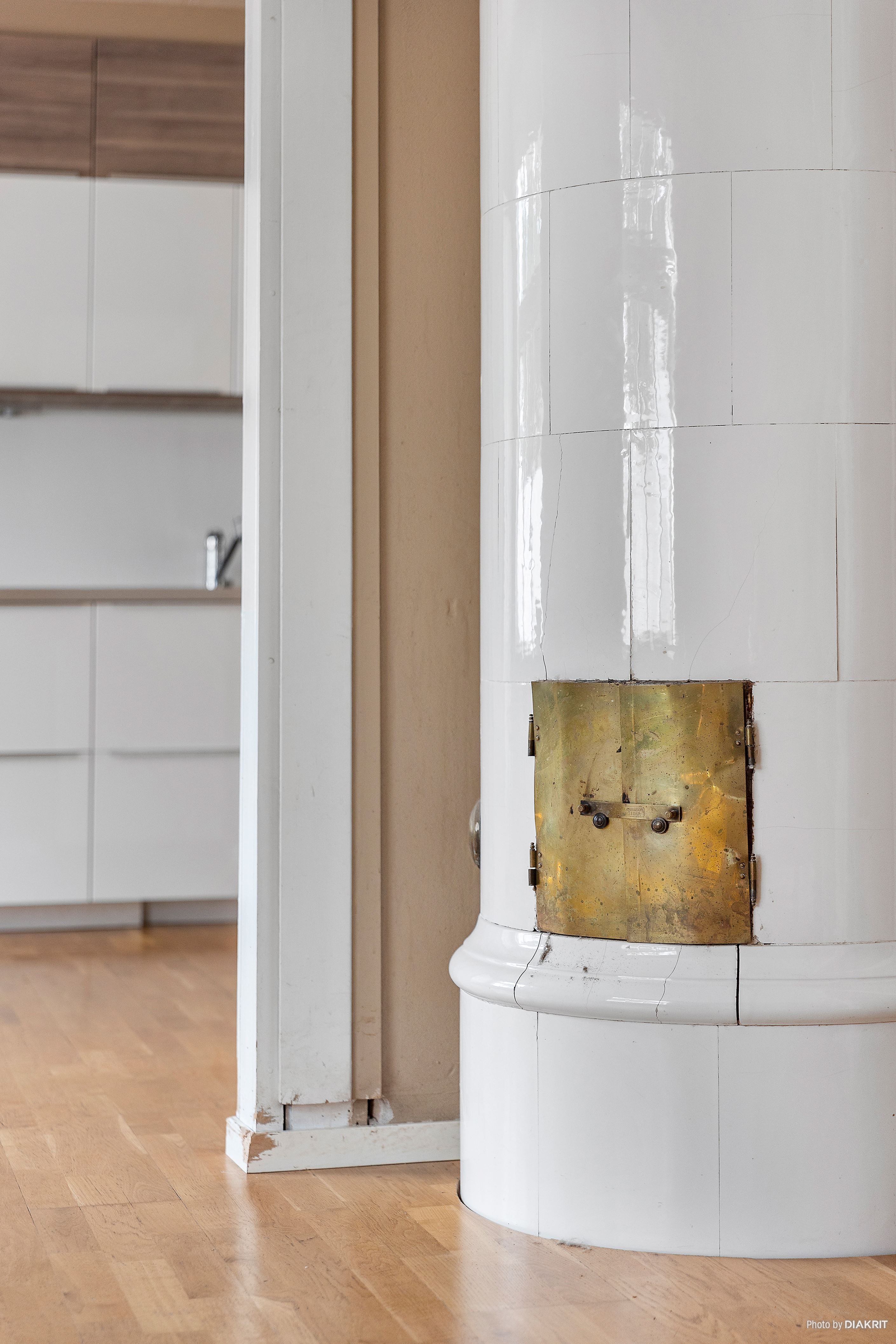 Här möts du av ett rymligt och ljust kök i öppen planlösning med matsalen – perfekt för sociala middagar och familjeliv. Två vackra, bevarade kakelugnar skapar en stämningsfull känsla i bostaden (eldningsförbud råder i båda).