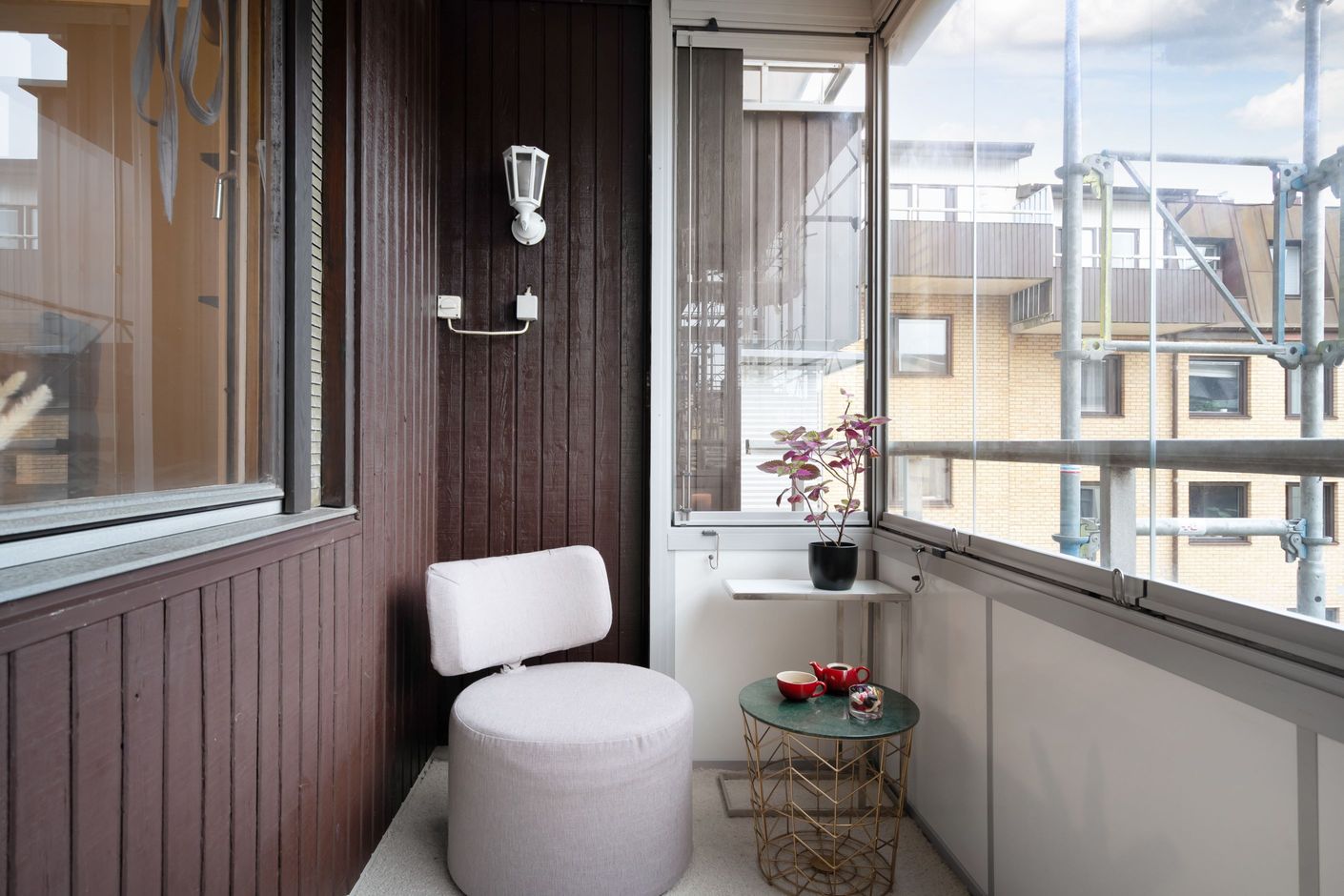 Trea med drömläge - högt upp i huset, inglasad balkong & stabil förening!