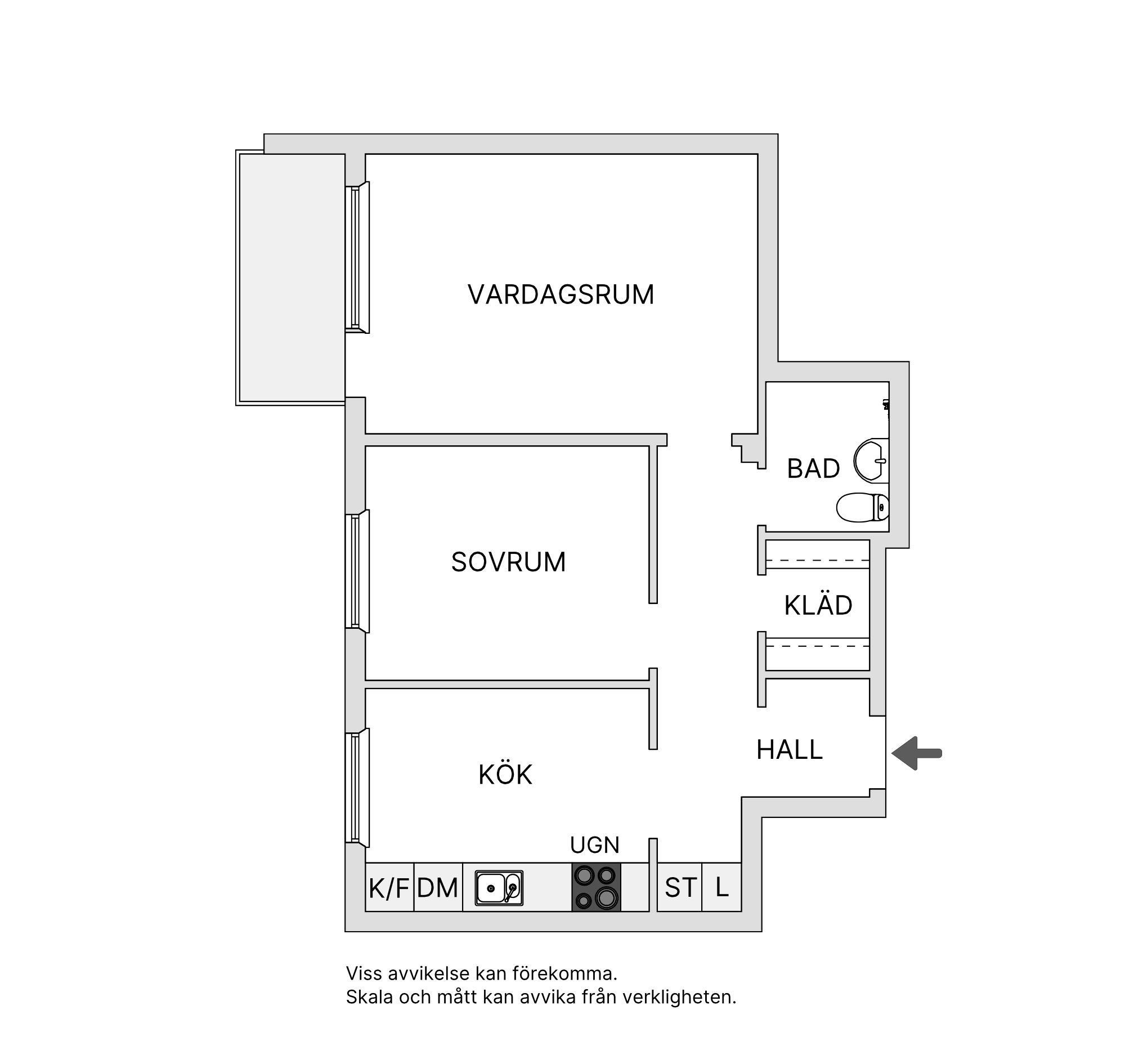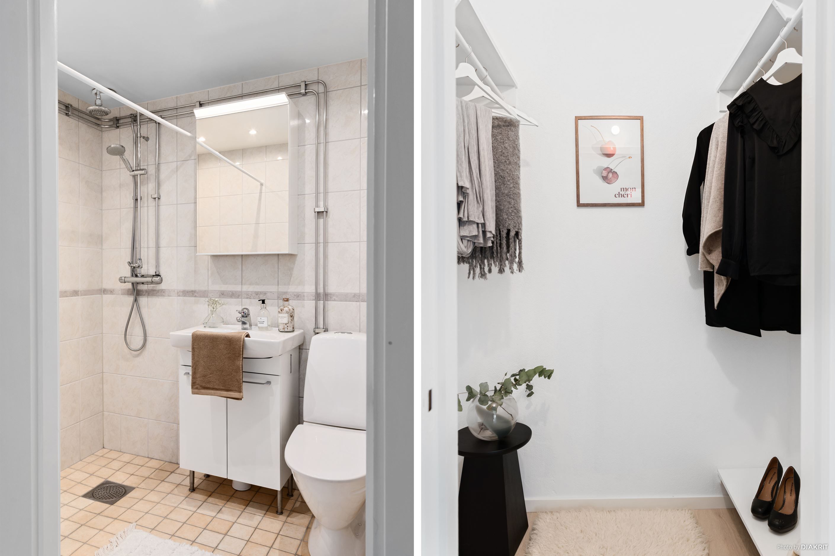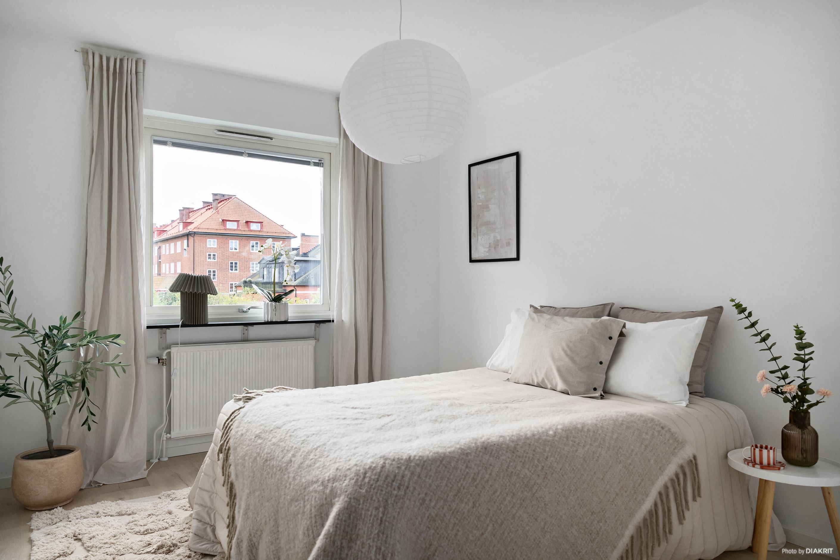 Sovrummet är rofyllt med gott om plats för dubbelsäng och personliga inredningsval. Rakt över i hallen ligger en praktisk walk-in-closet som ger ordning och struktur i vardagen. Badrummet är helkaklat i ljusa toner med dusch, kommod och wc – funktionellt och lätt att trivas i. Dessutom förberett för tvättmaskin.