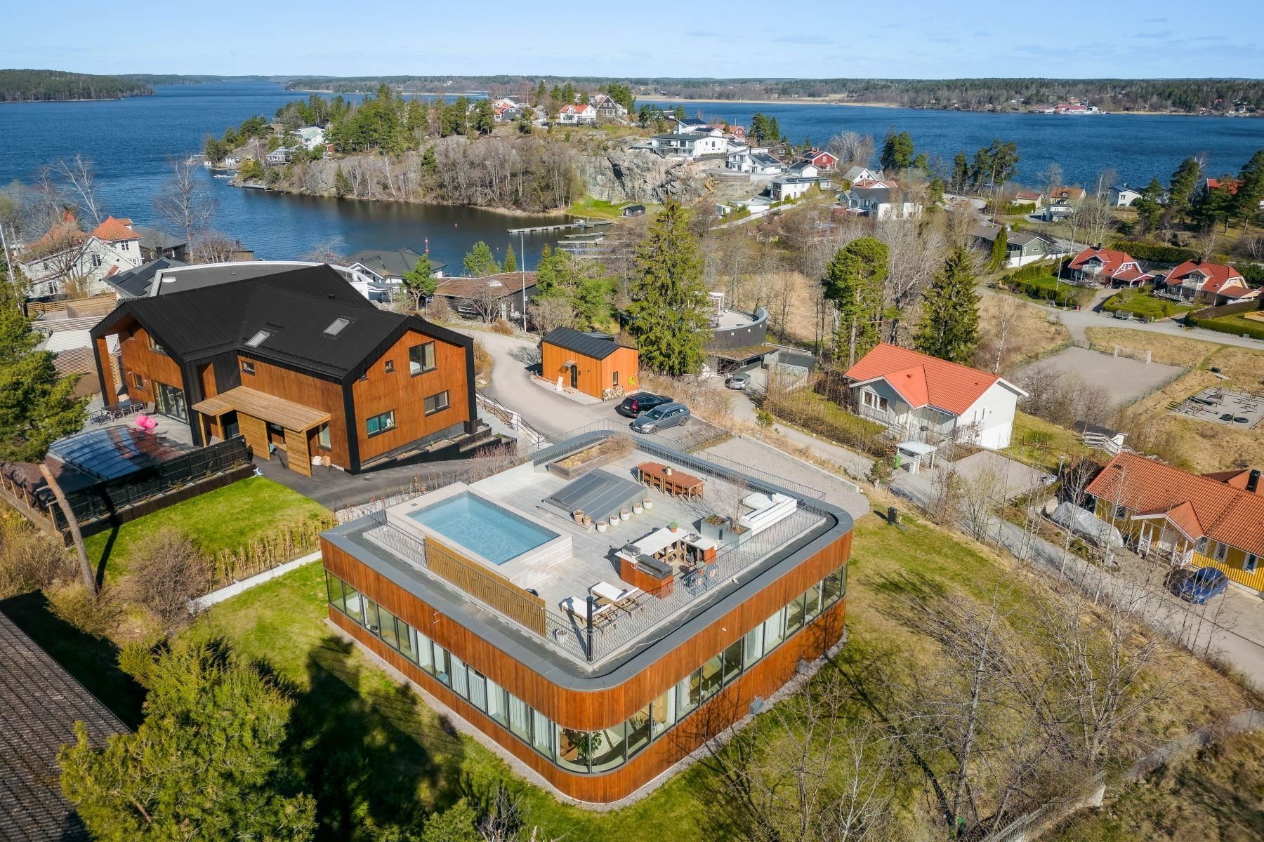 Exklusiv villa med milsvid Mälarutsikt, takterrass med pool i eftertraktade Älvnäs