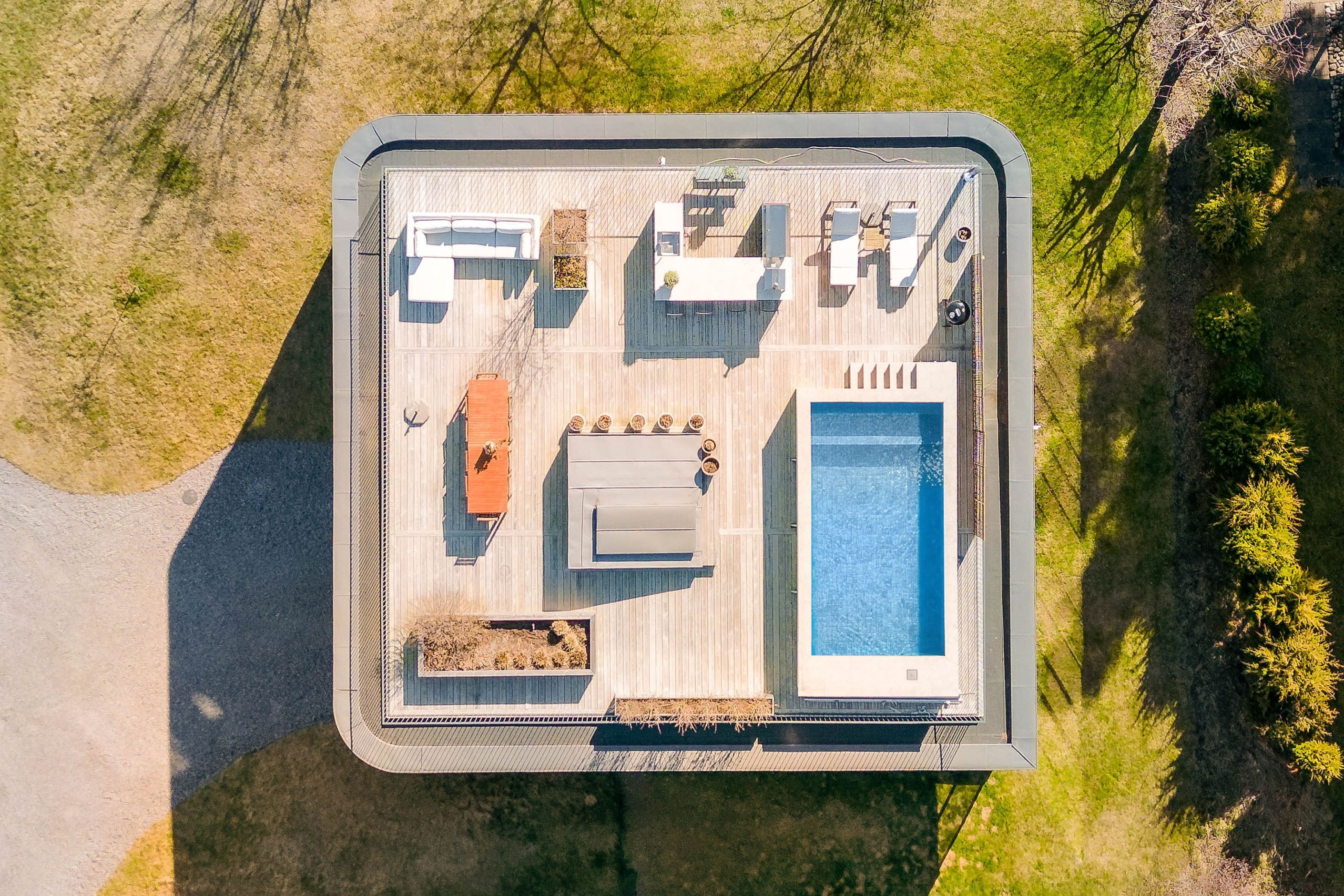 Villan omfattar en totalyta på närmare 500 kvm, inklusive en takterrass om cirka 200 kvm med pool, utekök och generösa sällskapsytor. Huset präglas av en öppen planlösning, högt i tak och ett obrutet fönsterband runt hela byggnaden, vilket ger ett fantastiskt ljusinsläpp och en ständigt närvarande kontakt med naturen utanför.