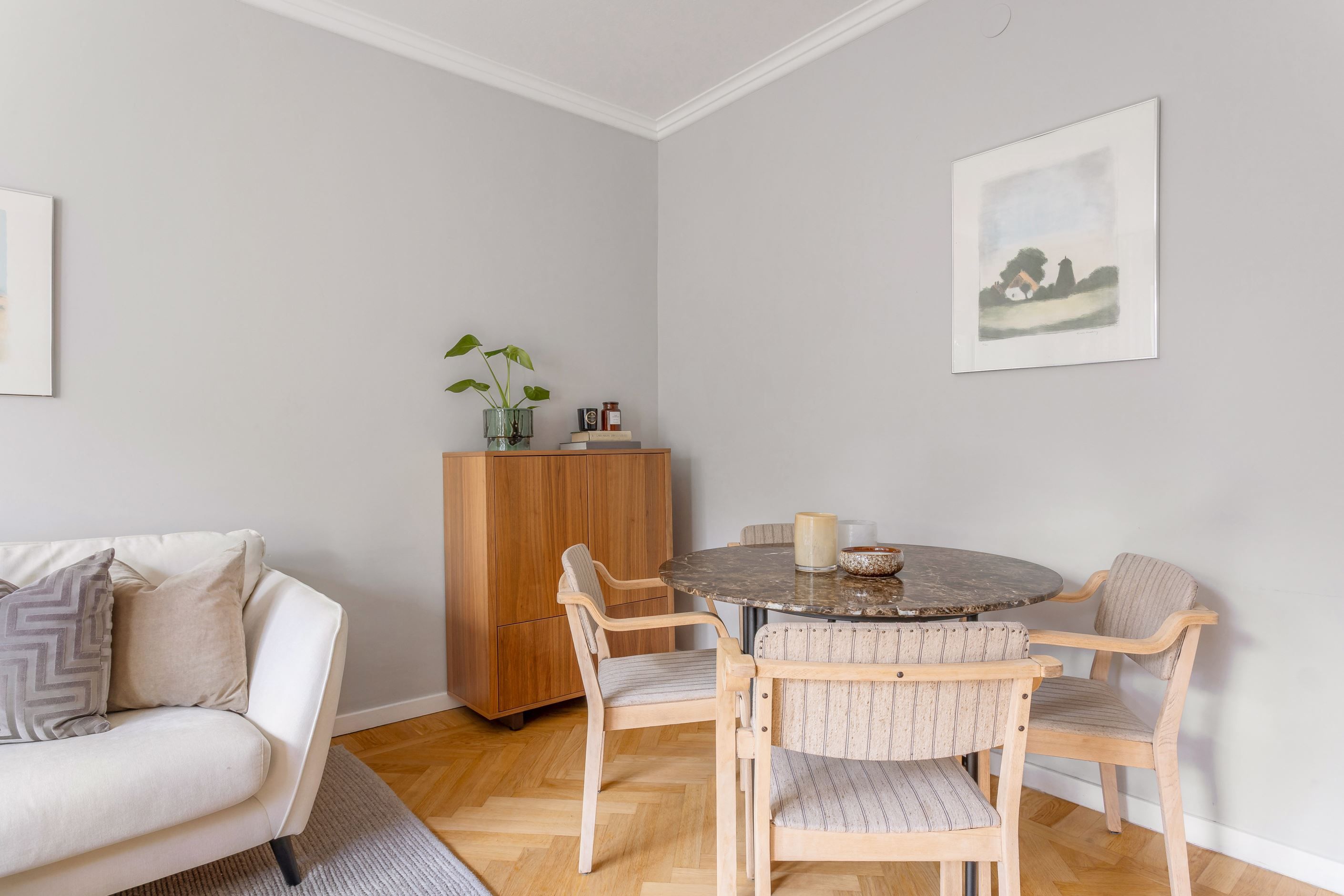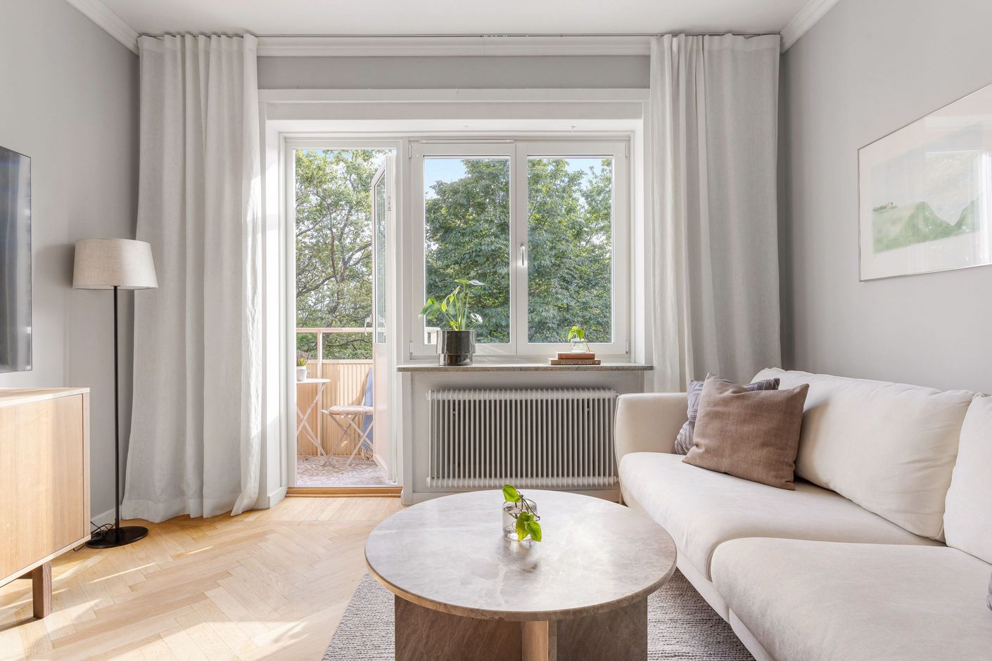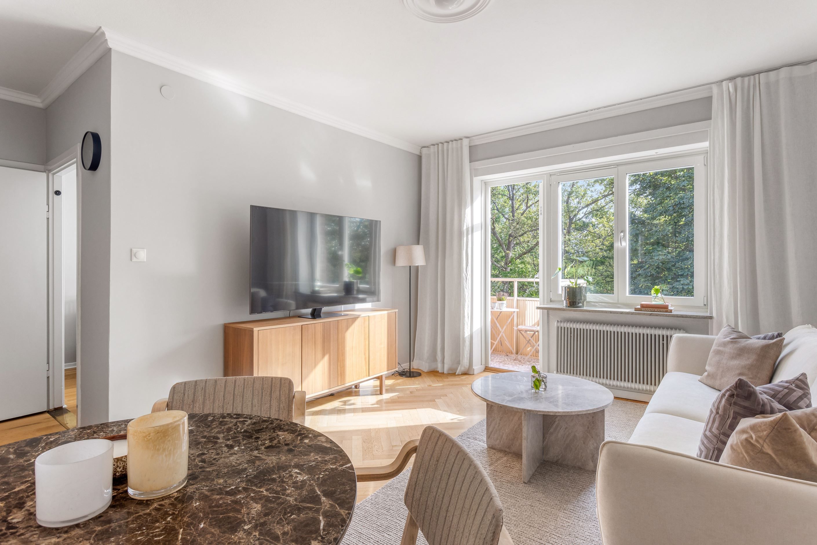 Här bor du på ett högt och trevligt mellanplan med balkong i ett fritt och ogenerat läge. Lägenheten är genomgående renoverad och erbjuder generös takhöjd samt ett fint ljusinsläpp från fönster i flera väderstreck, vilket skapar en ljus och luftig känsla. Det renoverade köket och det stambytta badrummet med dusch gör bostaden både modern och bekväm – här är det bara att flytta in och börja trivas.