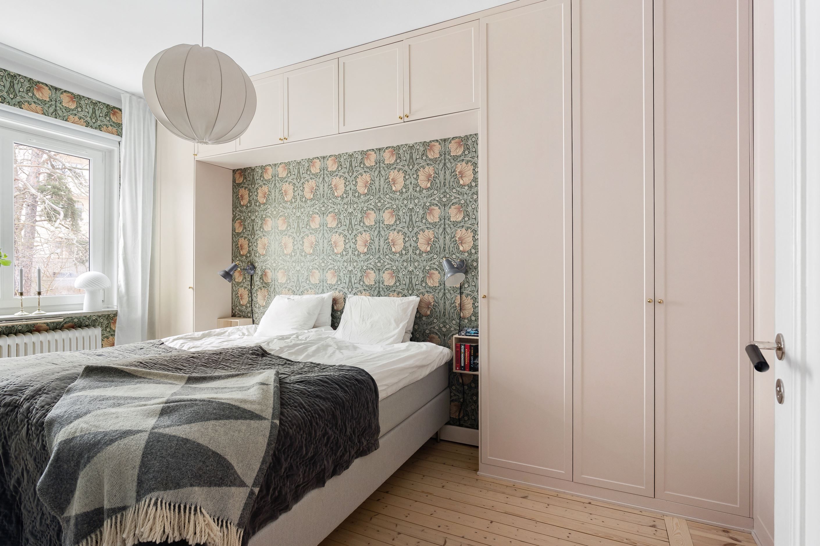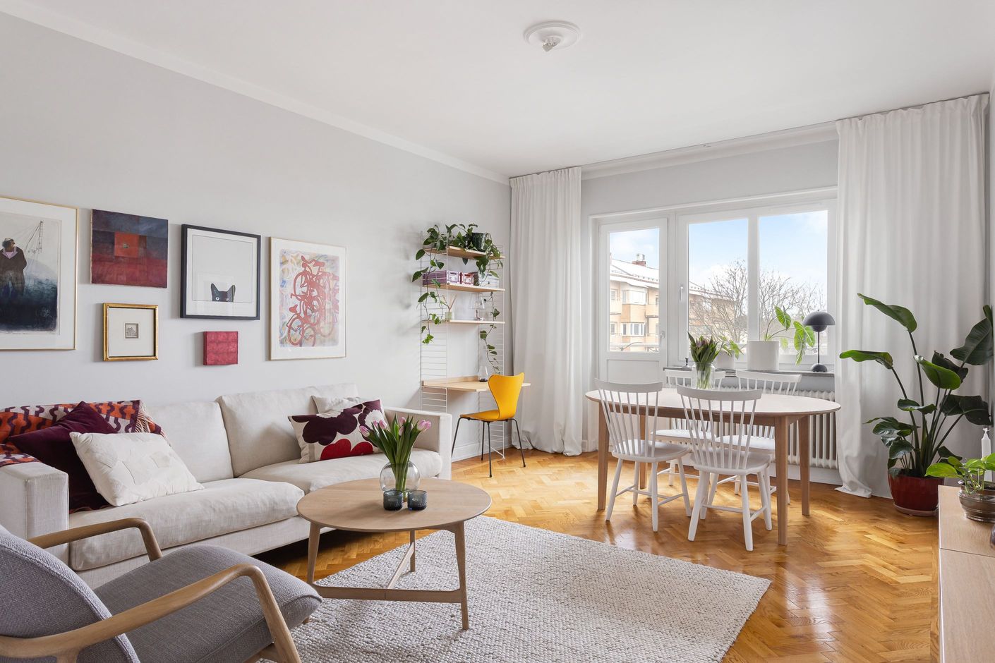 Med härligt högt och fritt läge ligger denna mycket välplanerade ljusa lägenhet med hela 2,7 m i takhöjd. Ett tillfälle att förvärva en fantastiskt fint renoverad lägenhet i väldigt lågt belånad förening. En rymlig balkong med högt läge i sydväst. Genomgående vackra parkettgolv. Mycket stilrent renoverat kök med inbyggda vitvaror. Renoverat helkaklat badrum. Rofyllt lyxigt sovrum med "hotellkänsla" innehållande platsbyggd förvaring med garderobsdörrar från Lucks by Robo och framtaget originalgolv. Vardagsrum med utgång till balkong och tidstypiska detaljer.