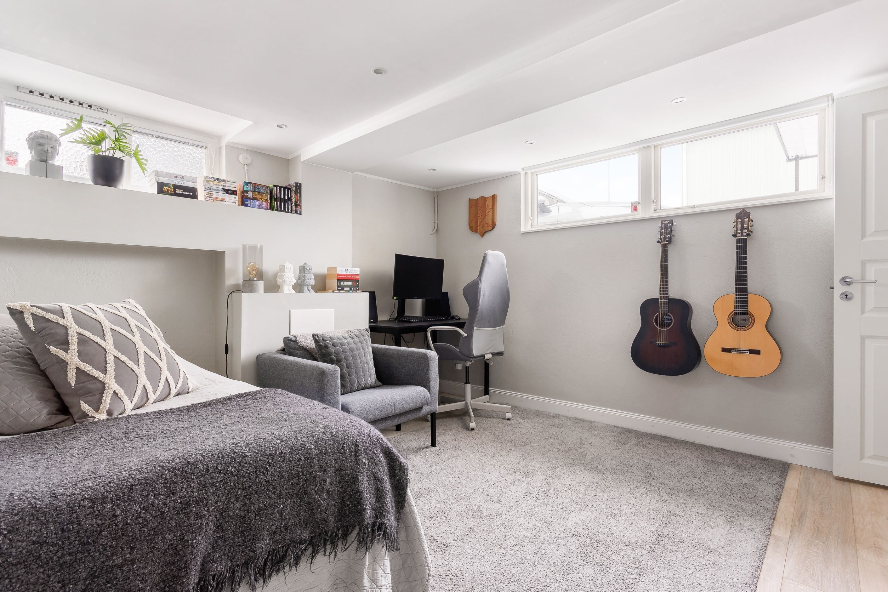 NEDRE PLAN är trivsamt inrett med två generösa SOVRUM. Perfekt tonårsavdelning med egen entré. TVÄTTSTUGA med såväl tvättmaskin som tumlare samt bra arbetsytor för klädvård. GROVENTRÉ ger plats åt ytterkläder. Wc i nedre hallen. Vattenburen golvvärme ligger i hela nedre våningen.