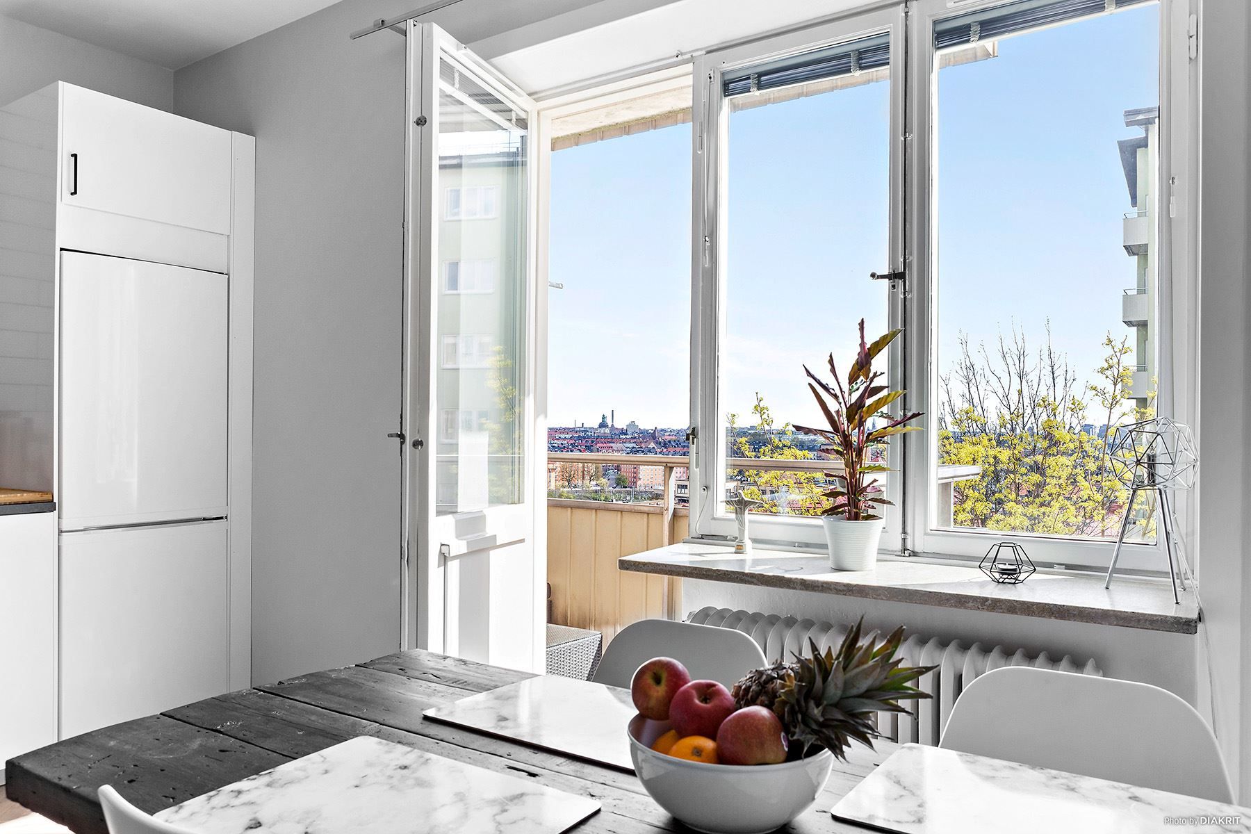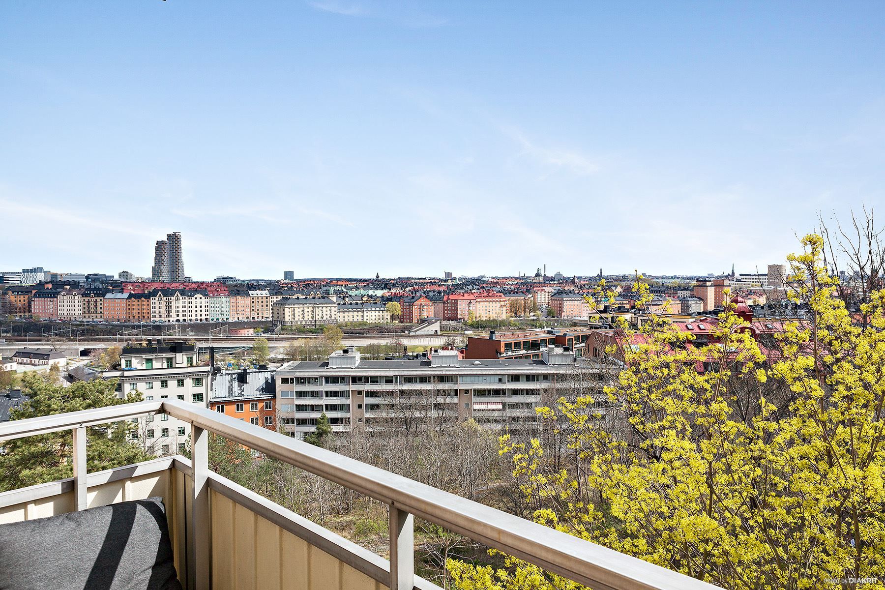 Accepterat pris! Välkommen till en smakfullt renoverad 2:a med en vidsträckt utsikt ända bort mot Stadshuset och Kaknästornet. Bostaden har en väldisponerad planlösning med kök och vardagsrum i anslutning, ett sovrum med gott om plats för en stor säng och ett fräscht badrum med tvättmaskin. Mysig balkong där man kan njuta av solen under morgon och en bit in på dagen. Lägenheten har även goda förvaringsmöjligheter.