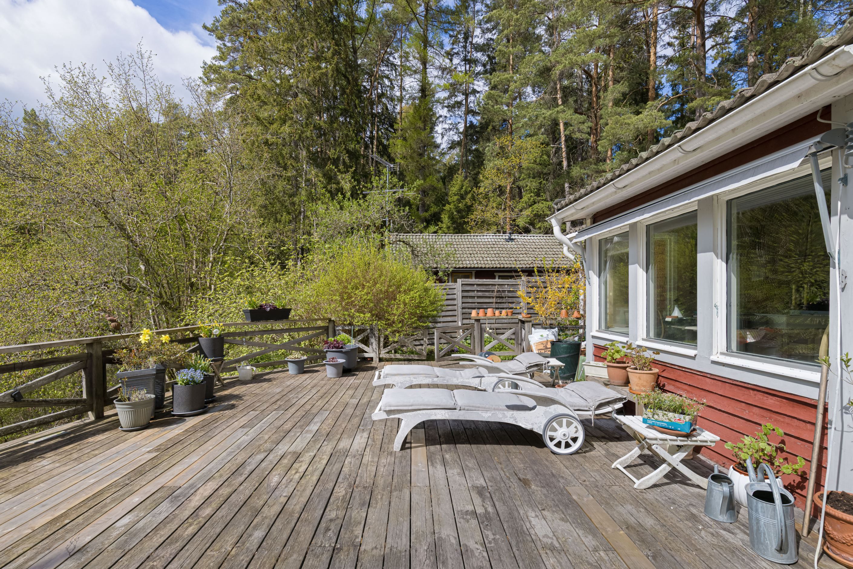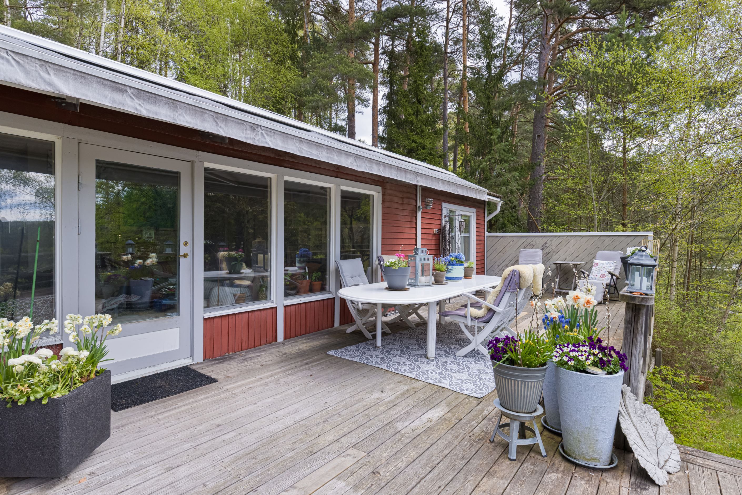 Den befintliga villan har en trivsam och luftig planlösning med kök och vardagsrum i öppen kontakt, tre sovrum, separat wc och ett badrum. En generös altan i soligt läge bjuder in till avkoppling med sjöglimt och fri utsikt över det grönskande landskapet.