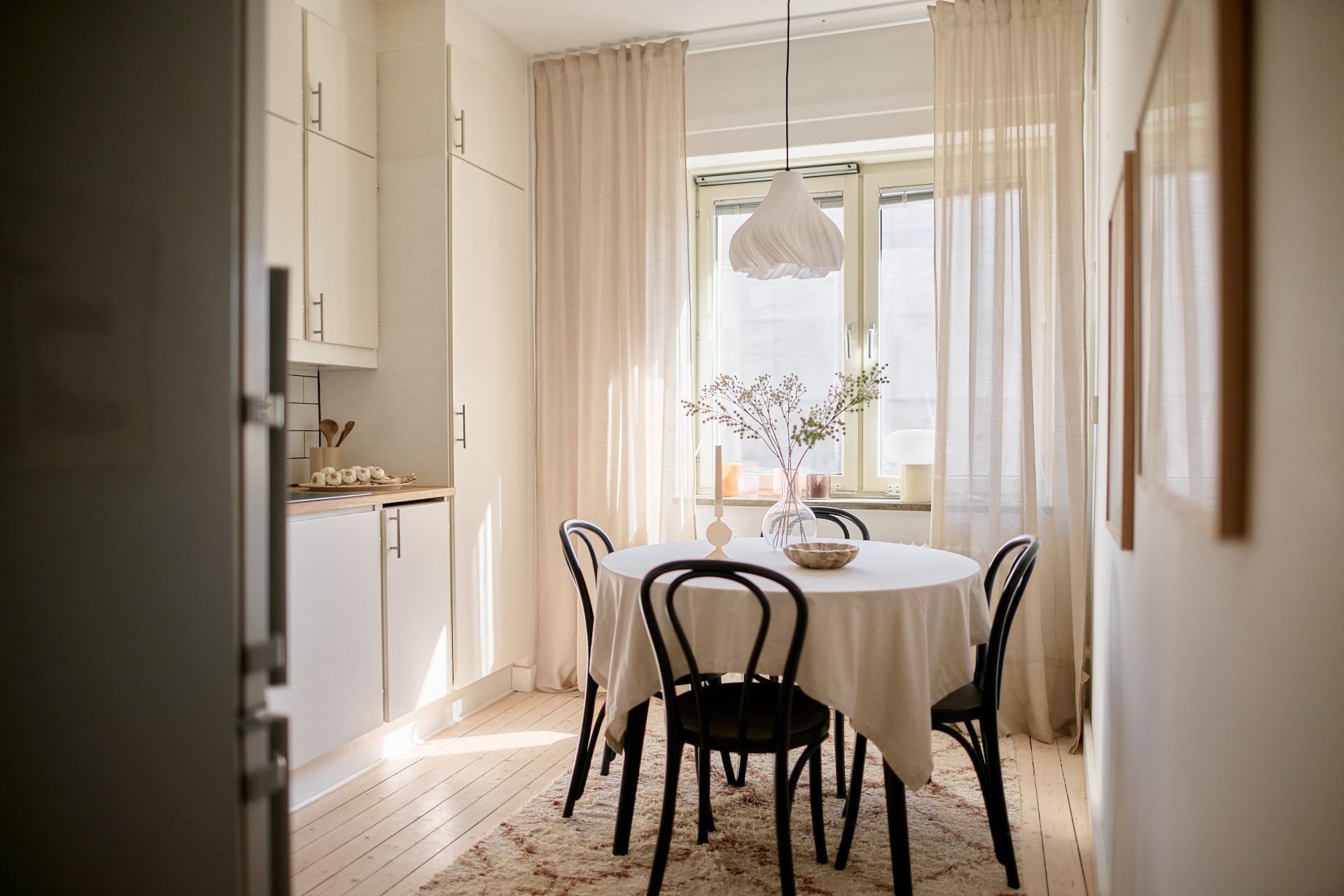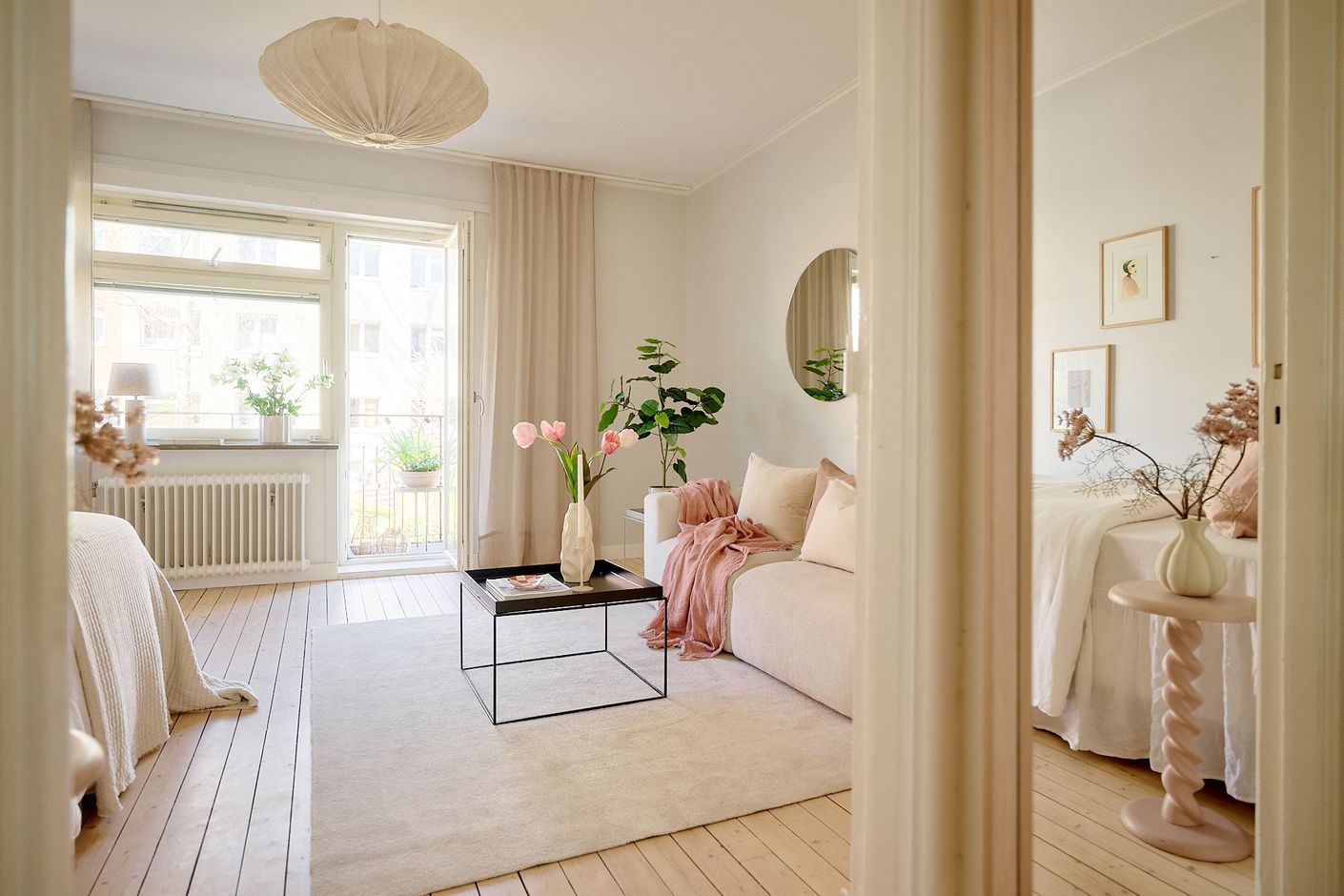 Lägenheten har ett separat kök med en naturlig matplats som gör att de 37 kvadratmeterna känns rymliga. Köket är rymligt och har gott om plats för matplats. Ljust och fräscht kök som nyligen renoverats skapar en hemtrevlig känsla. Allrum med plats för större säng och soffgrupp och härifrån har du utsikt mot föreningens härliga innergård. Det charmiga brädgolvet är framtaget och genomgående i lägenheten. Detaljer som högt i tak, stora fönster och helkaklat badrum förhöjer helhetskänslan ännu mer!