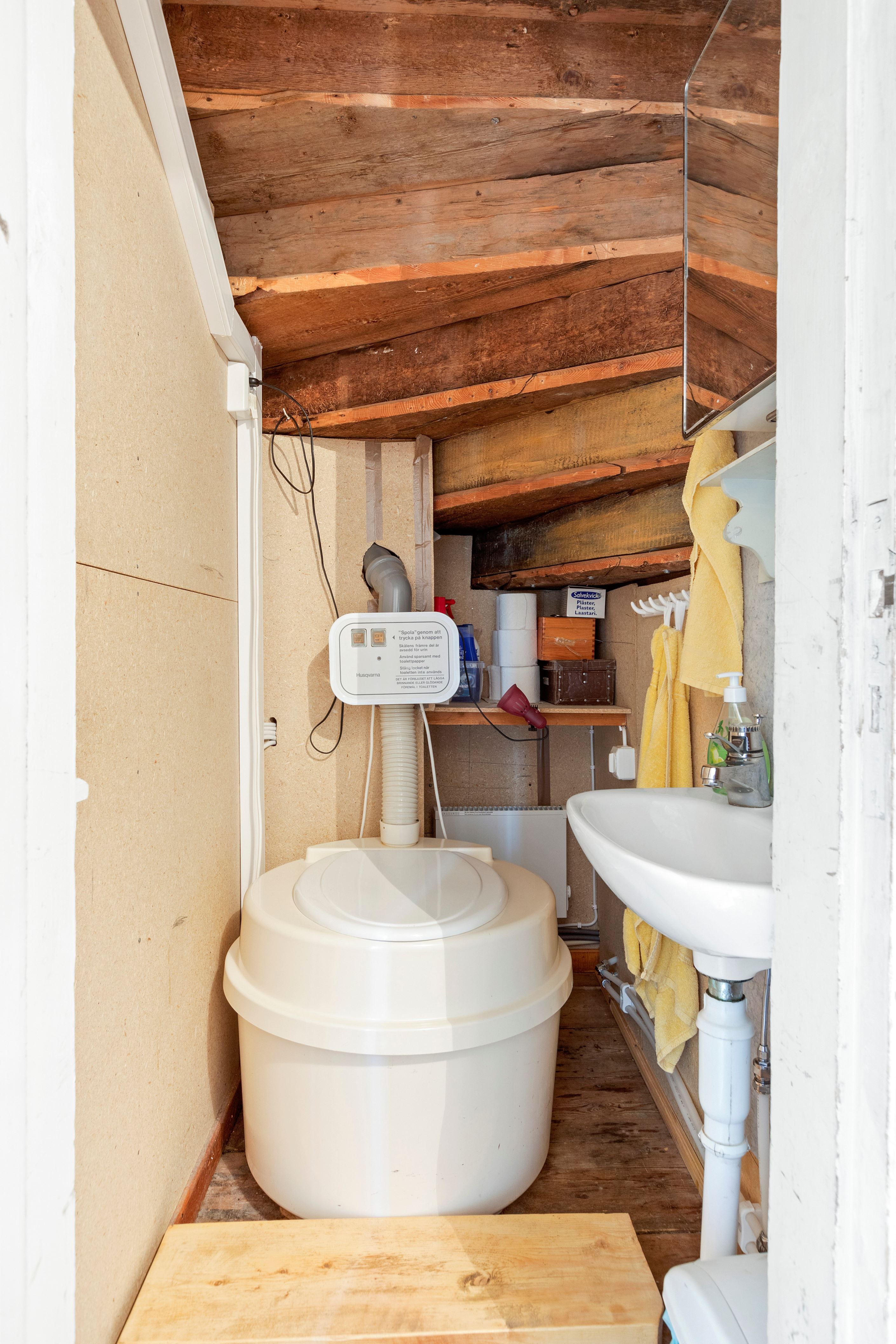Utomhus finns det gott om plats tack vare de tre tomterna. Här finns det stora möjligheter för plantering och odling om det intresset finns. Skulle ni vilja utveckla fastigheterna med ytterligare stugor eller annat så finns det absolut plats. På den övre tomten så finns det idag en byggnad som används som förråd samt snickarbod. I snickardelen finns det en vedspis och med lite arbete och kärlek kan det här bli en riktigt fin gäststuga. På denna tomt finns även ett äldre dass. Den tredje tomten är obebyggd.