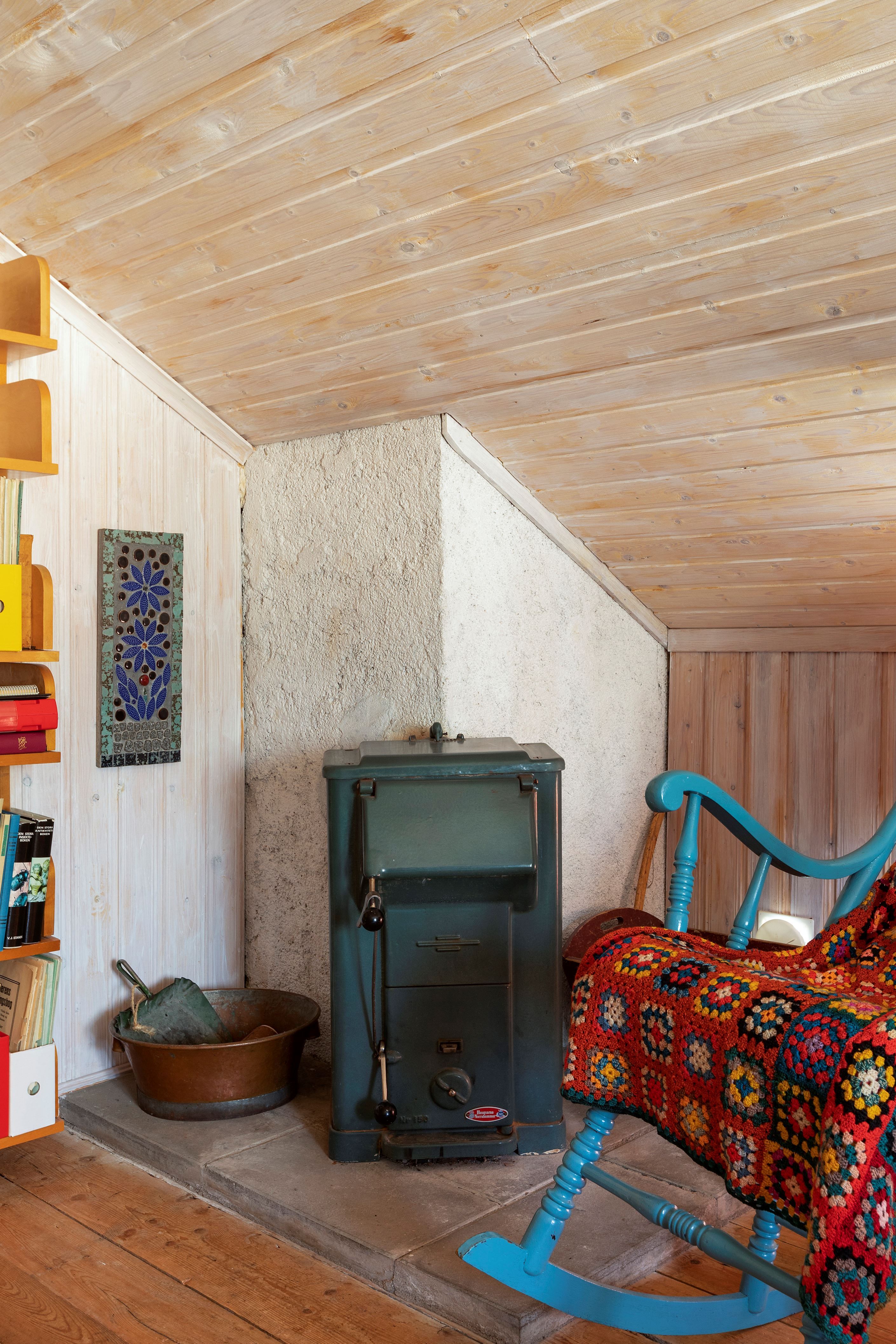 Storstugan har en gång i tiden flyttats till platsen från Gammelbodarna och har en otrolig charm med sin timrade stomme. Stugan består av hall med plats för kläder och skor, här har vi också ett utrymme för förtorkningstoaletten. Vidare har vi ett mysigt kök och ett stort vardagsrum som blir stugans hjärta. Här kan ni samlas runt den öppna spisen eller njuta av en middag vid matplatsen. På övre plan har vi en stor trapphall med möjlighet att möblera samt ett stort sovrum. Hela huset har en härlig känsla med de timrade väggarna och snedtaket på övre plan.