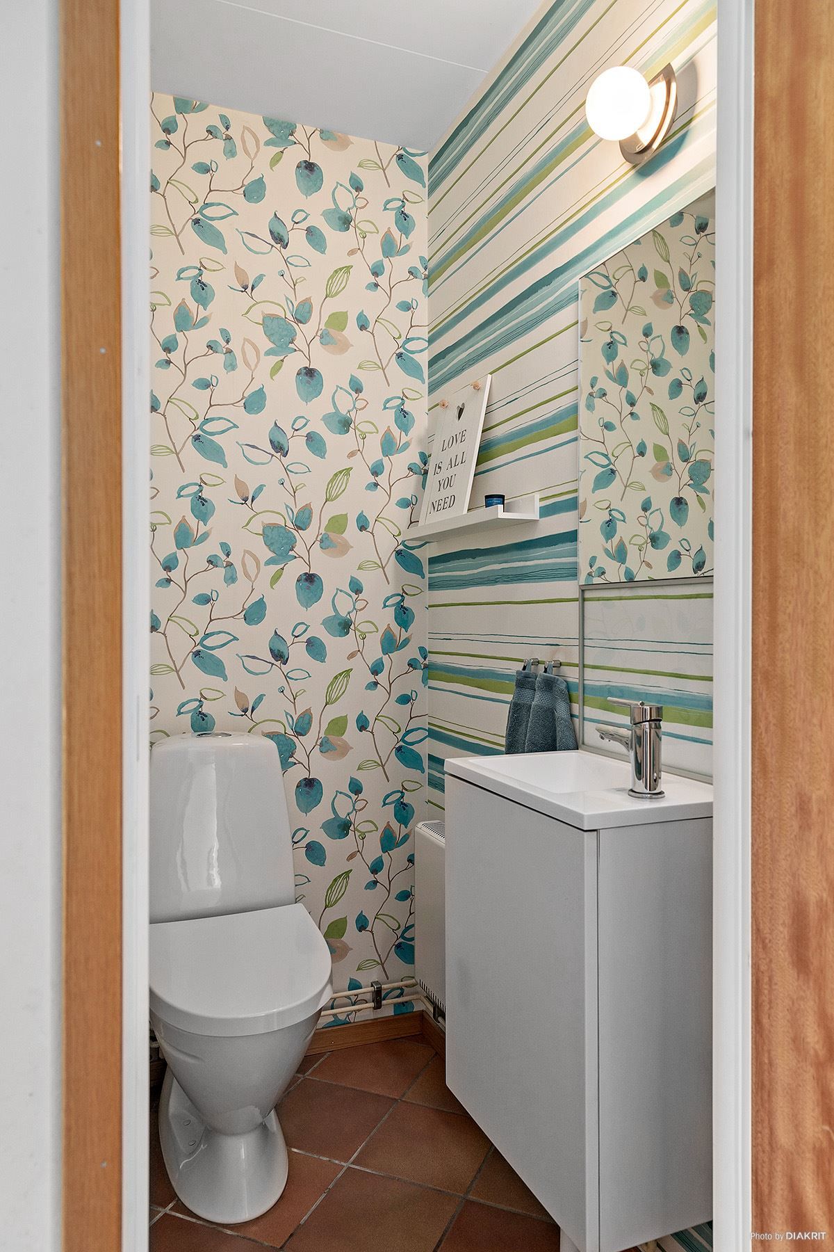 Vid hallen leder en trappa oss upp till det övre planet. Här möts vi av ett allrum som kan anpassas efter behov – kanske som ett TV-rum, lekrum eller hemmakontor? På denna våning finns två mysiga sovrum samt ett stort master bedroom med mycket förvaringsutrymme. För den som önskar extra bekvämlighet finns även en WC på övre plan.