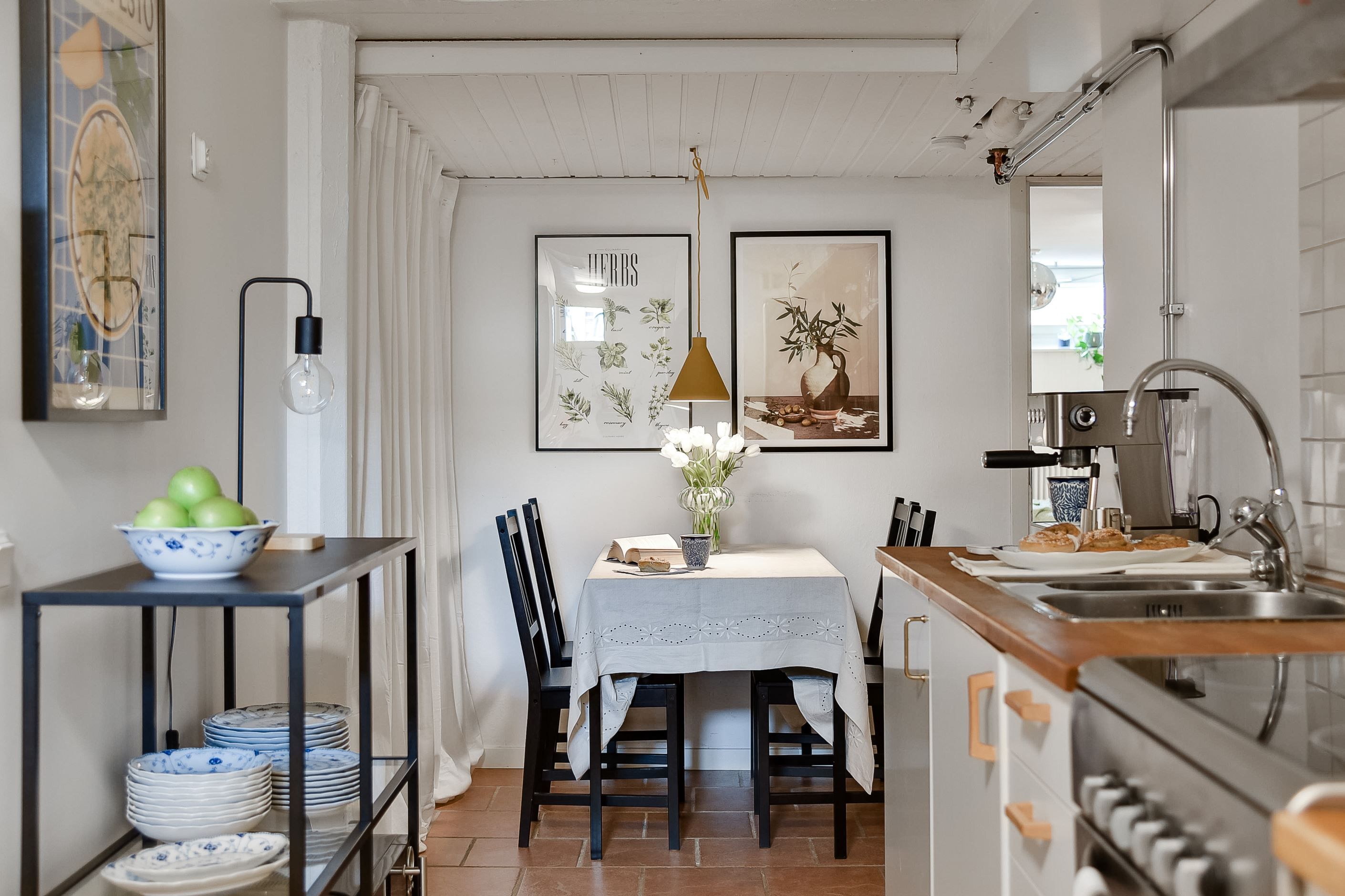 Bostaden präglas av ljusa ytskikt och en genomtänkt planlösning. Hallen erbjuder bra avhängningsmöjligheter och leder vidare in i ett rymligt kök med gott om arbetsyta och förvaring. Här finns kombinerad kyl/frys, spishäll, fläktkåpa och en naturlig matplats som ger gott om utrymme. Allrummet är generöst tilltaget och rymmer utan svårighet både fullstor säng, soffgrupp och tv-möbel – en flexibel yta som enkelt anpassas efter behov.