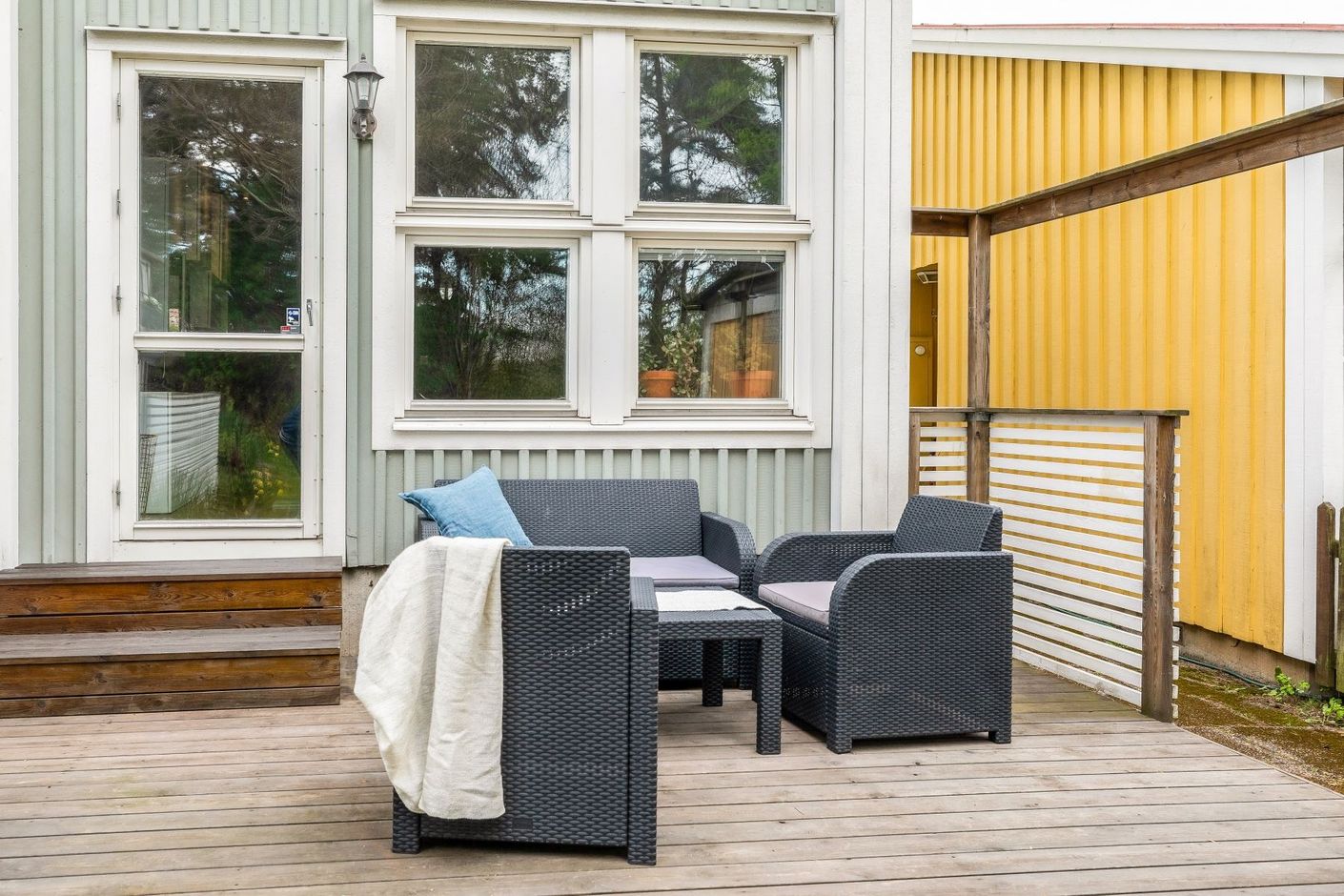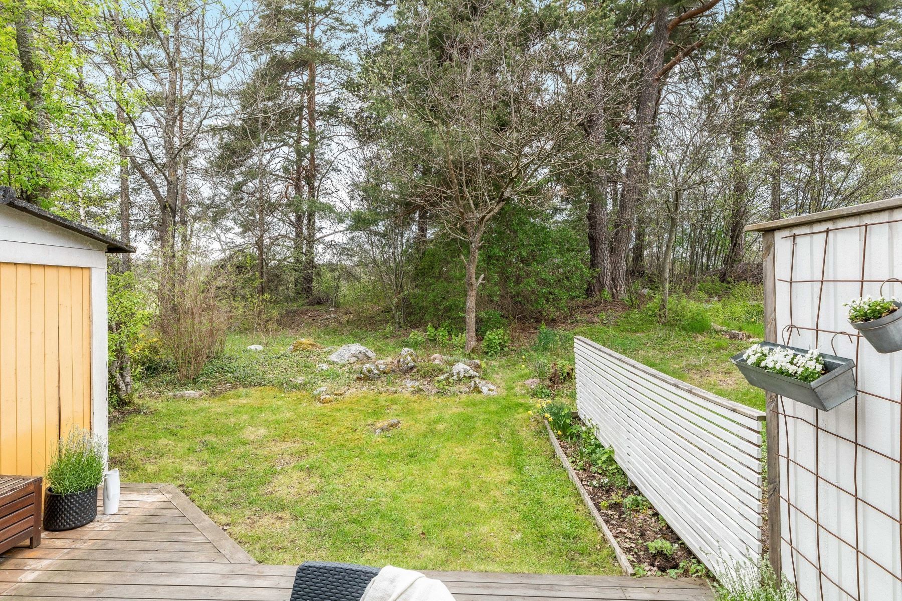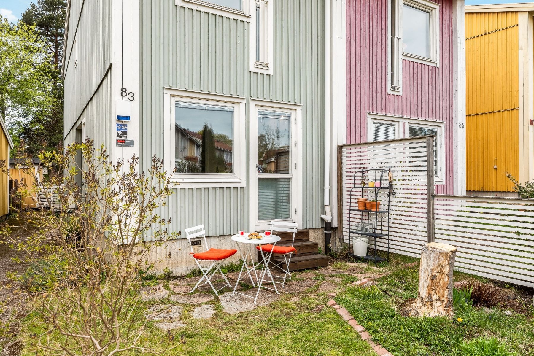 Mycket trivsamt läge på Århusgatan längst ner mot de gröna fälten och Järvafältets naturreservat. En av dom mysigaste tomterna med träaltan, gräsmatta och ett lummigt läge. Invändigt har huset totalrenoverats 2007 med nya ytskikt i samtliga rum samt nytt badrum och kök. Badrummet är utrustat med spotlights, golvvärme, ytskikt i stilrent svart/vitt samt en egen tvättstuga med maskiner från kvalitétsmärket Siemens. Köket totalrenoverades 2007 med nya stommar och vitvaror från Electrolux. Svart massiv stenskiva samt en ljus matplats för 4-8 personer. 2 bra sovrum på övre plan som rymmer dubbelsängar, 2 enkelsängar eller våningssängar. Gott om förvaring i klädkammare samt platsbyggda garderober.