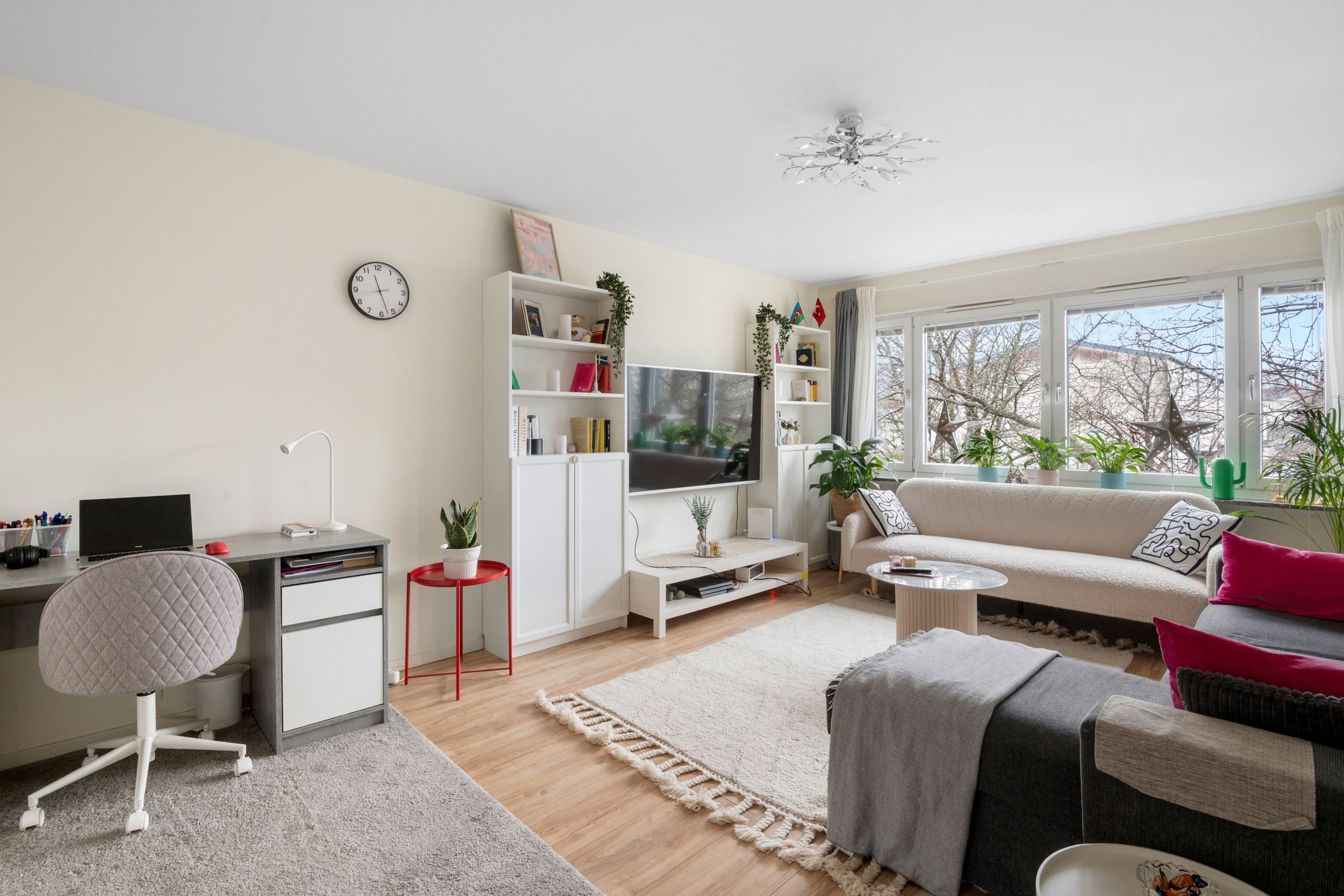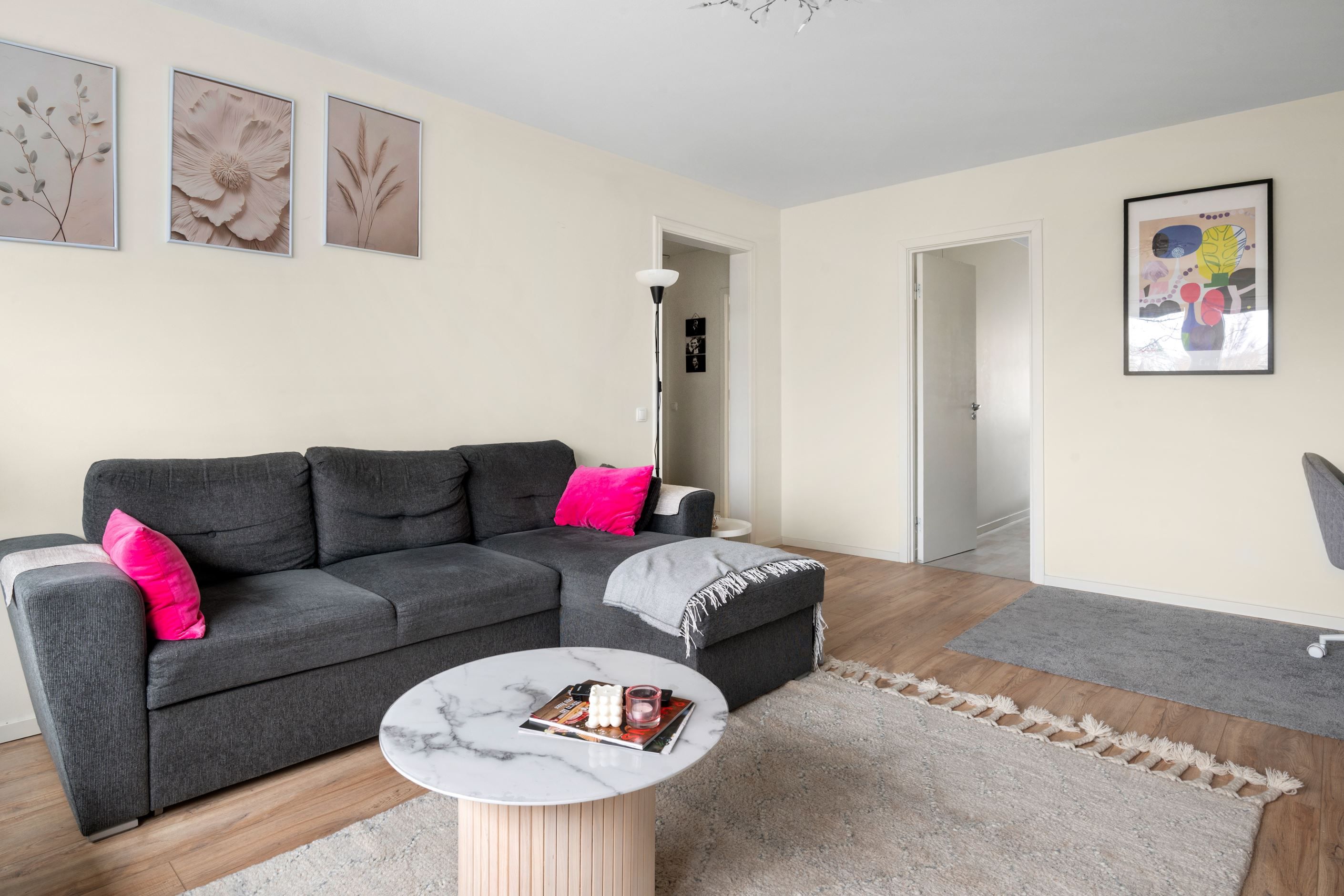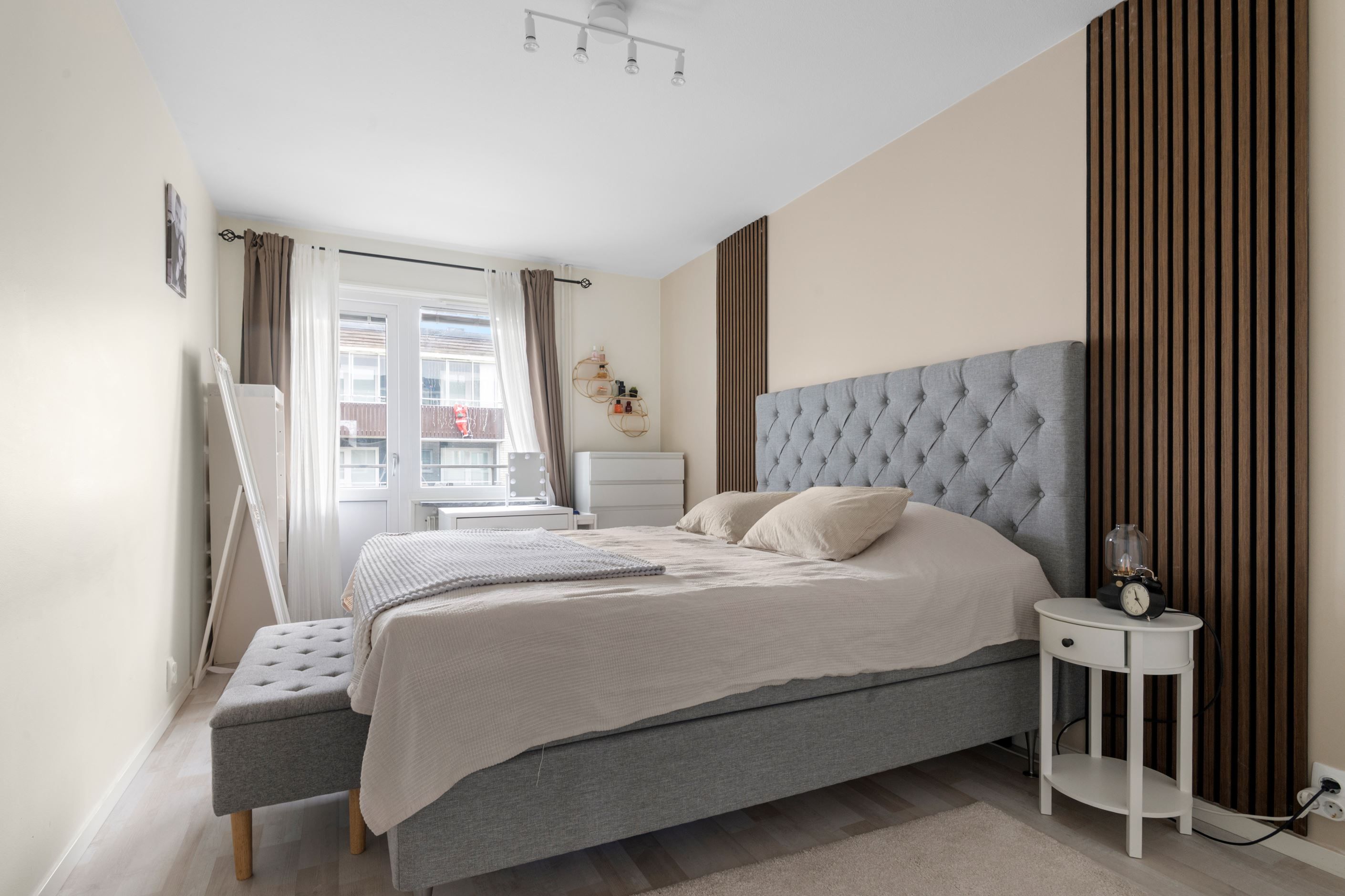 Vidare erbjuds två väl tilltagna sovrum med plats för dubbelsäng, förvaring och skrivbord – idealiska som både master bedroom och barnrum, gästrum eller hemmakontor. Det stora och luftiga vardagsrummet bjuder in till umgänge och avkoppling med plats för både soffgrupp och matsalsmöbel. De stora fönsterpartierna ger rikligt med ljusinsläpp och skapar en härlig rymd.