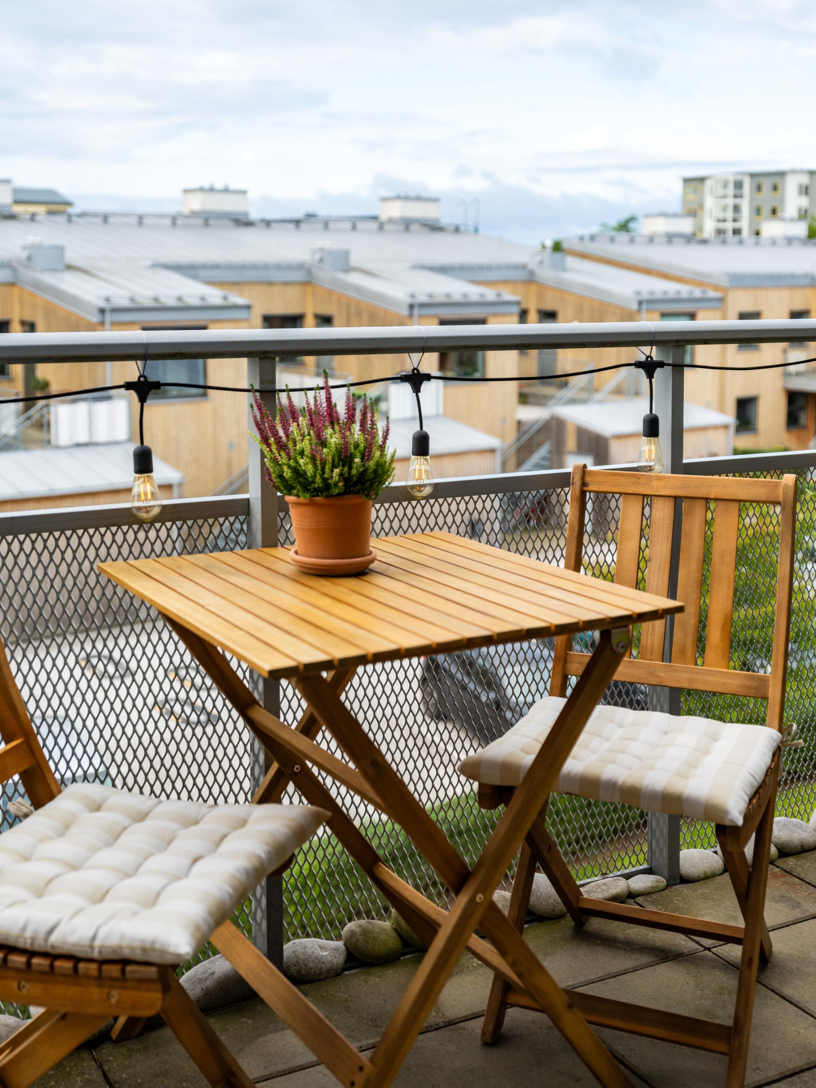 Och balkongen då! Den är så fin att den egentligen förtjänar egen rubrik. Stor, härlig, med söderläge och verkligen utöver det vanliga, perfekt för sena sommarkvällar, frukostar i solen eller att bara hänga och njuta. Pluspoäng för att du dessutom kan möblera vid entréns uteplats på loftgången.