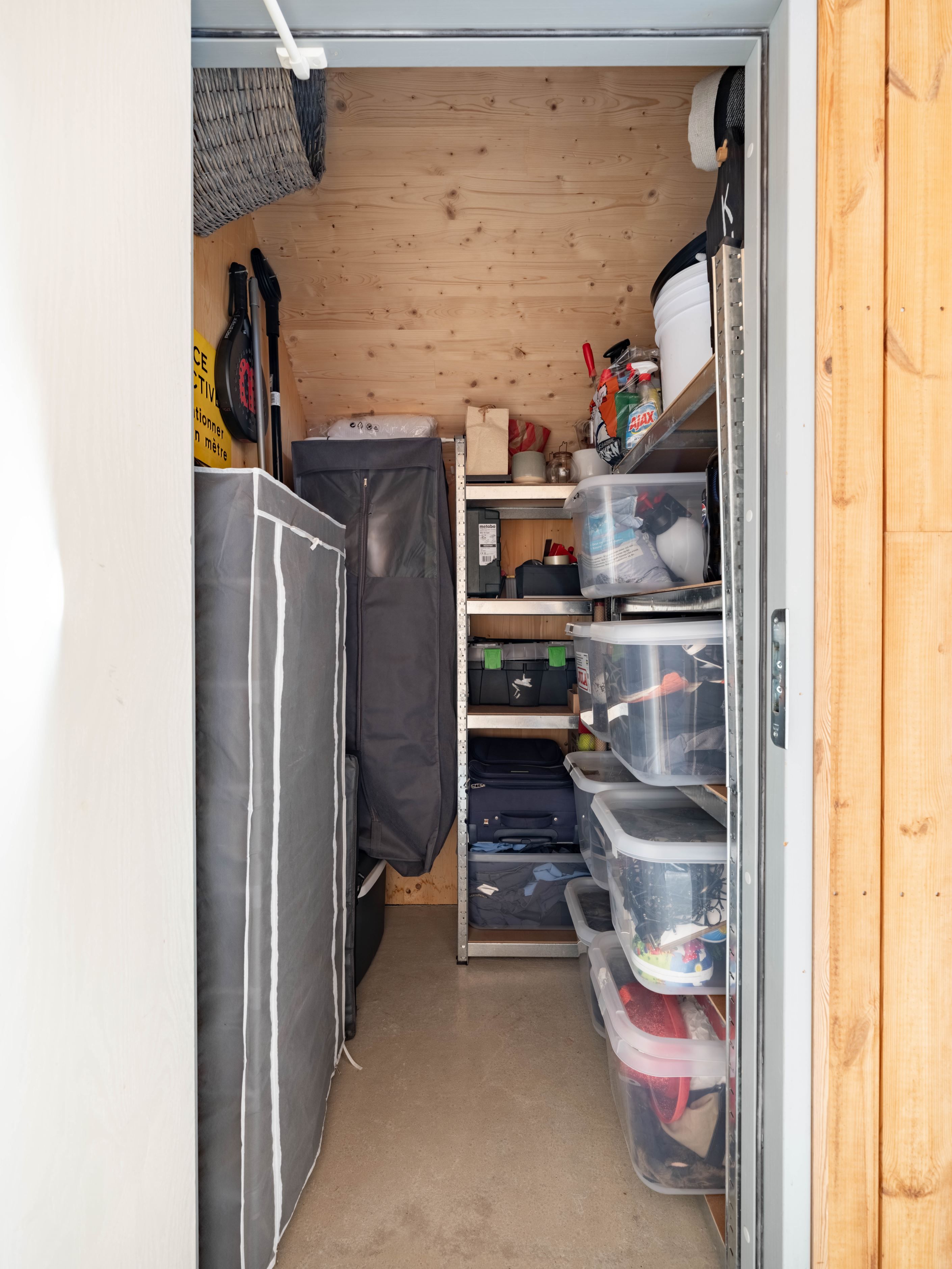 Förvaringen är ovanligt bra, det finns till och med ett förråd precis utanför dörren. Smidigt, praktiskt och ordning på grejerna utan krångel.