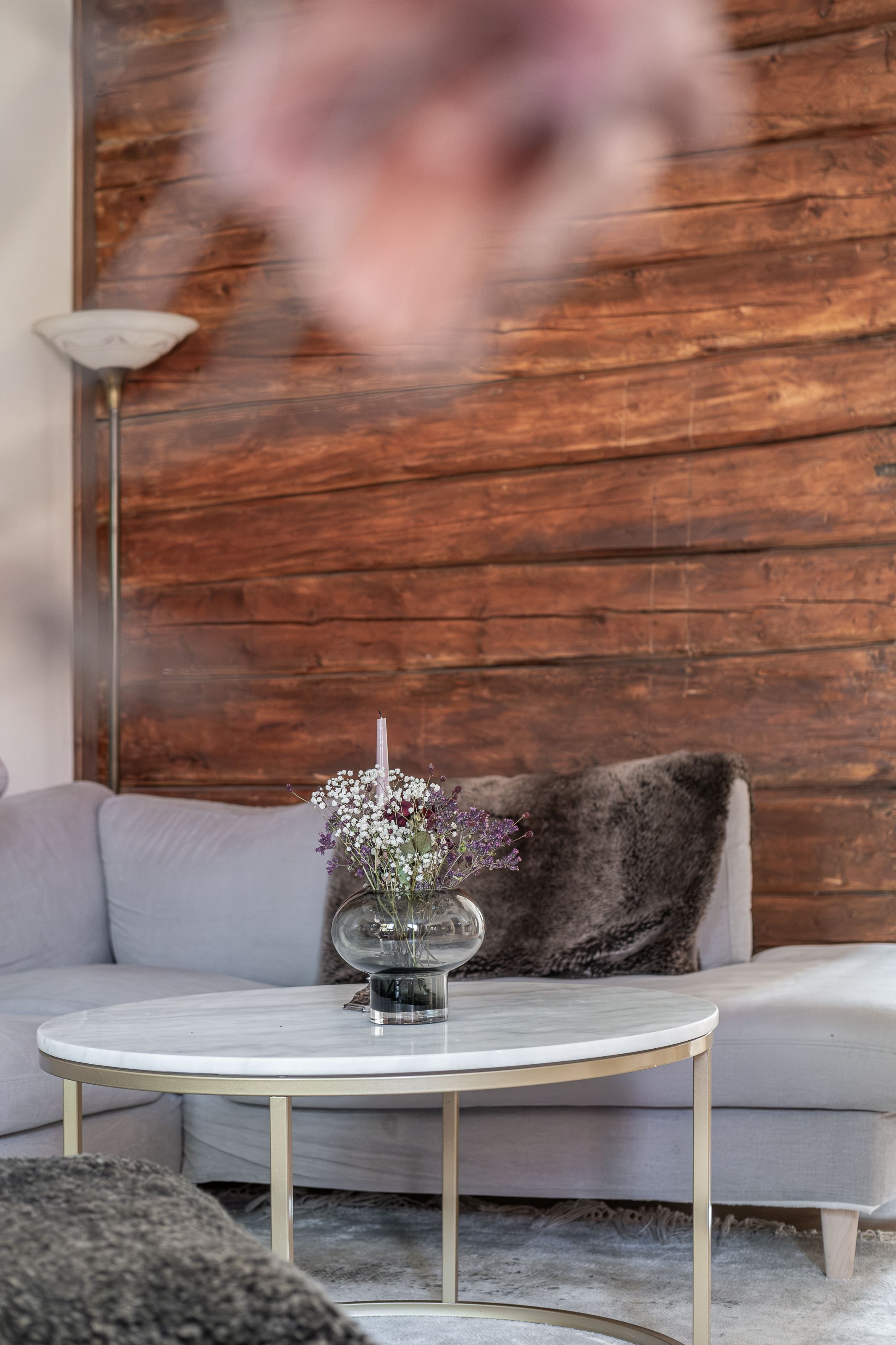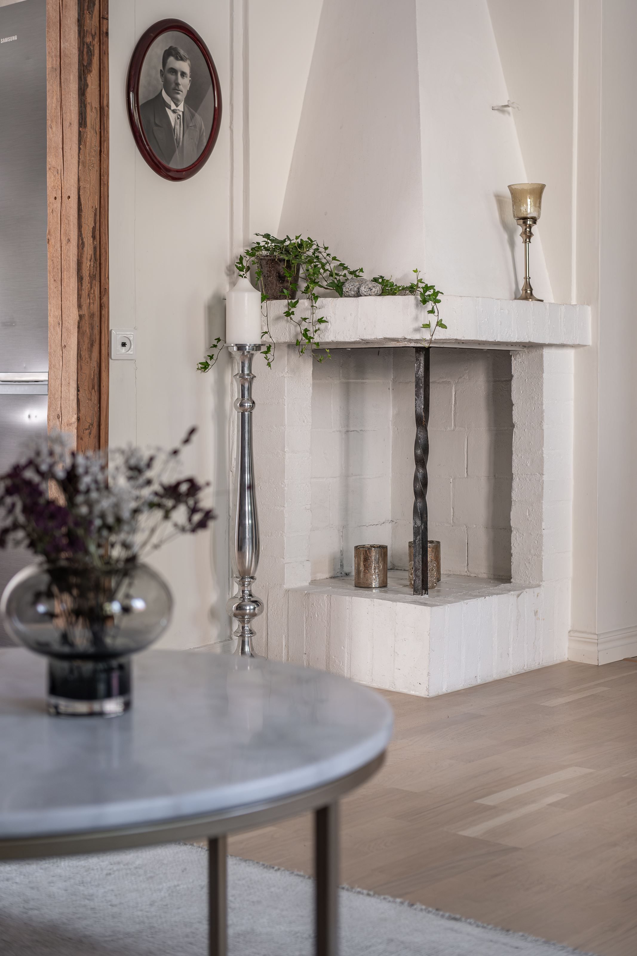 Vardagsrummet i direkt anslutning till köket, är rymligt och ljust, med stora fönster som vetter mot en av stadens vackraste gator och bjuder på en glimt av Storsjön. Här finns även en dekorativ öppen spis, som sätter stämningen med levande ljus och skapar en ombonad känsla.