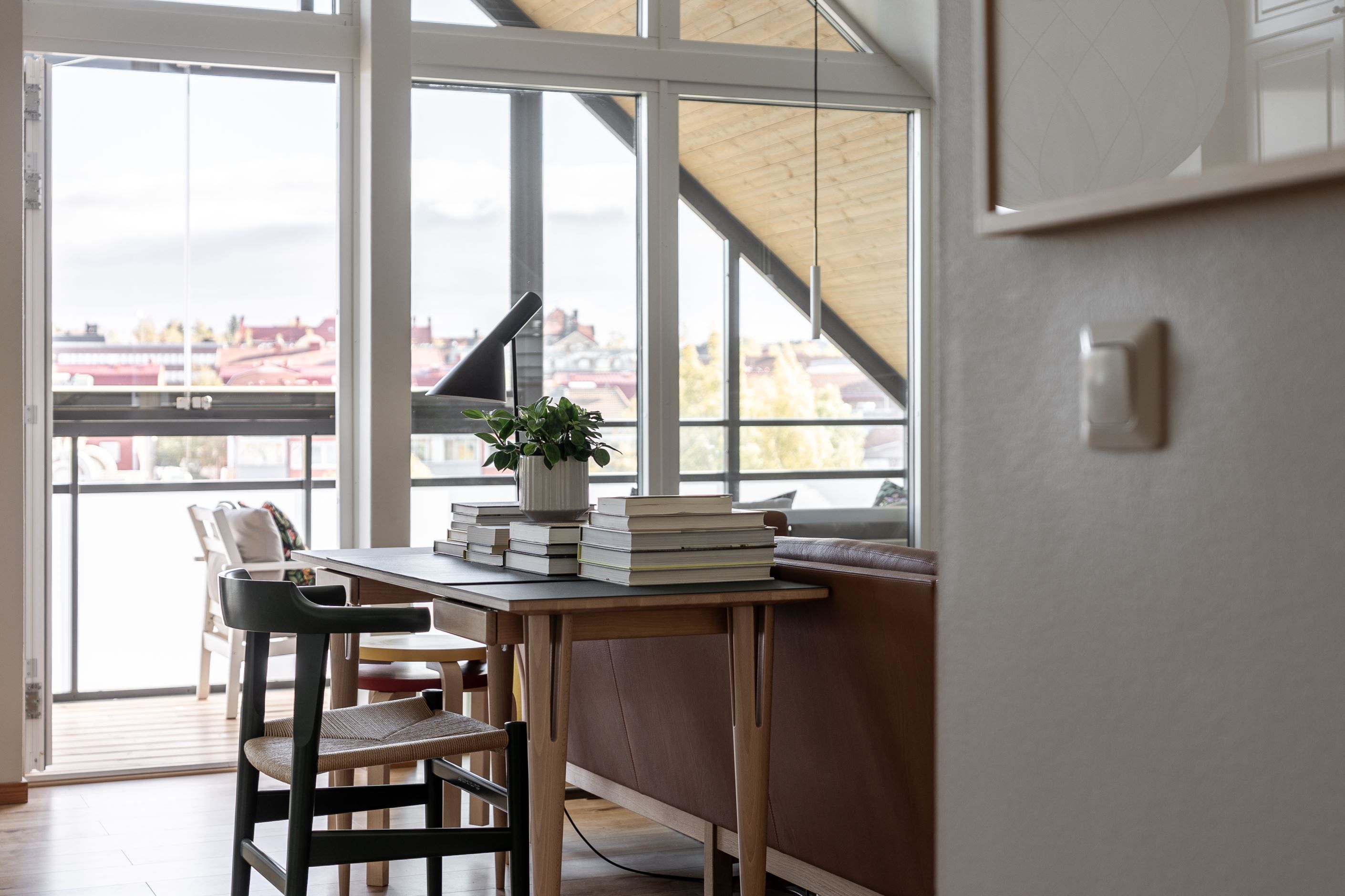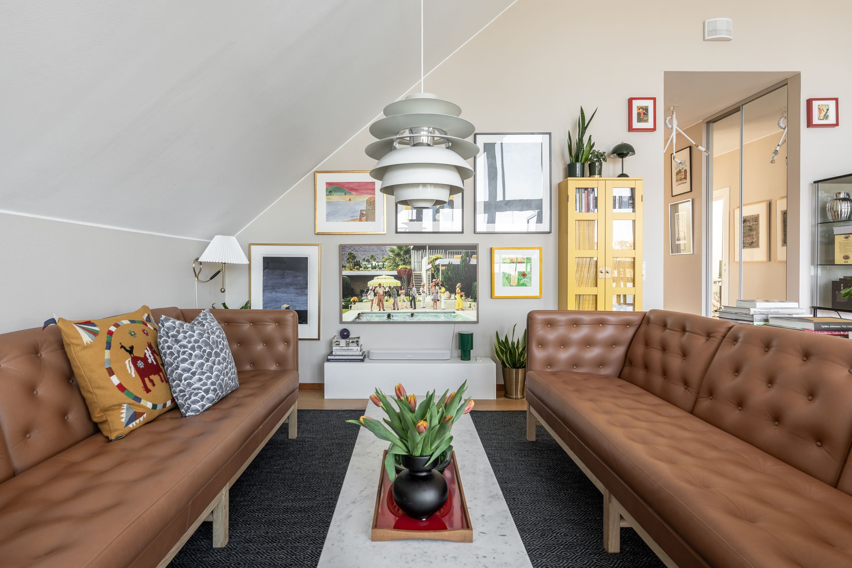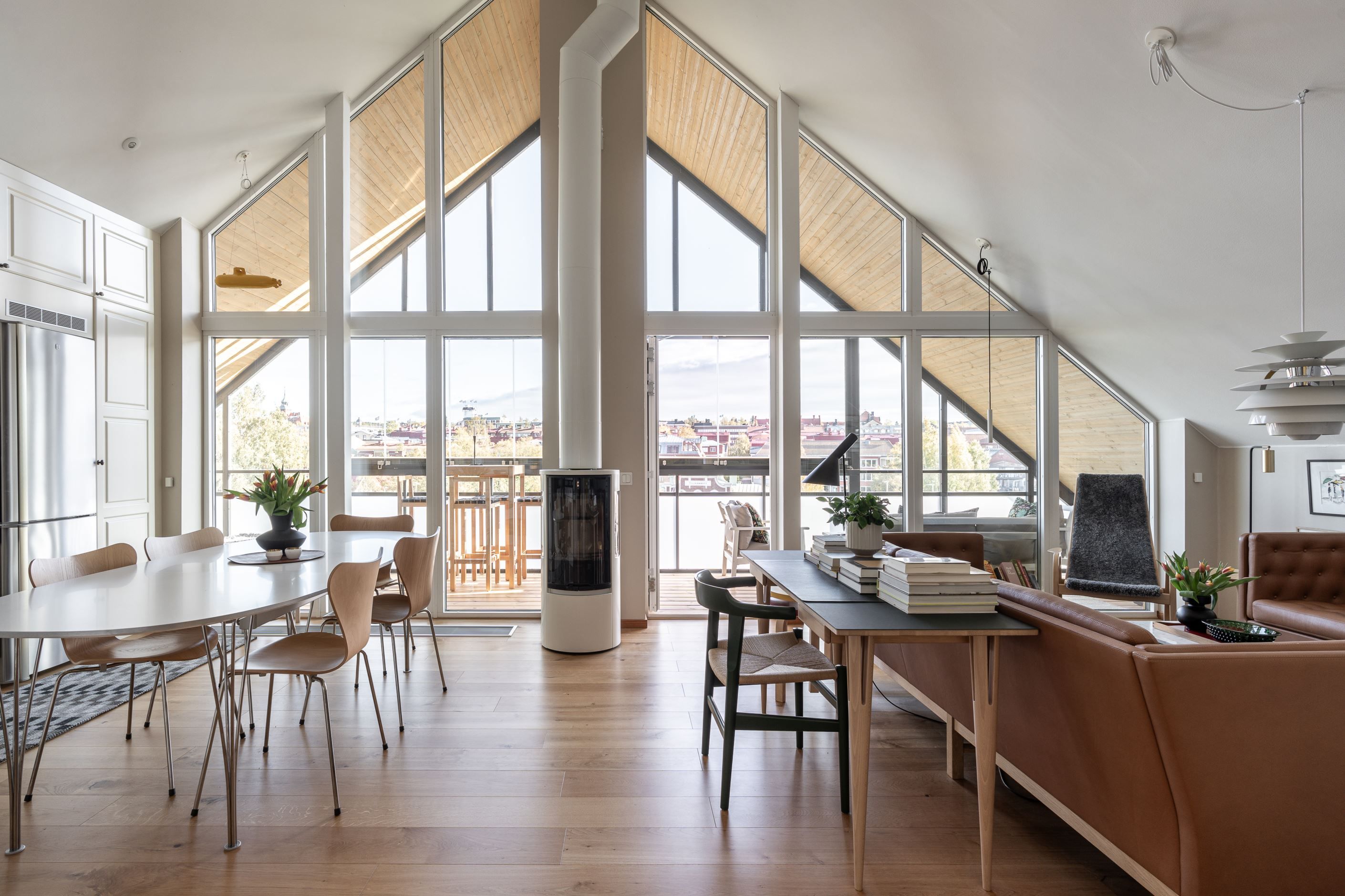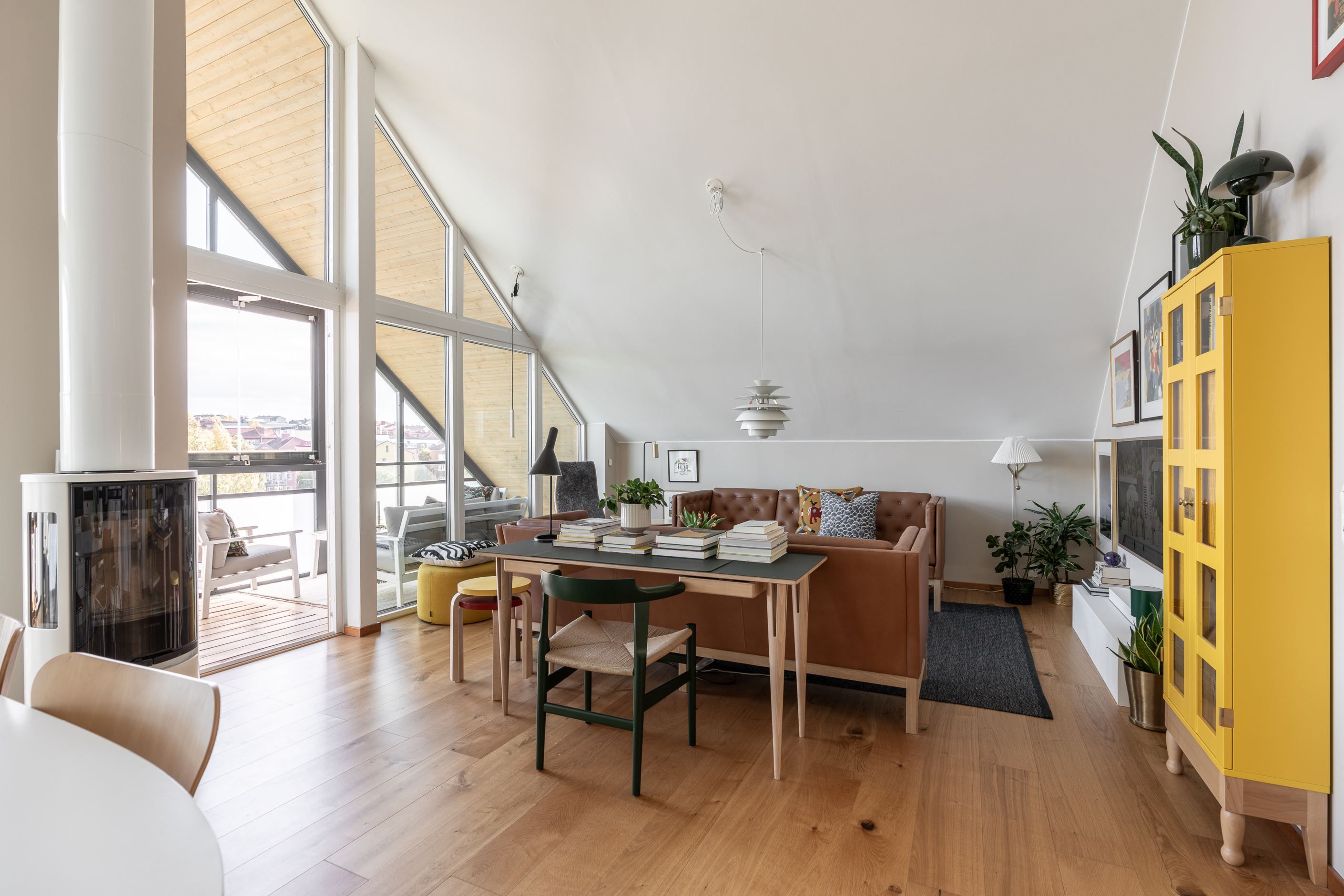 Här bor ni högst upp i huset i en vindsvåning som bjuder på unika kvaliteter och en karaktär som verkligen sticker ut. Detta är ett boende som andas rymd, ljus och exklusivitet och är ett hem för er som vill ha något utöver det vanliga.