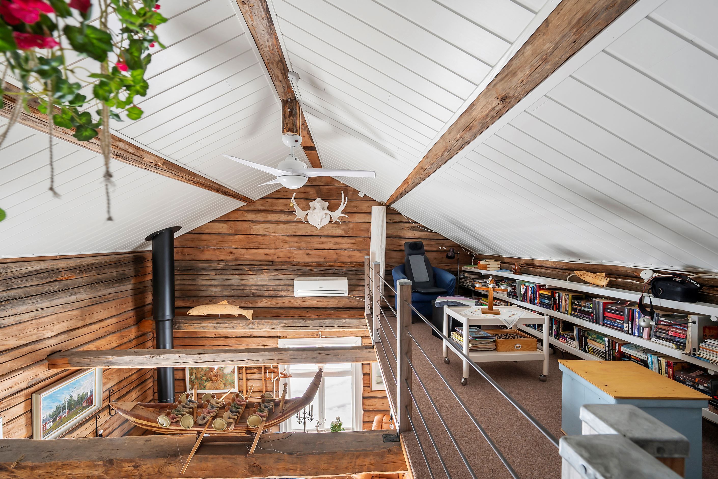 Bostadshuset välkomnar dig med en härlig fastru som direkt ger dig känslan av ett varmt och gästvänligt hem där naturen och lugnat får ta plats. Till höger ligger sedan ett trivsamt kök som bjuder in till matlagning och gemenskap. Här finns 2 sovrum, varav det första du når via köket medan det andra återfinns på loftvåningen. Detta ger flexibilitet för familj, tillresta gäster eller om behov finns av hemmakontor.