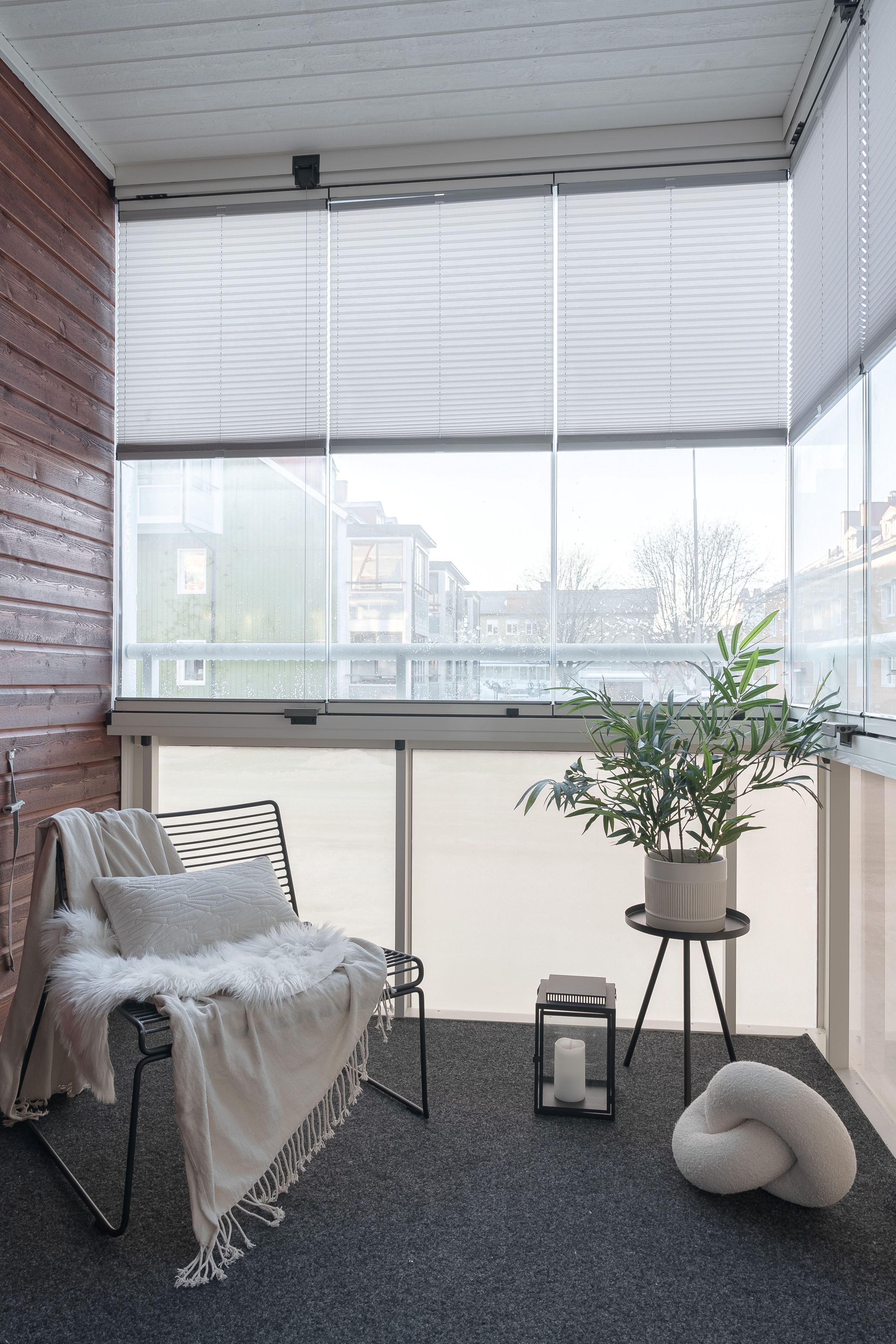 Här når du också din egna inglasade balkong i söderläge vilket bidrar till att du har ännu ett utrymme som du kan använda dig av från tidig höst till sen vår. I och med den väl tilltagna ytan på balkongen så kan du möblera med ett lite större matbord för middagar ute under årets varmare månader eller med en härlig loungegrupp där du kan umgås med vänner och bekanta.