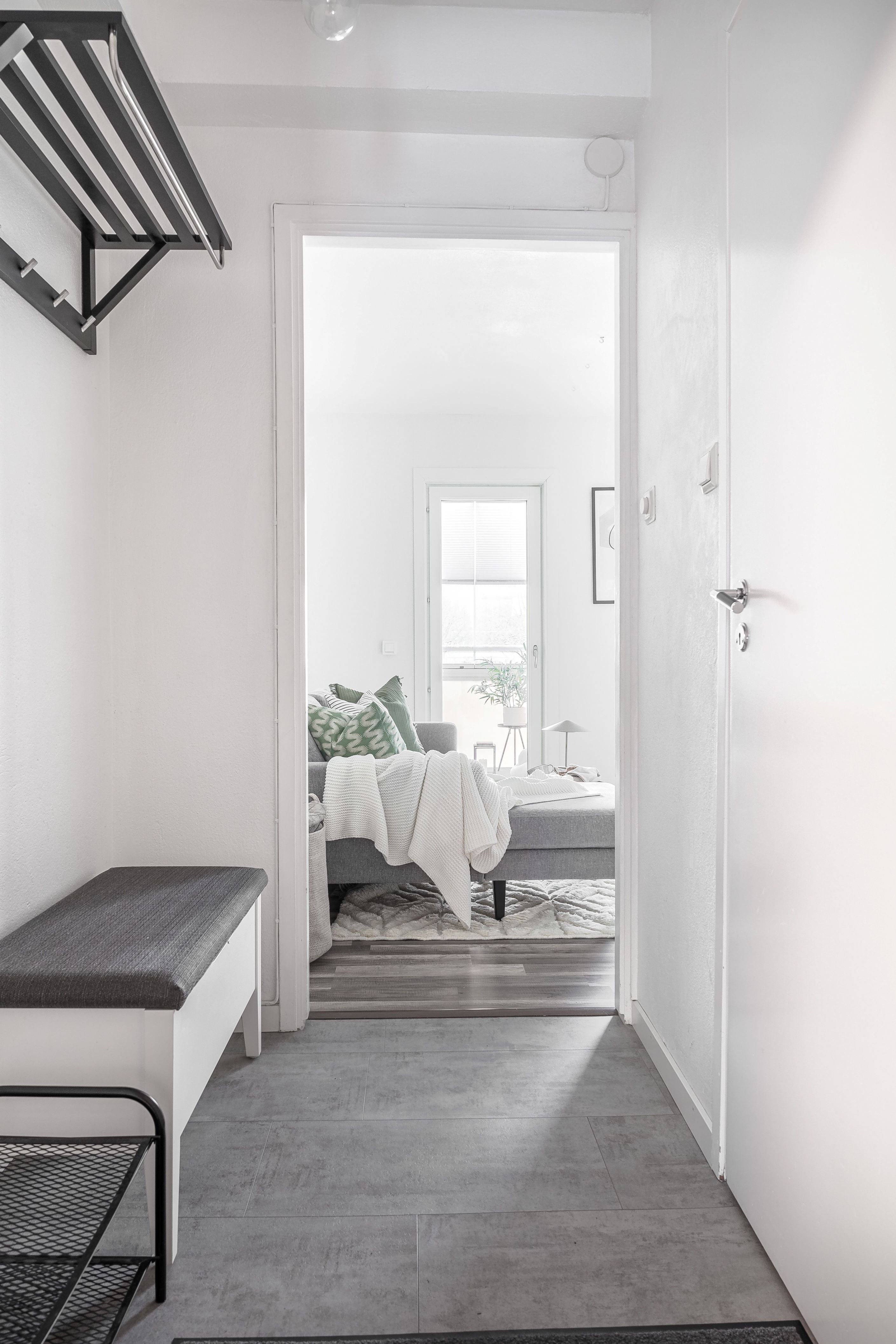 Välkommen att kliva in och mötas av en hall som erbjuder dig gott om plats för avhängning av ytterkläder. Direkt till höger om entrén finner du dessutom ett större förråd som kan nyttjas antingen som en lyxig walk-in closet eller som uppskattad förvaring av annat som du vill ha nära till hands.