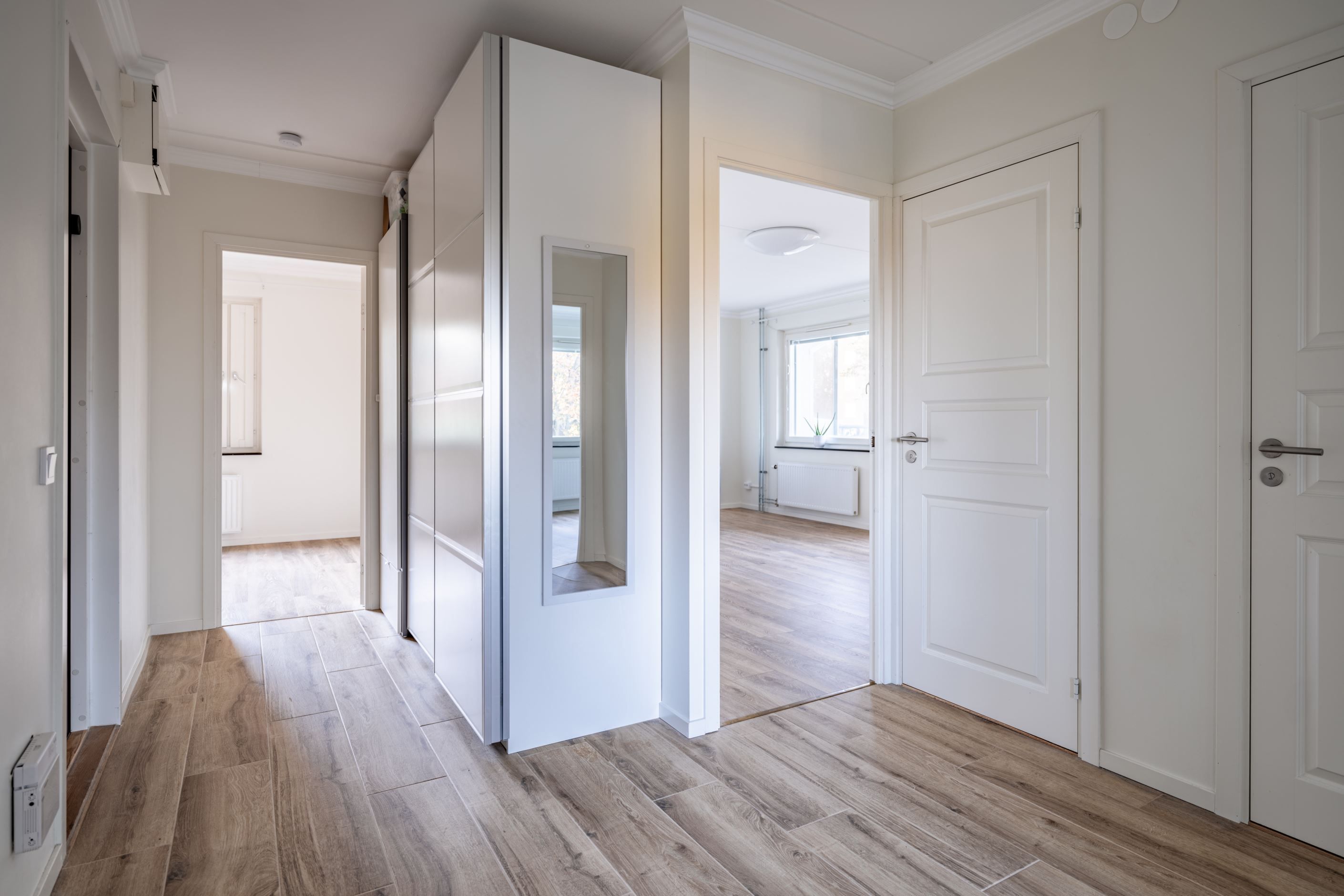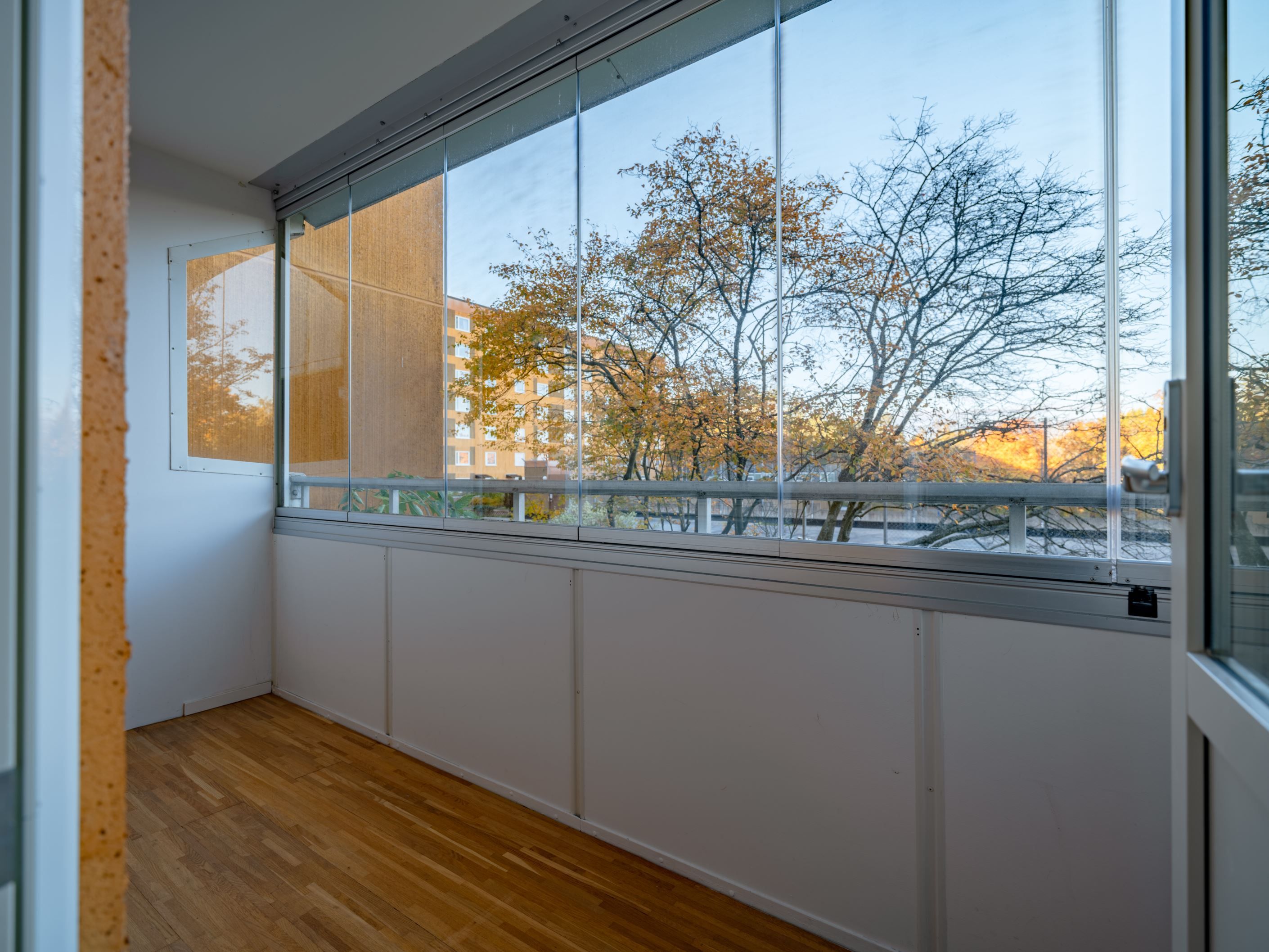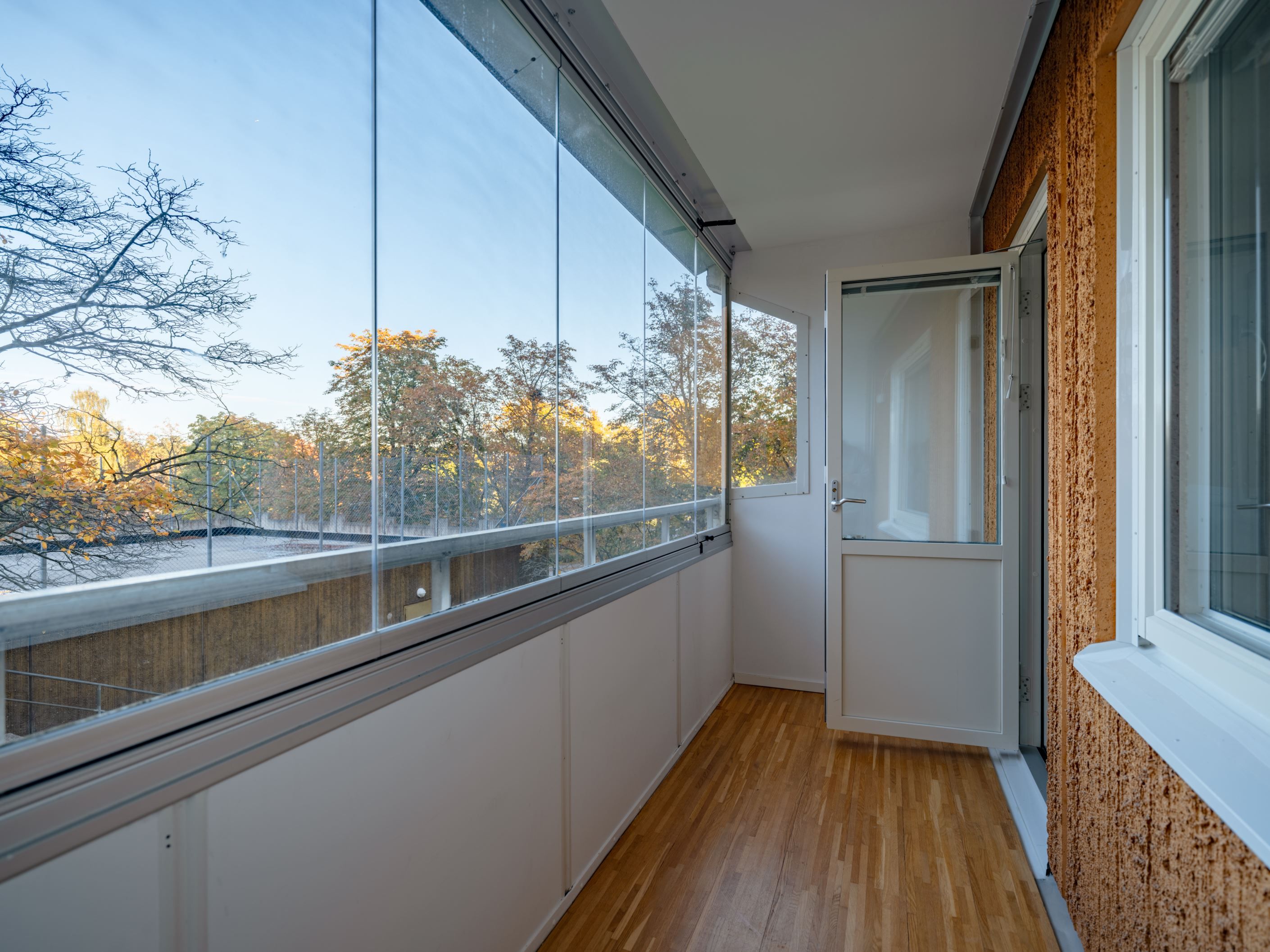 Det moderna köket har gott om arbetsyta, fri utsikt och plats för matbord intill fönster. I samband med stambytet har både badrum och gäst-wc uppdaterats med tidlösa materialval. Två bra sovrum ger plats för familj, gäster eller hemmakontor. Från vardagsrummet nås den stora inglasade balkongen i privat läge – en extra yta som kan användas stora delar av året.