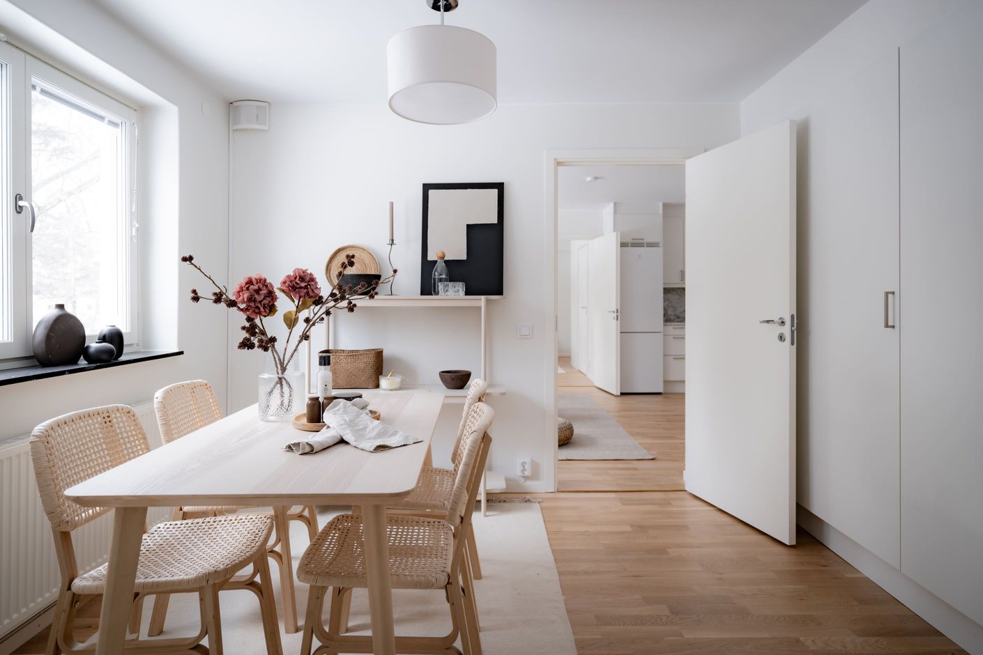 Den genomtänkta planlösningen gör bostaden både yteffektiv och flexibel. Från föreningens gröna trädgård kliver du direkt in genom din egen entré – en detalj som ger bostaden en tydlig radhuskänsla och skapar en naturlig koppling till utemiljön. Här möts du av en ljus och luftig planlösning med öppet samband mellan kök och vardagsrum, och med egen dörr som leder ut till föreningens trädgård med enkel tillgång till gräsmatta, utemöbler och grillplats.