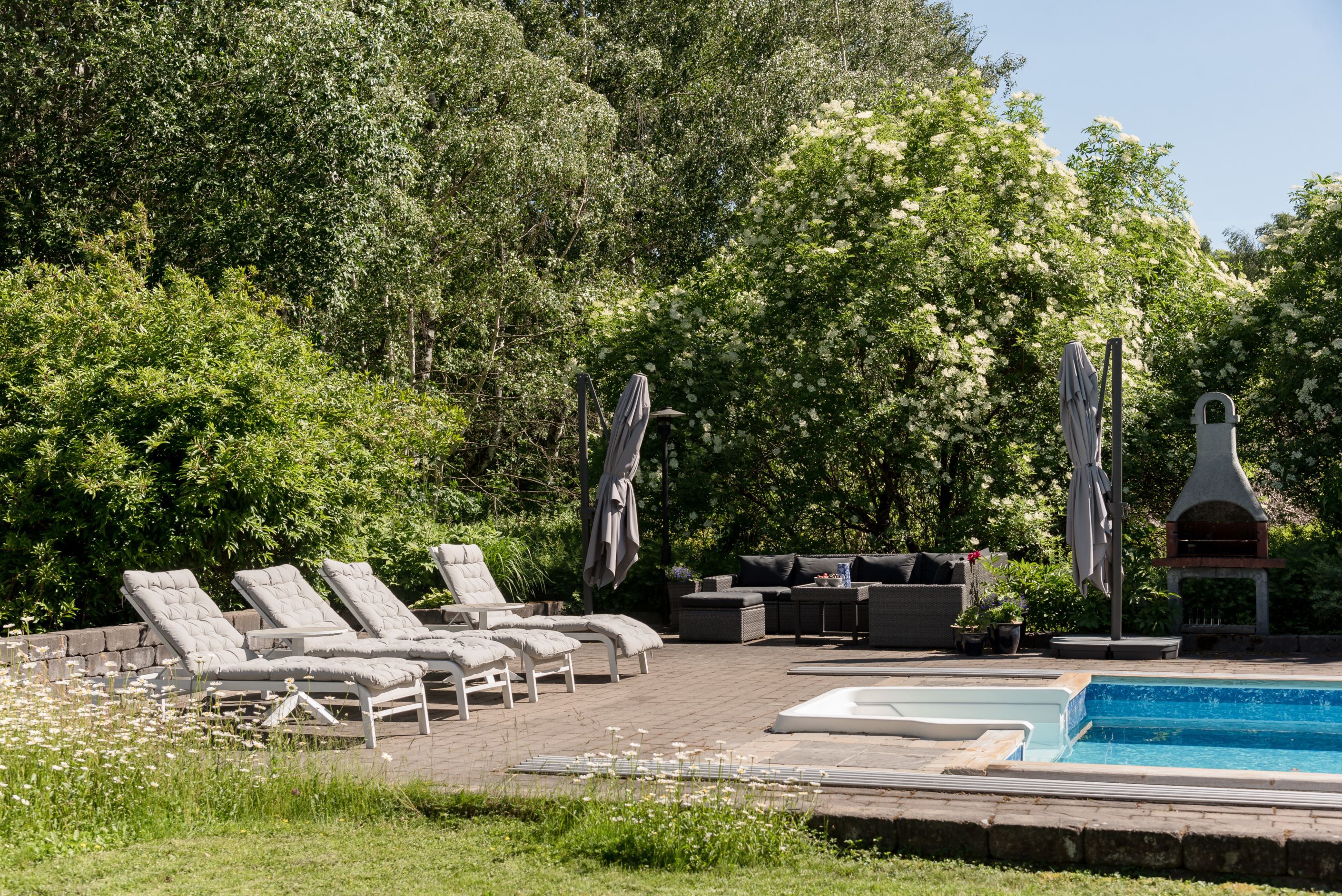 Här finner ni en mycket välskött familjevilla med en enastående trädgård i ett insynsskyddat läge, som erbjuder det lilla extra med pool, rymlig altan, stenlagda gångar, bastuhus med vedeldad bastu, samt spabad och pergola. Dessutom finns stora plana gräsytor för sommarens lekar, samt planteringar för den trädgårdsintresserade.