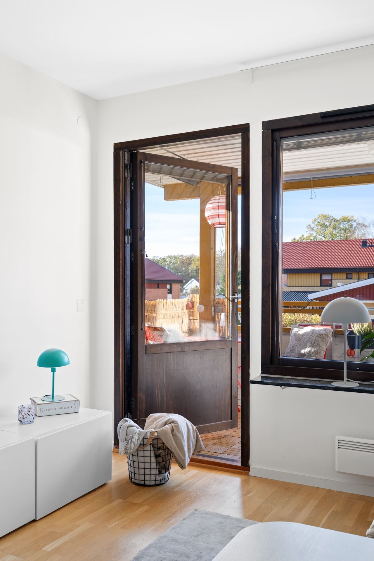 Vardagsrummet är generöst tilltaget och ger gott om plats för både soffgrupp och matplats. Härifrån når du direkt ut till den rymliga balkongen i västläge där du kan njuta av många soliga eftermiddagar och kvällar.