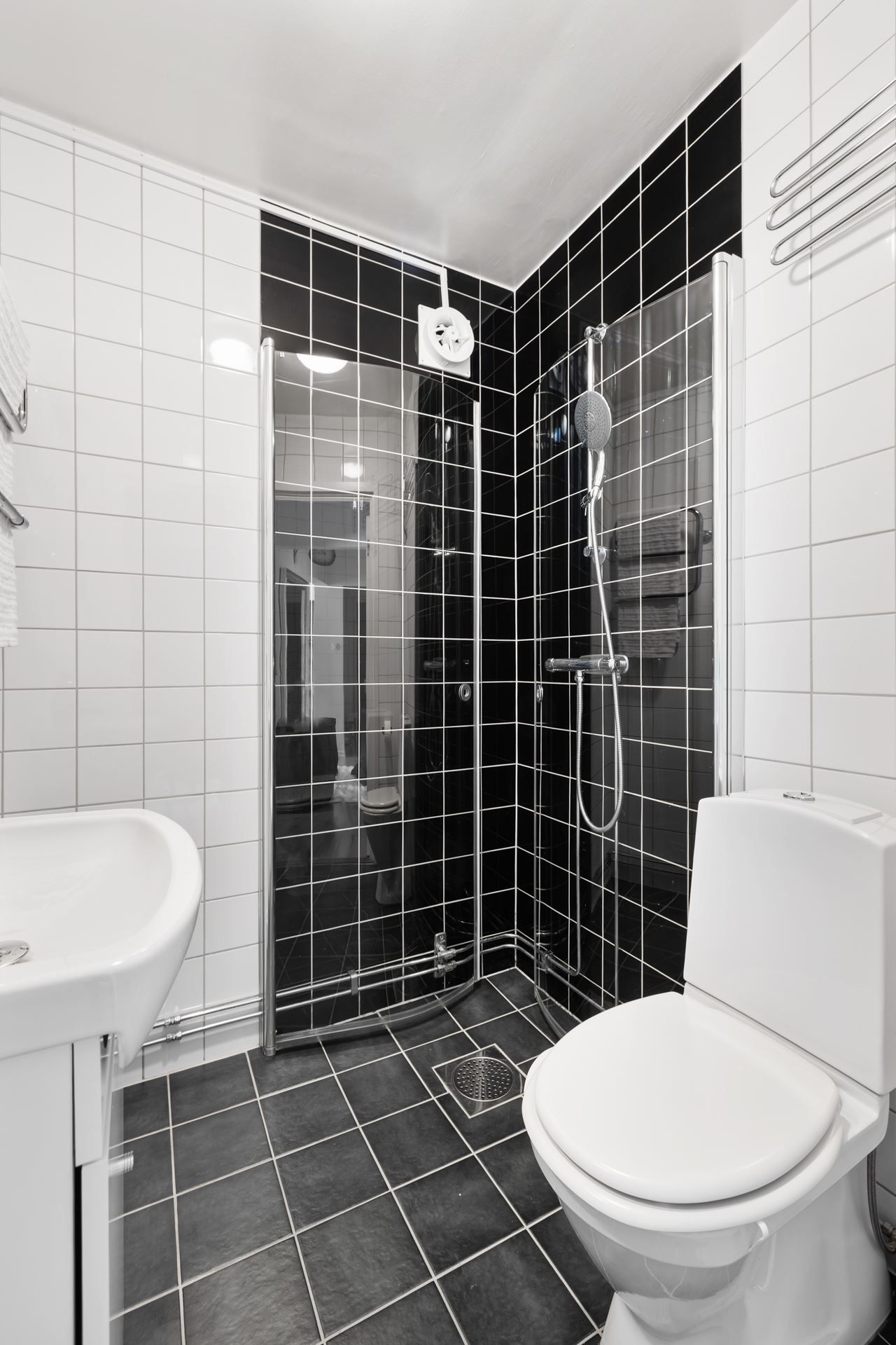 Vardagsrummet är generöst tilltaget och har gott om plats för både soffgrupp och matbord. Köket ligger mer avskilt och ger en lugn matlagningsmiljö. Sovrummet är rymligt och har, precis som resten av lägenheten, fri utsikt mot lummiga grönområden. Badrummet är helkaklat och erbjuder möjlighet att installera tvättmaskin för extra bekvämlighet. Förvaringsmöjligheterna är goda med flera garderober samt ett tillhörande förråd om cirka 10 kvm.