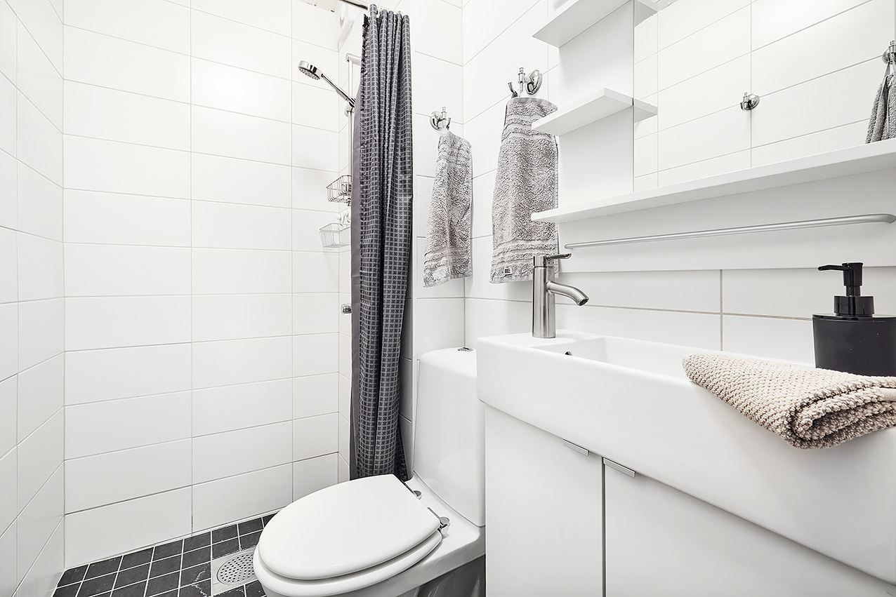 Det välutrustade köket har gott om arbetsytor och skåpsförvaring, samt en mysig matplats vid fönstret. Badrummet är fräscht och stilrent med klinker och kakel. Dessutom har du tillgång till ett förråd i källaren, perfekt för förvaring av saker du inte använder dagligen.