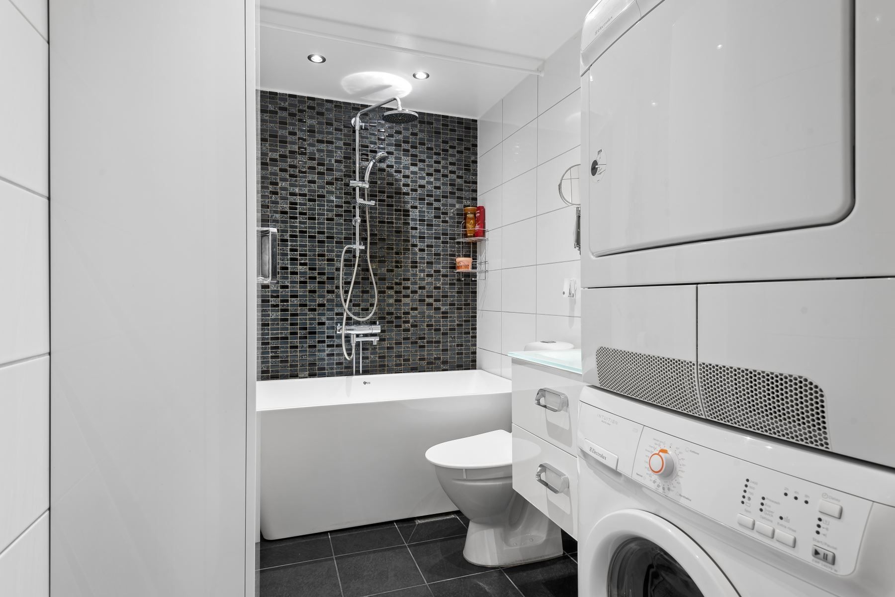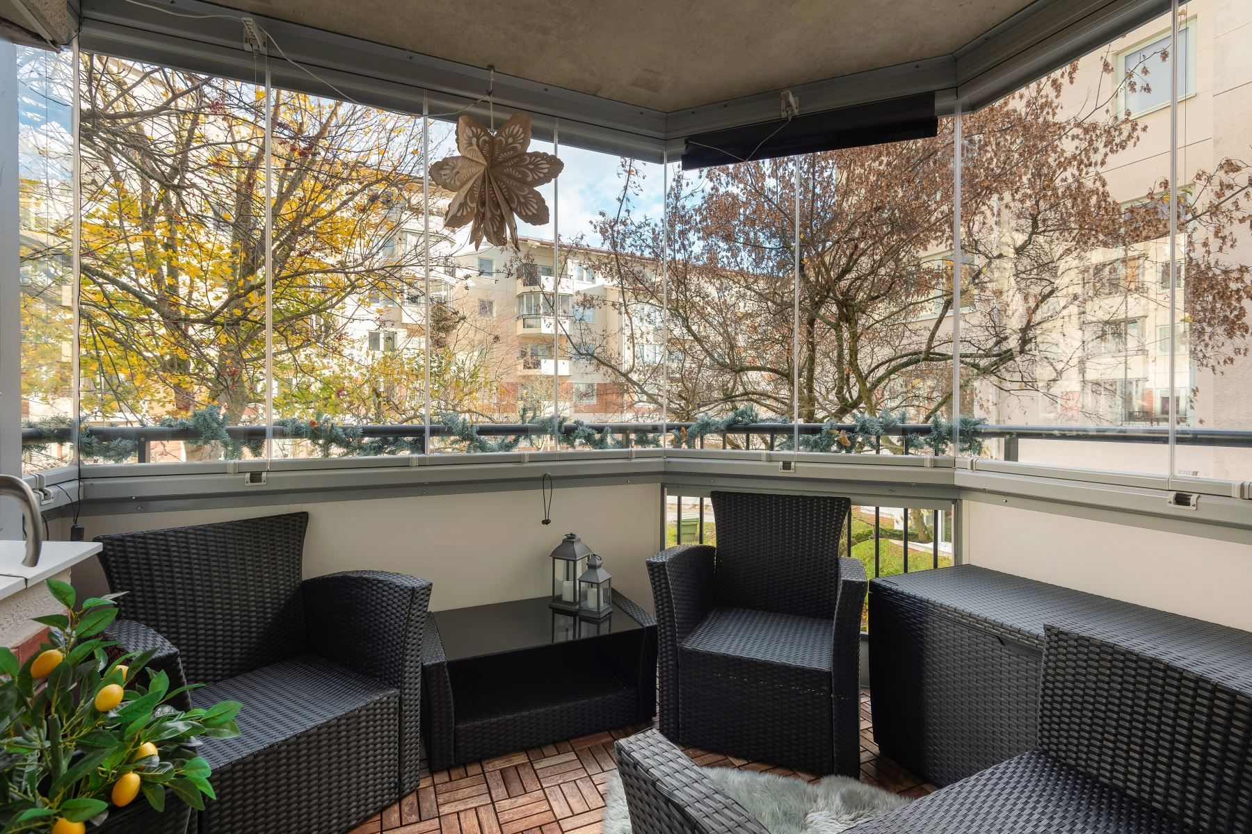 Lägenheten har en stor inglasad balkong. Tack vare fönster i två väderstreck flödar ljuset in och skapar en ljus och luftig atmosfär i hela hemmet. Två smakfullt inredda badrum erbjuder både komfort och lyx i vardagen. Genomgående har stilrena materialval använts för att skapa ett elegant hem som känns inbjudande och tidlöst.
