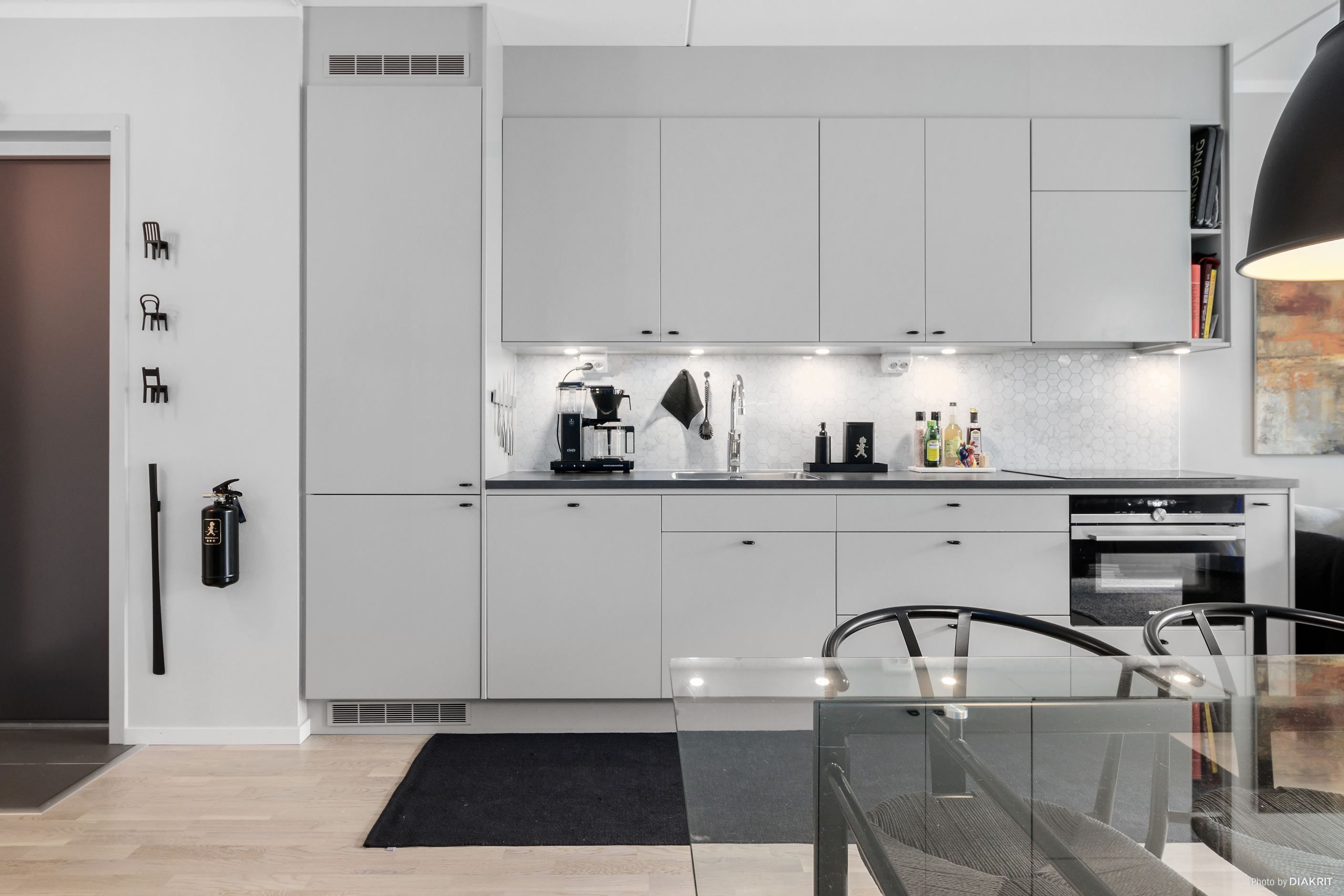 Här kommer verkligen termen "Bara att flytta in" väl till handa. Modern nyproduktion från 2018-19 med väl genomtänkt funktion och planering för det moderna hemmet. Den öppna planlösningen gör att lägenheten känns inbjudande och luftig. Lägenheten har genomgående vitpigmenterade parkettgolv och mörkgrå klinkergolv vid entrédörr. Här erbjuds även ett helkaklat badrum med tvättmaskin som har kombinerad torkfunktion. Multimedieuttag för inkoppling av tv, bredband och radio finns att tillgå, samt Wi-Fi i lägenheten. Välkommen att flytta in!