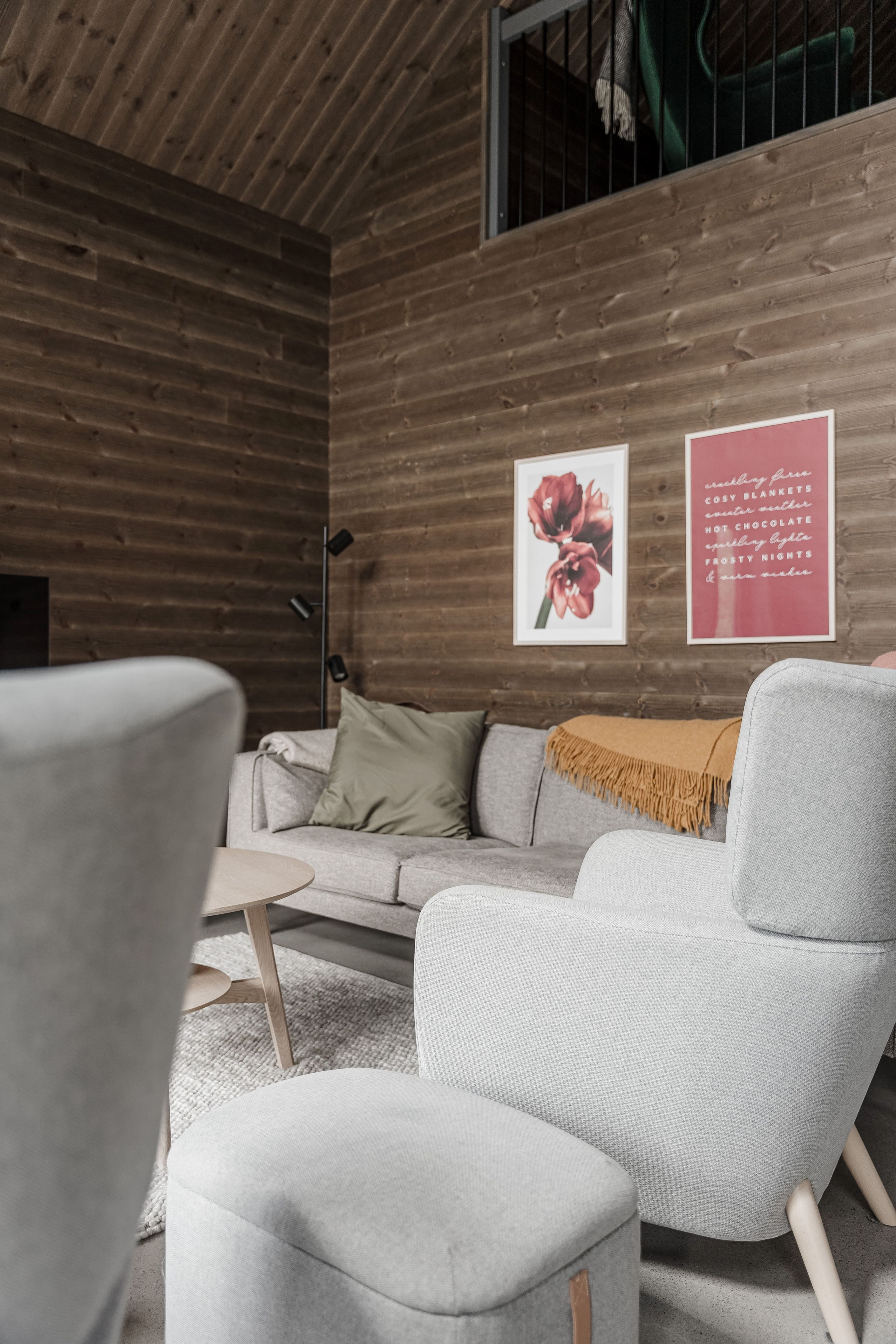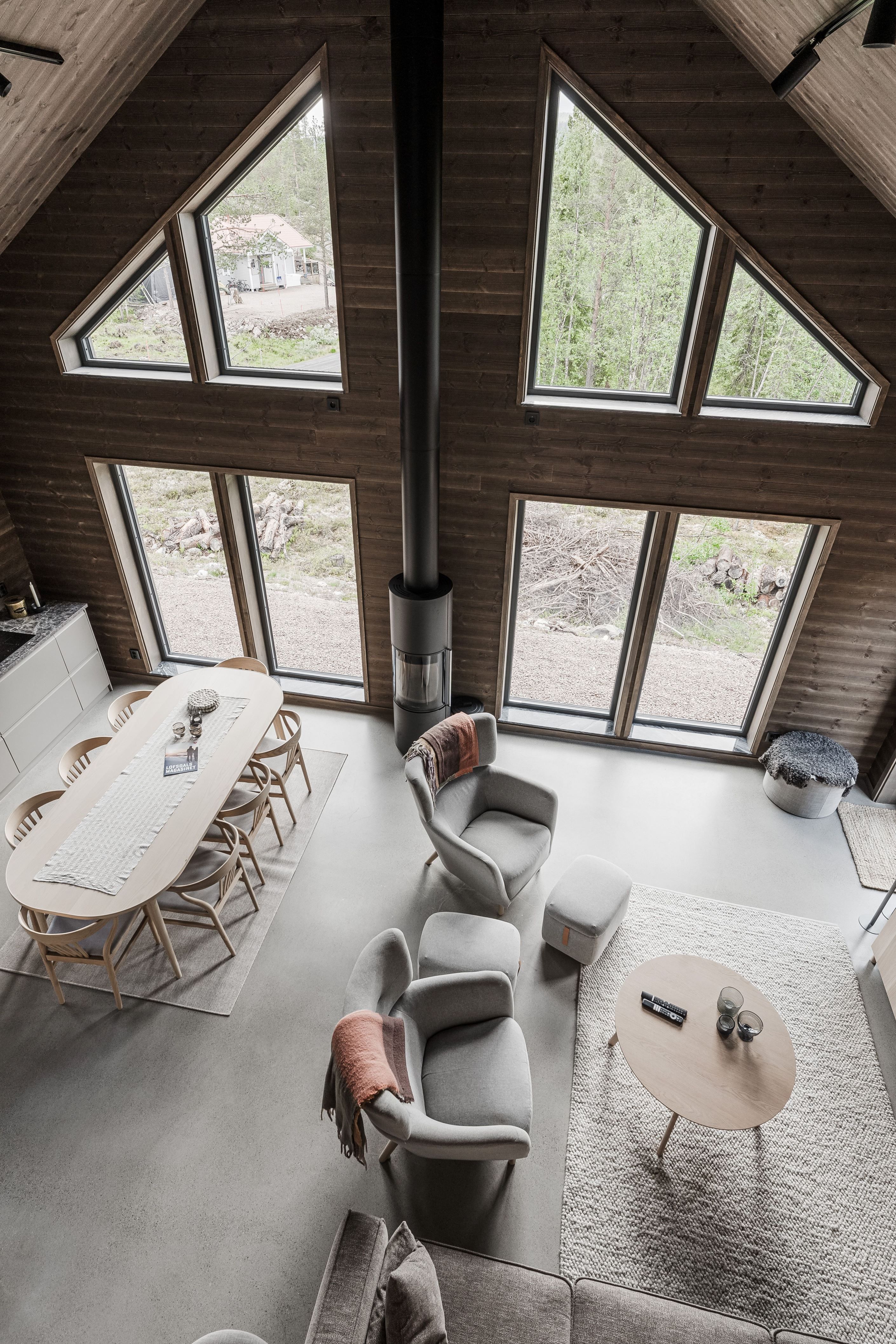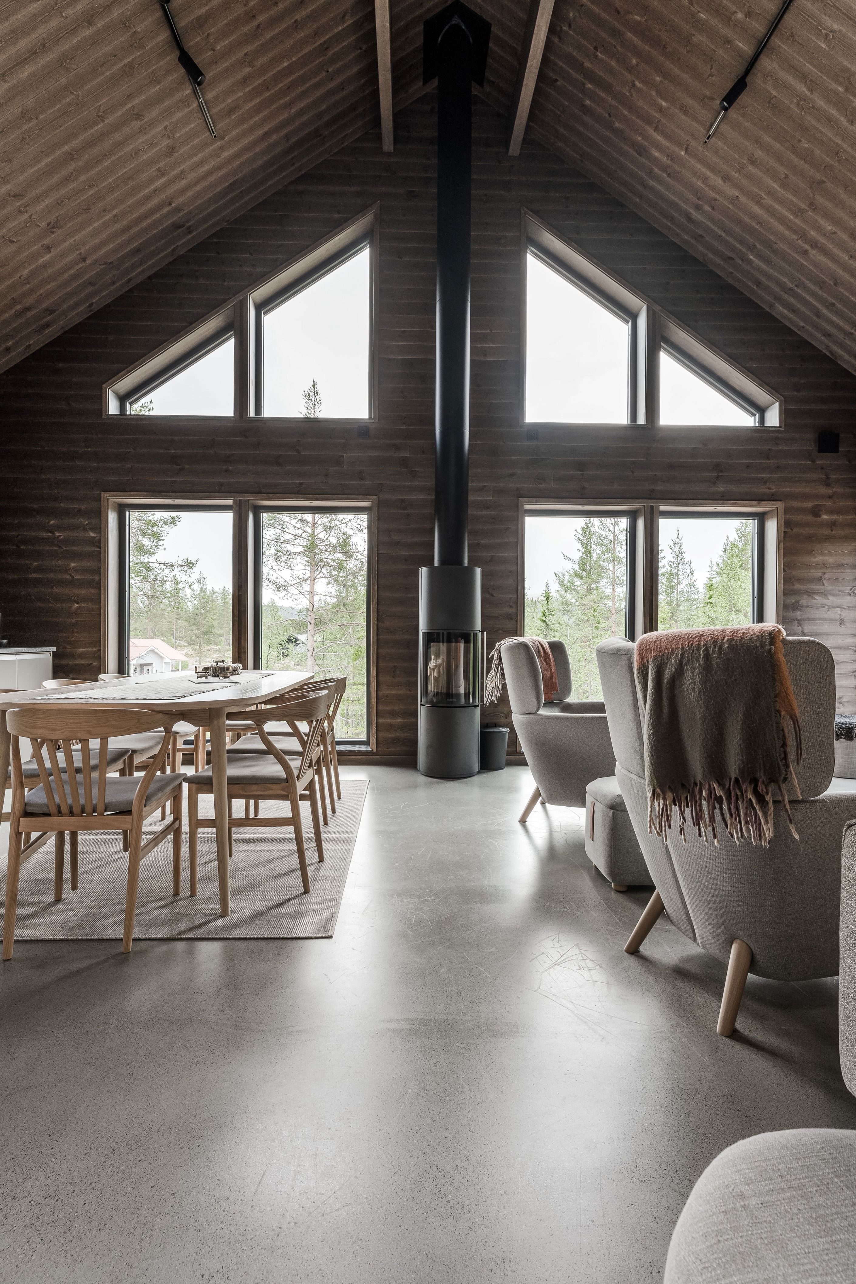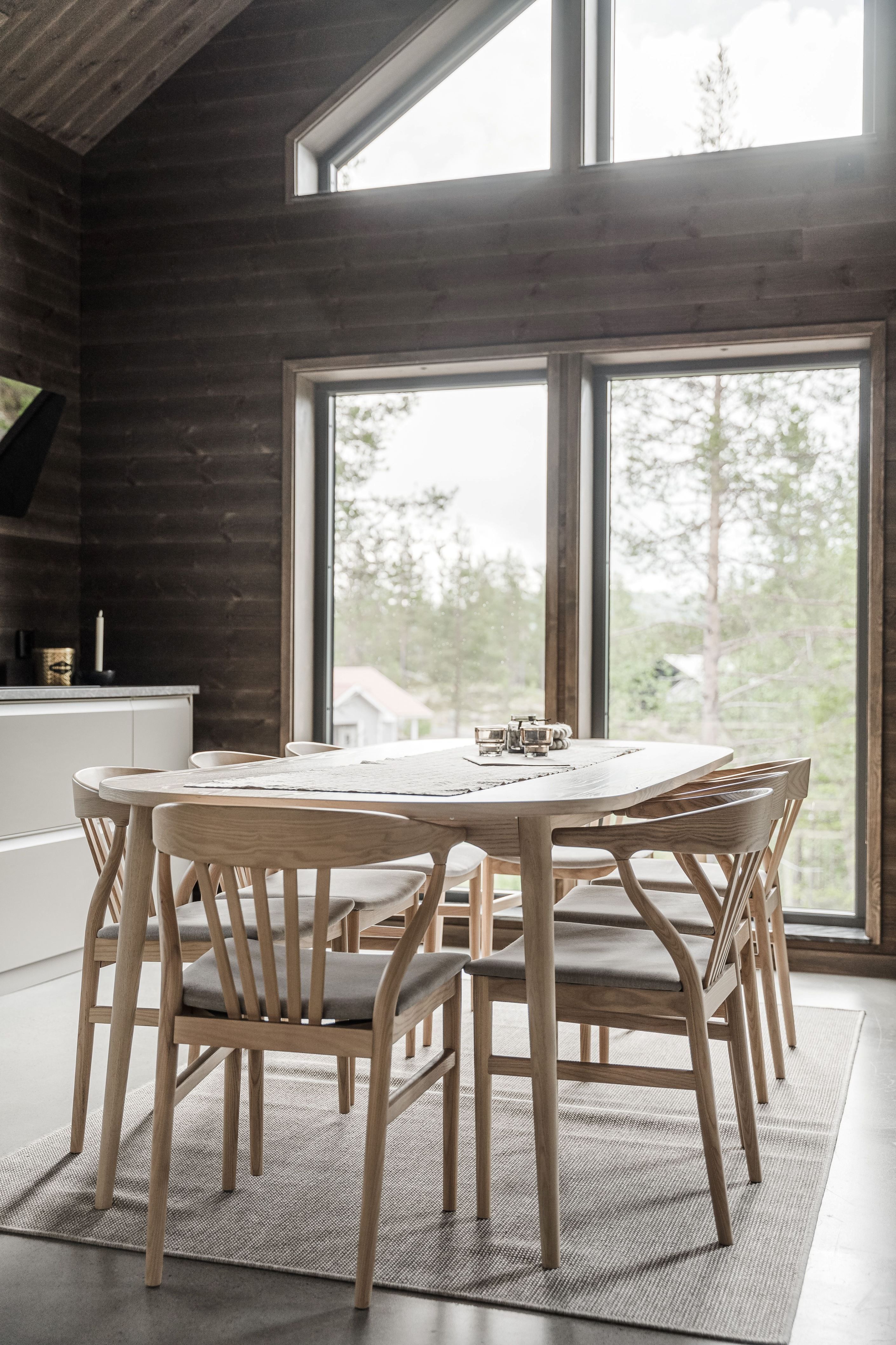 Huset är byggt med omsorg och kvalitét, den öppna planlösningen ger en känsla av rymd tillsammans med en dämpad färgsättning som gör det lätt att komma ner i varv. Här finns ett stort allrum att samlas vid för middag och spelkvällarna framför brasan. Det stora badrummet med bastu blir en perfekt avrundning på en dag ute i naturen.