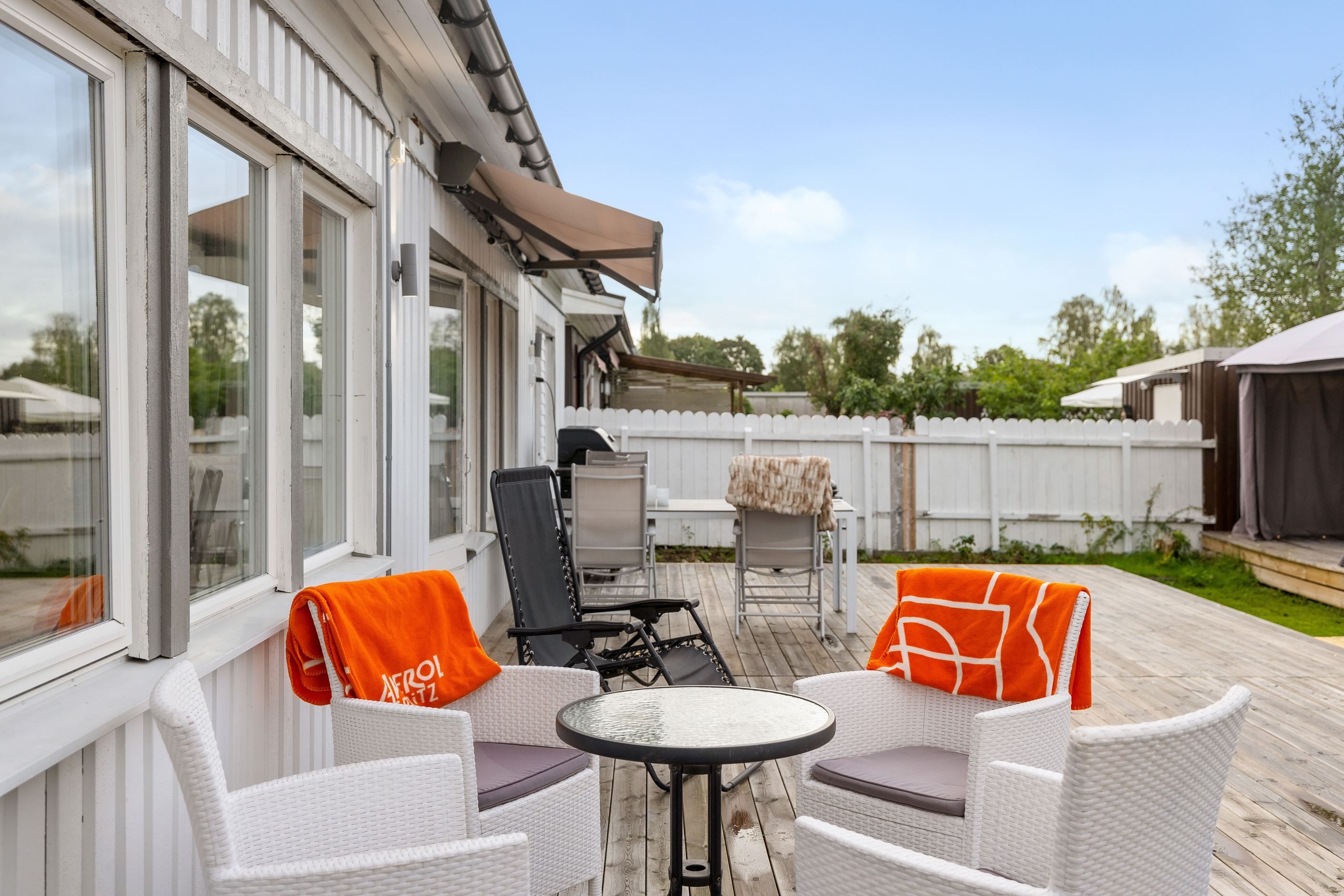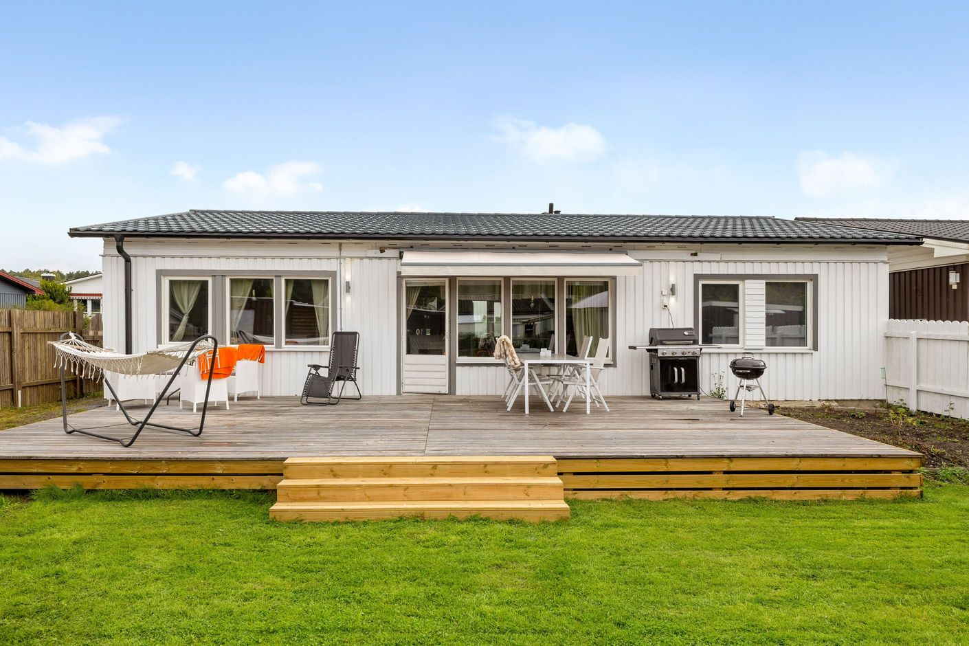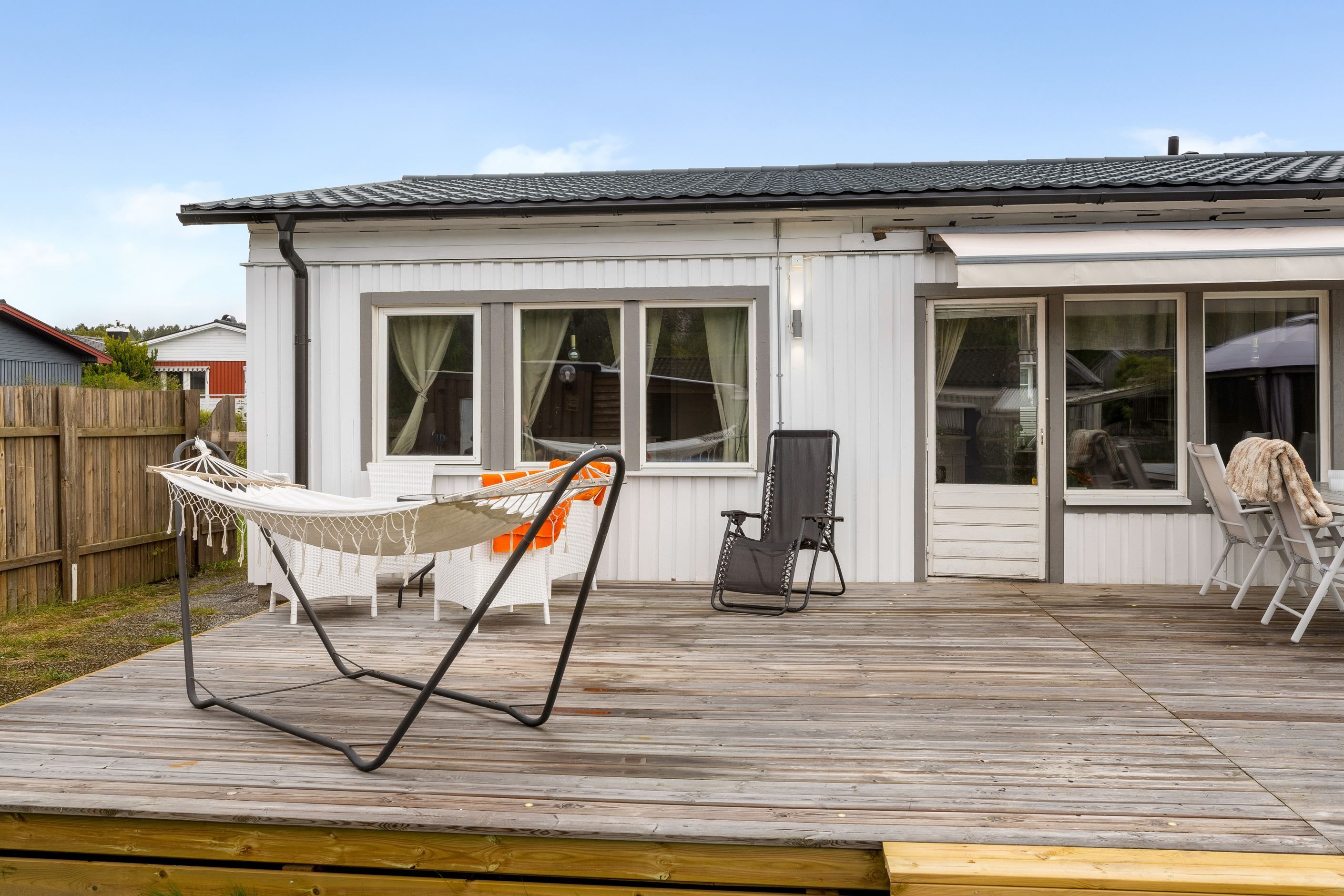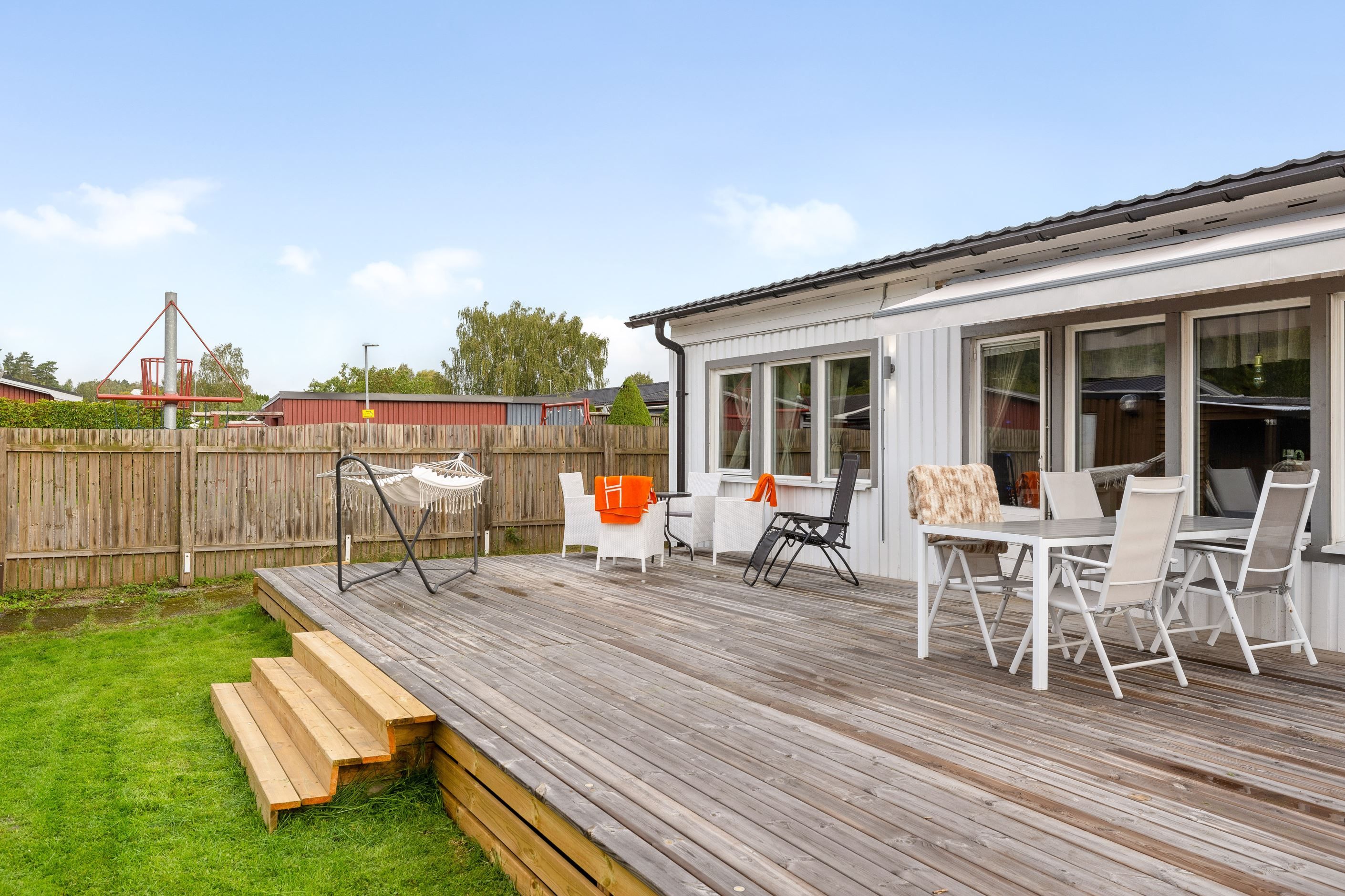 Varmt välkomna till denna fina grändvilla i ett plan. Bostaden är väl omhändertagen och har under de senaste åren renoverats omsorgsfullt. Bostaden disponeras över 3 sovrum med möjligheten att göra ett 4:e sovrum, två badrum och två klädkammare. Vidare finns ett rymligt kök, stort och luftigt vardagsrum med utgång till altanen och trädgården. Trädgården är lättskött med bra solläge och insynsskyddad av staket. På tomten finns även ett isolerat förråd. Garage i länga. Fiber finns indraget.