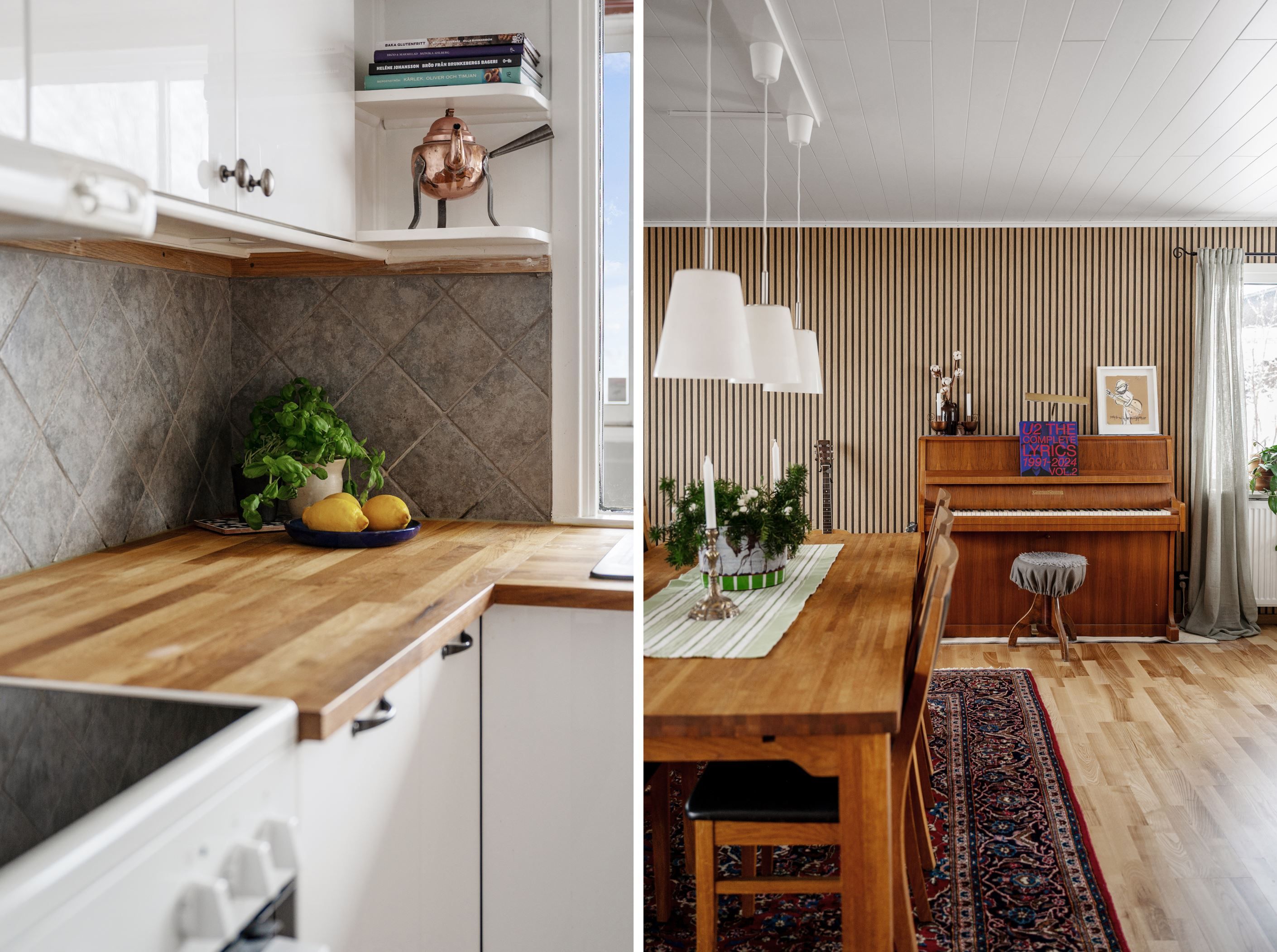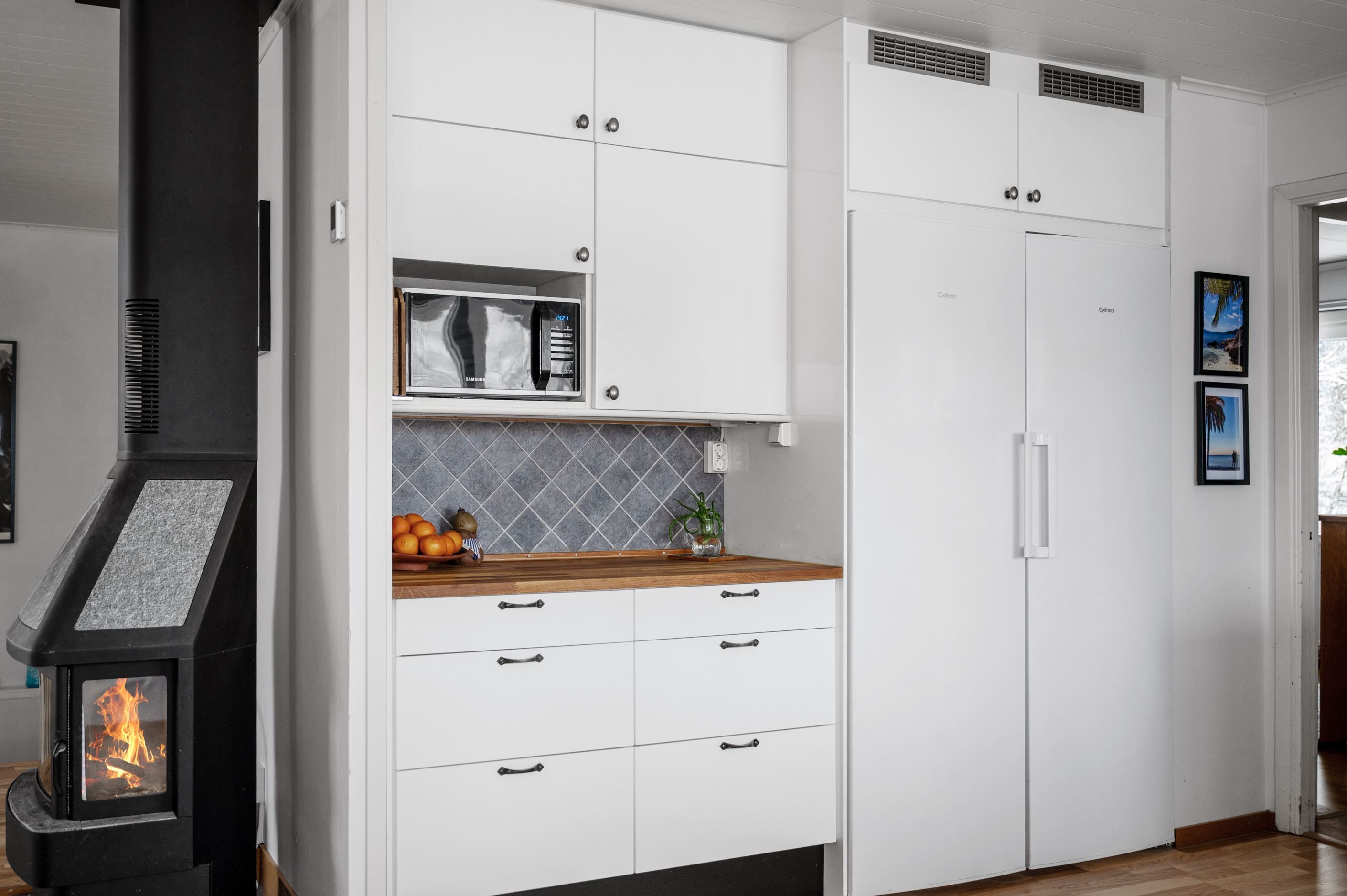 Det praktiska arbetsköket i vinkel erbjuder god förvaring och modern utrustning – funktionellt och välplanerat för den aktiva familjen.