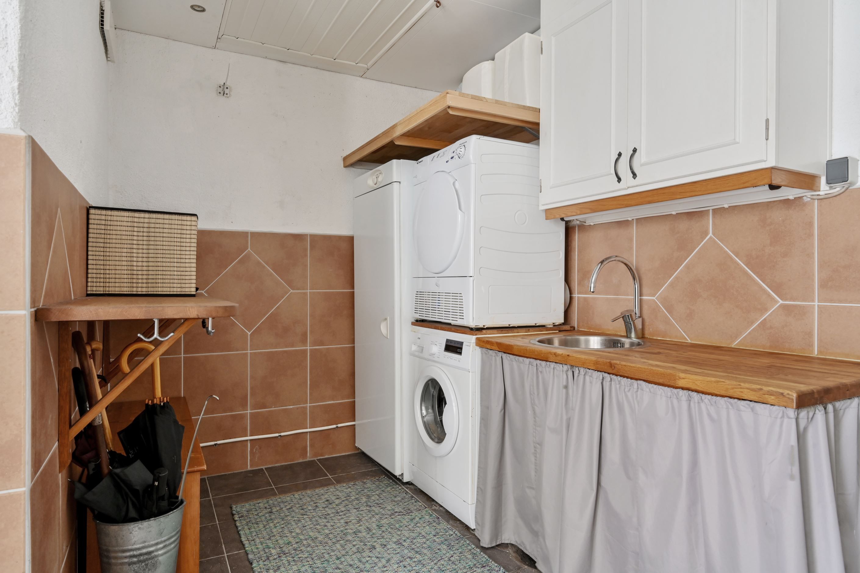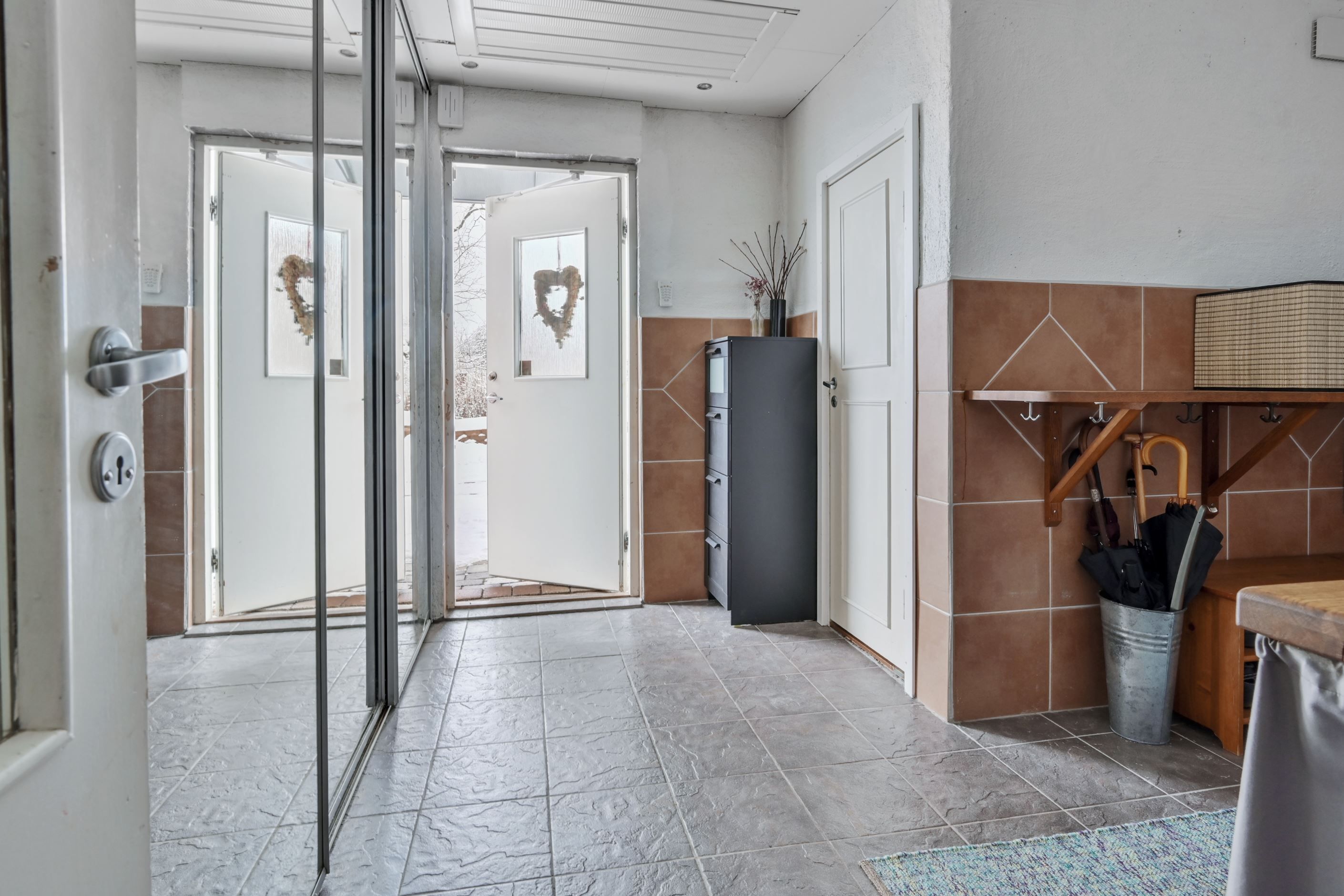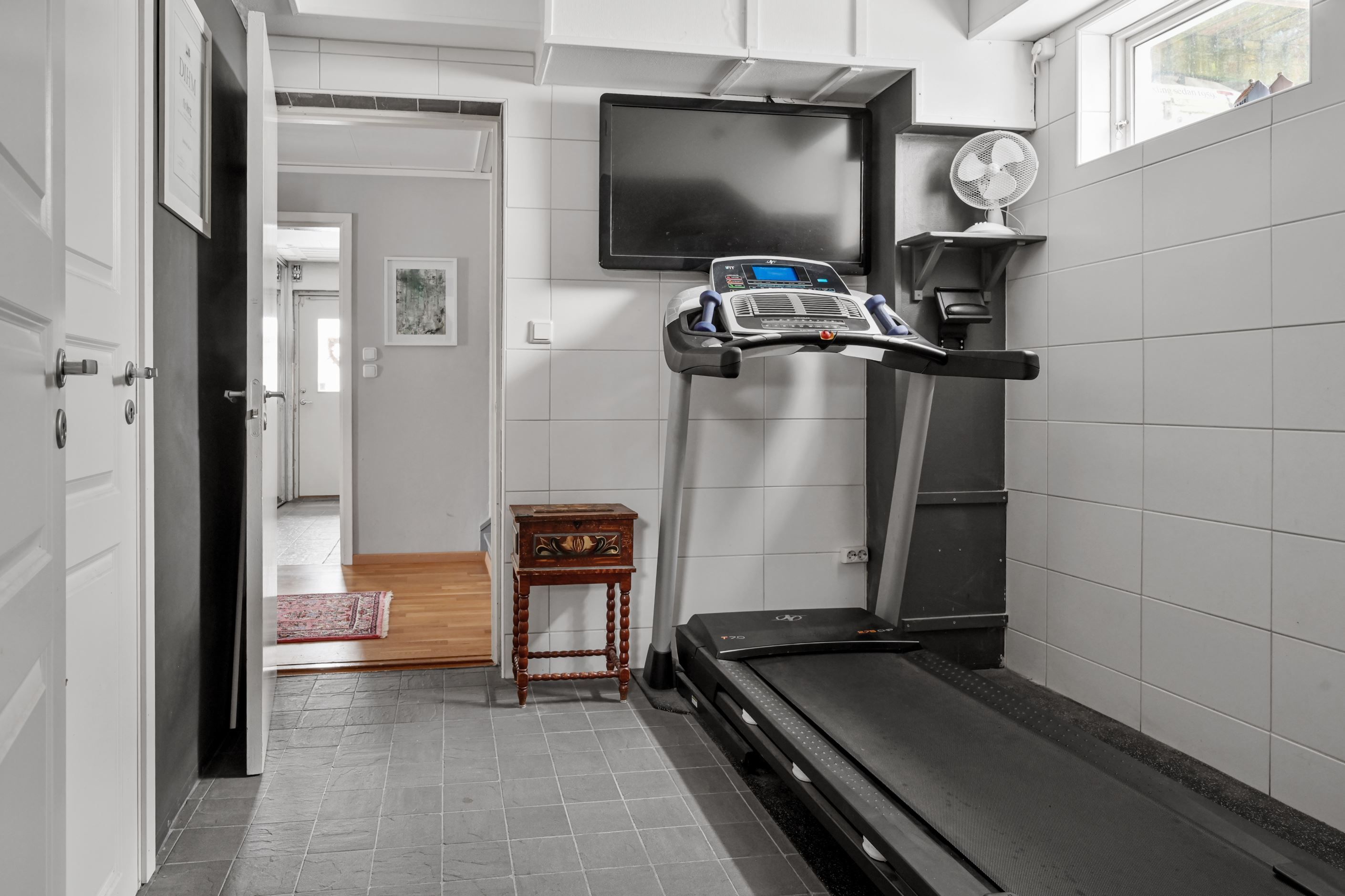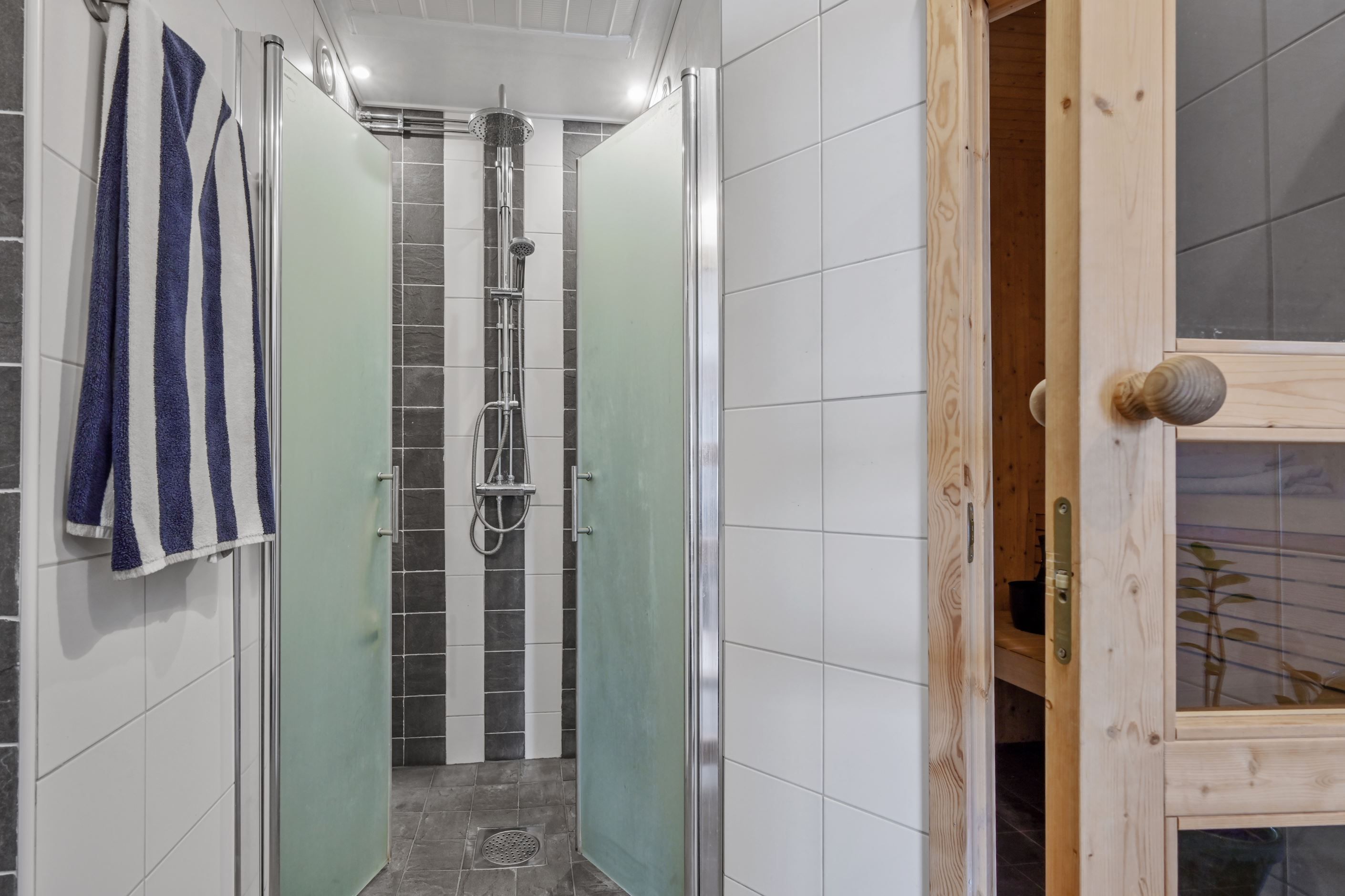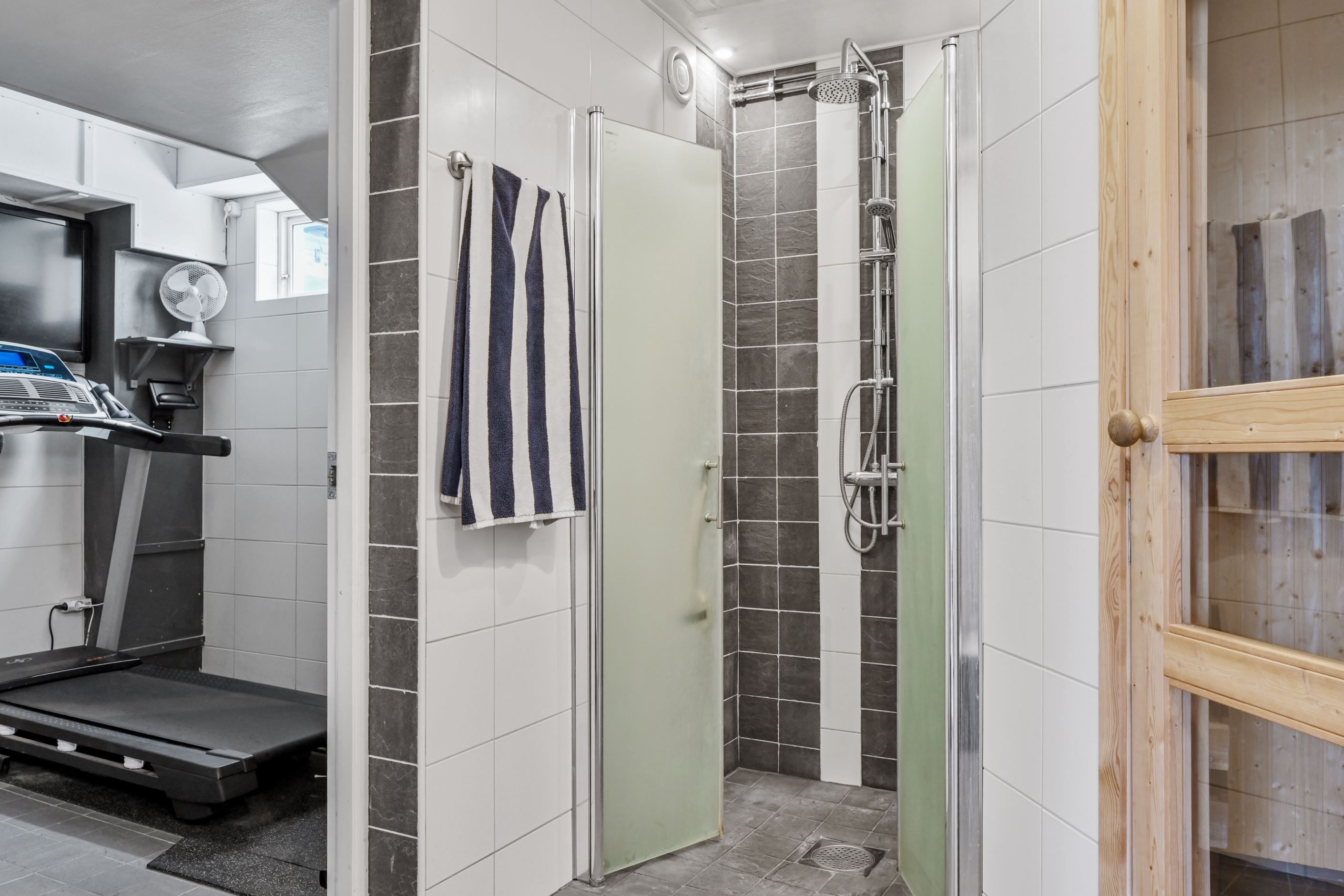 Entréplanet rymmer även ett helkaklat relaxutrymme - perfekt tex som hemmagym. Här finns också ett generöst duschutrymme och bastu – en uppskattad del av huset som ger vardagslyx året runt. På entréplanet finns tvättstuga med groventré, gott om förvaring i garderober med skjutdörrar, arbetsbänk, tvättmaskin, torktumlare och torkskåp samt separat förrådsdel.