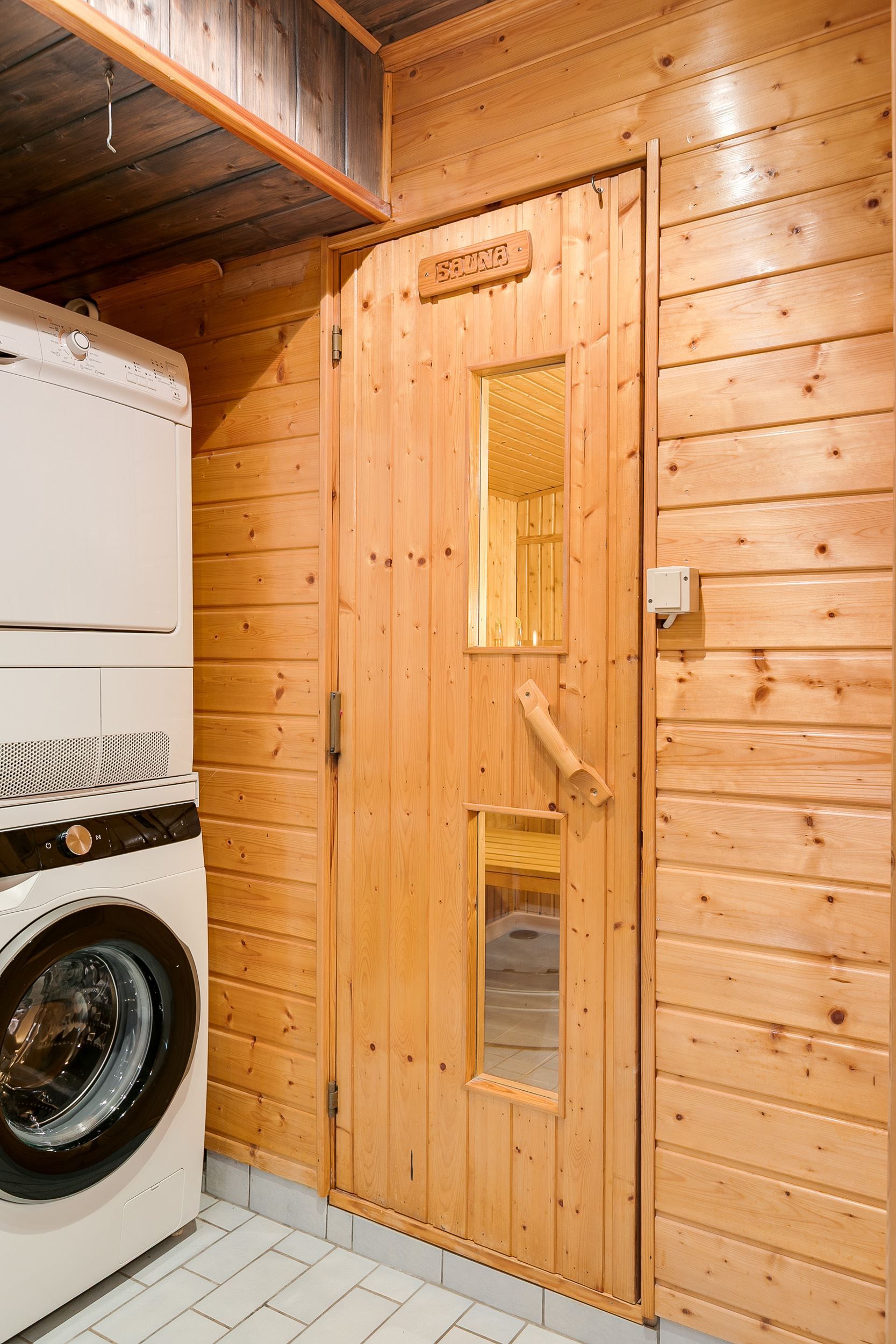 Husets planlösning är både öppen och social, med ett modernt kök i utmärkt skick som sömlöst övergår i vardagsrummet – perfekt för både vardagsliv och umgänge. Här finns två helkaklade badrum, varav ett på sutterängplan där du även finner en bastu – perfekt för avkoppling efter en lång dag.