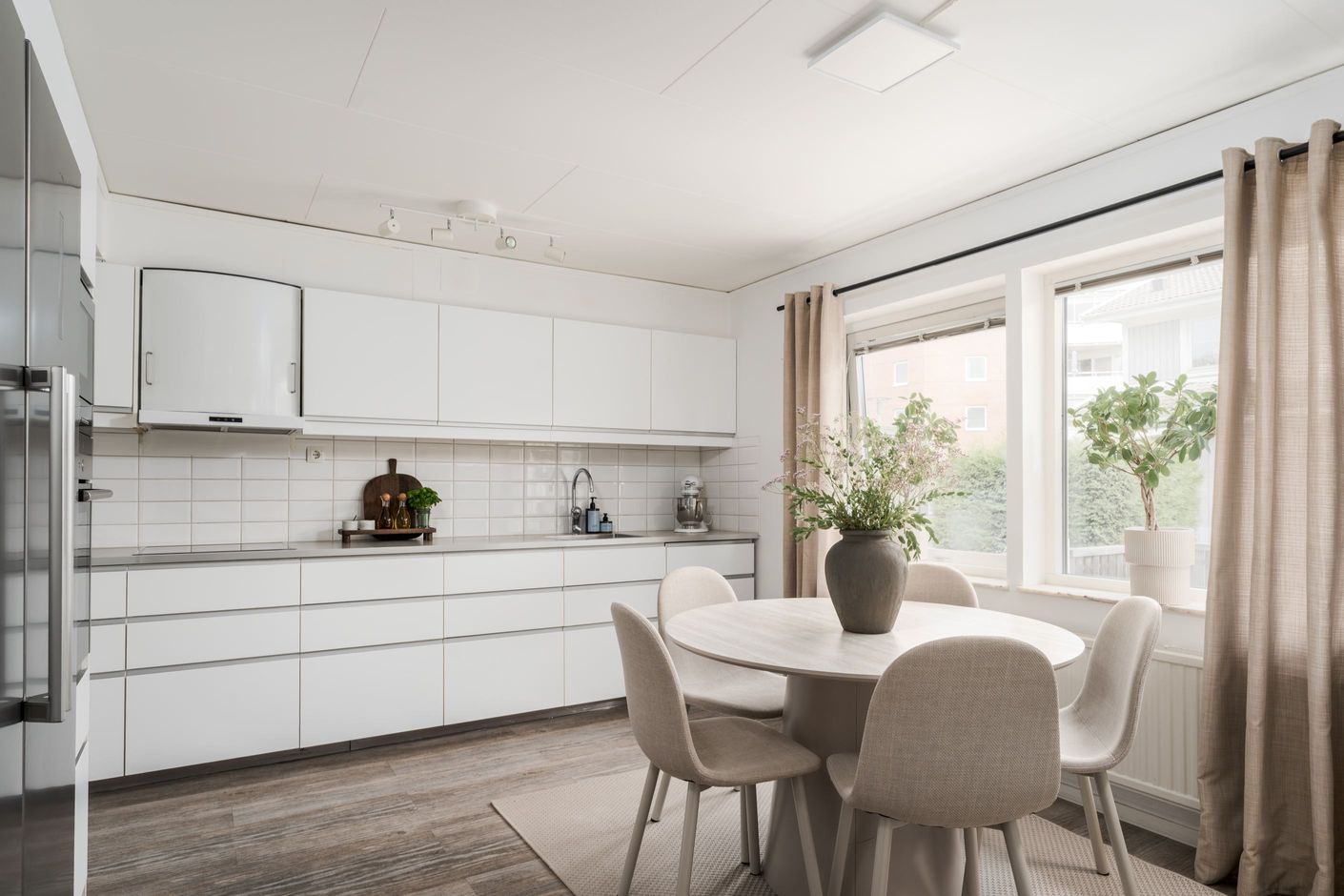 Bostaden erbjuder välplanerade ytor som gör det enkelt att trivas. Här finns stora sällskapsytor för både umgänge och avkoppling. Radhuset har dessutom genomgått större renoveringar där man satsat på moderna material och bekväma lösningar. Bland annat har kök, helkaklat badrum, ytskikt, inglasat uterum samt altandäck uppdaterats – allt i smakfull stil.