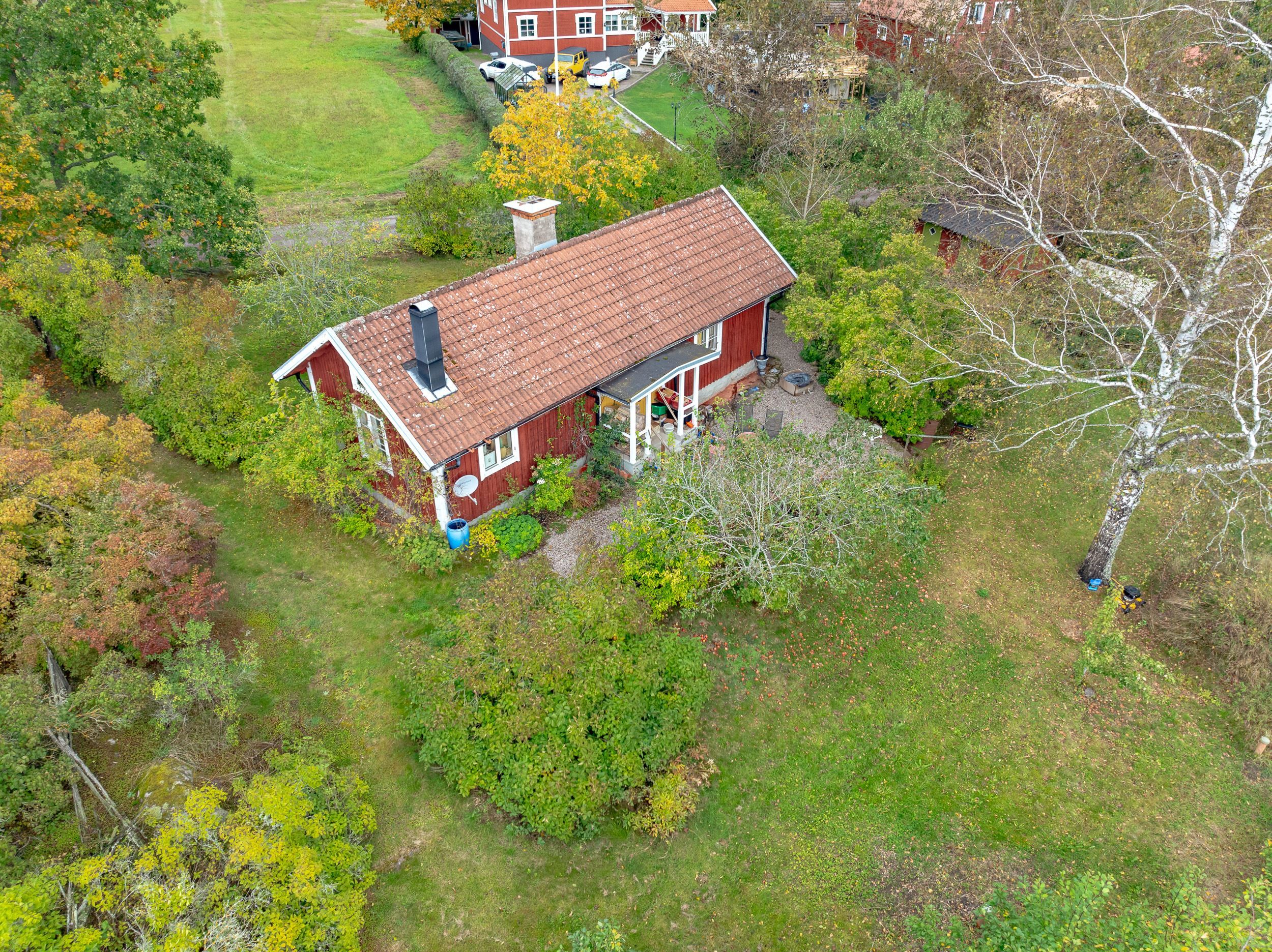 Huvudbyggnaden är fylld av charm och karaktär. I vardagsrummet finns en stämningsfull kamin som sprider värme under kyliga kvällar, trägolv och ljusa tapeter som tillsammans ger en hemtrevlig känsla. Köket är utrustat med kyl och frys, diskmaskin, diskho och en klassisk vedspis för den rätta torpkänslan. Här finns också plats för ett matbord där du kan njuta av utsikten över tomten. Samtliga elinstallationer är nyligen utförda, och elcentralen är från 2024 – redo att möta moderna krav.