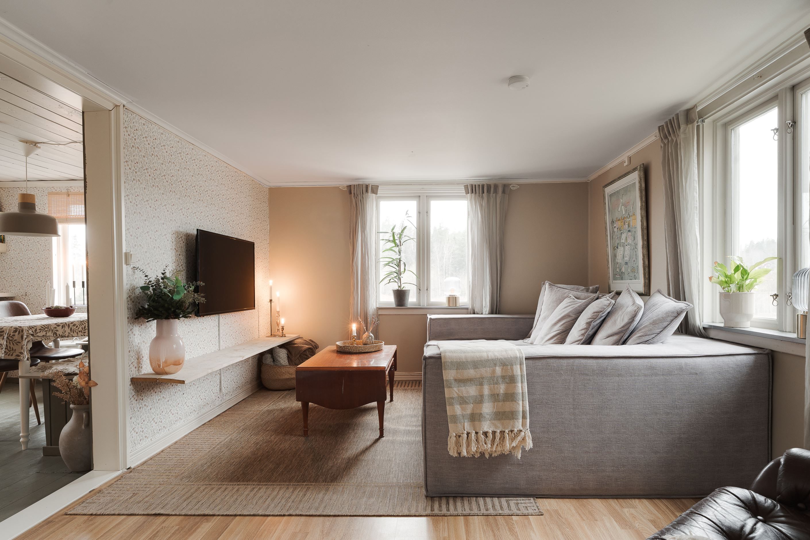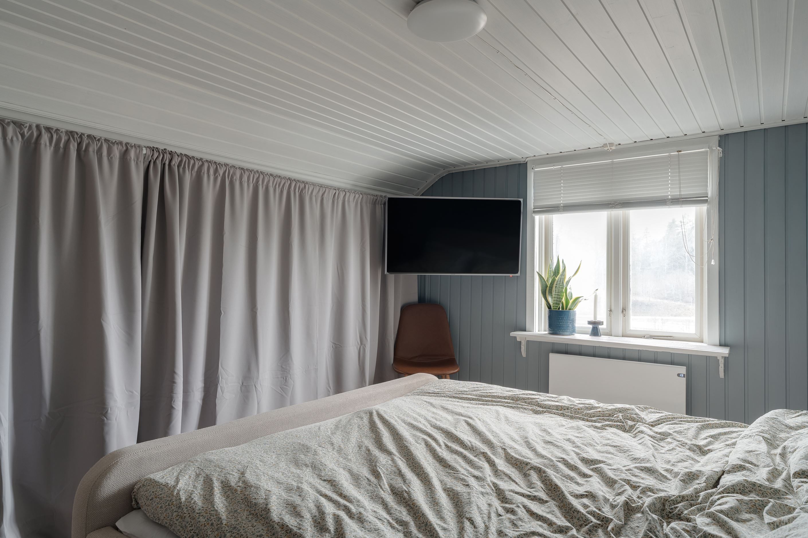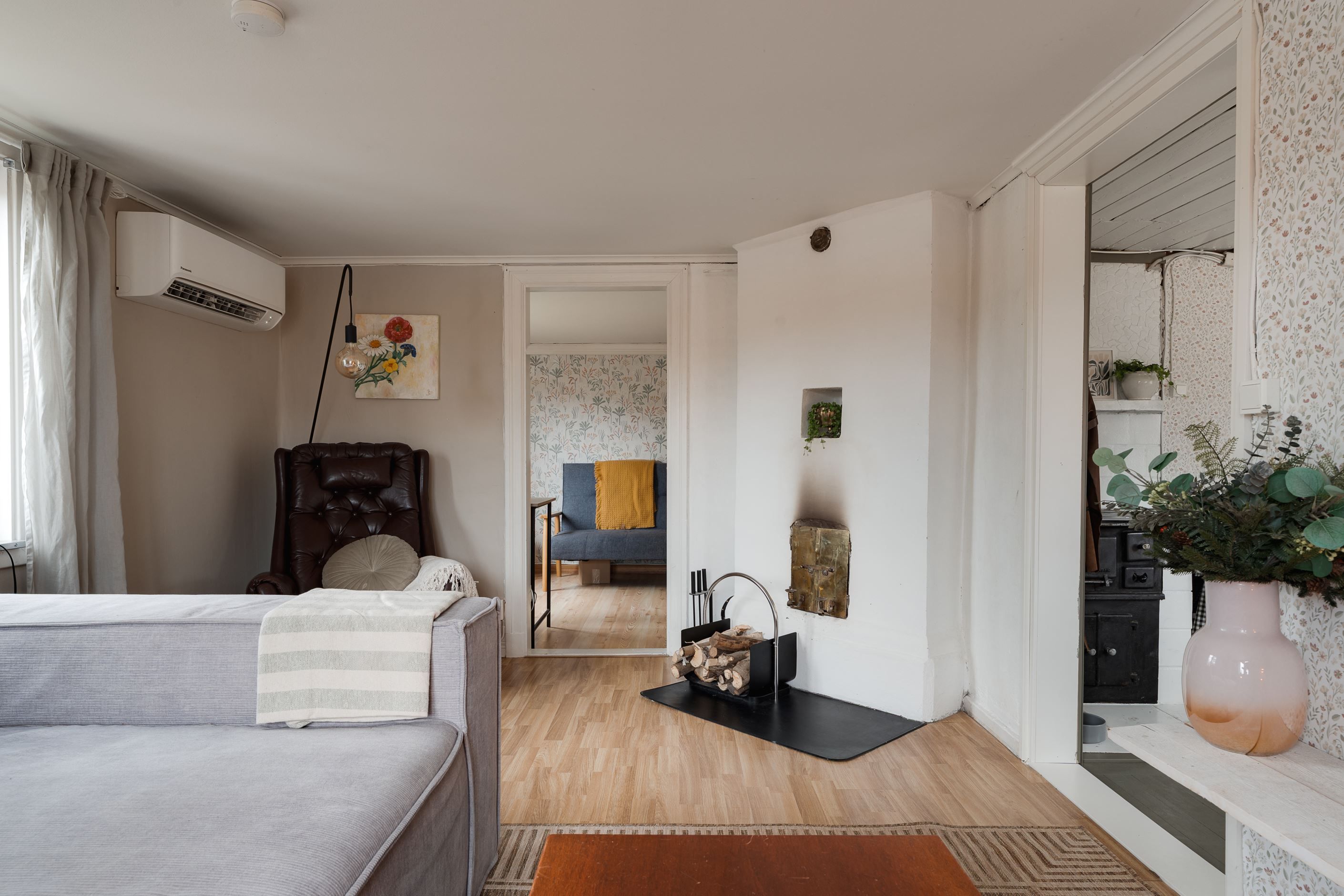 Huset värms upp med luftvärmepump och sommartid kan man såklart nyttja den för skön ac.
