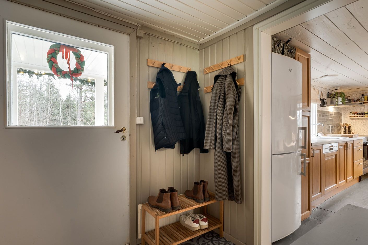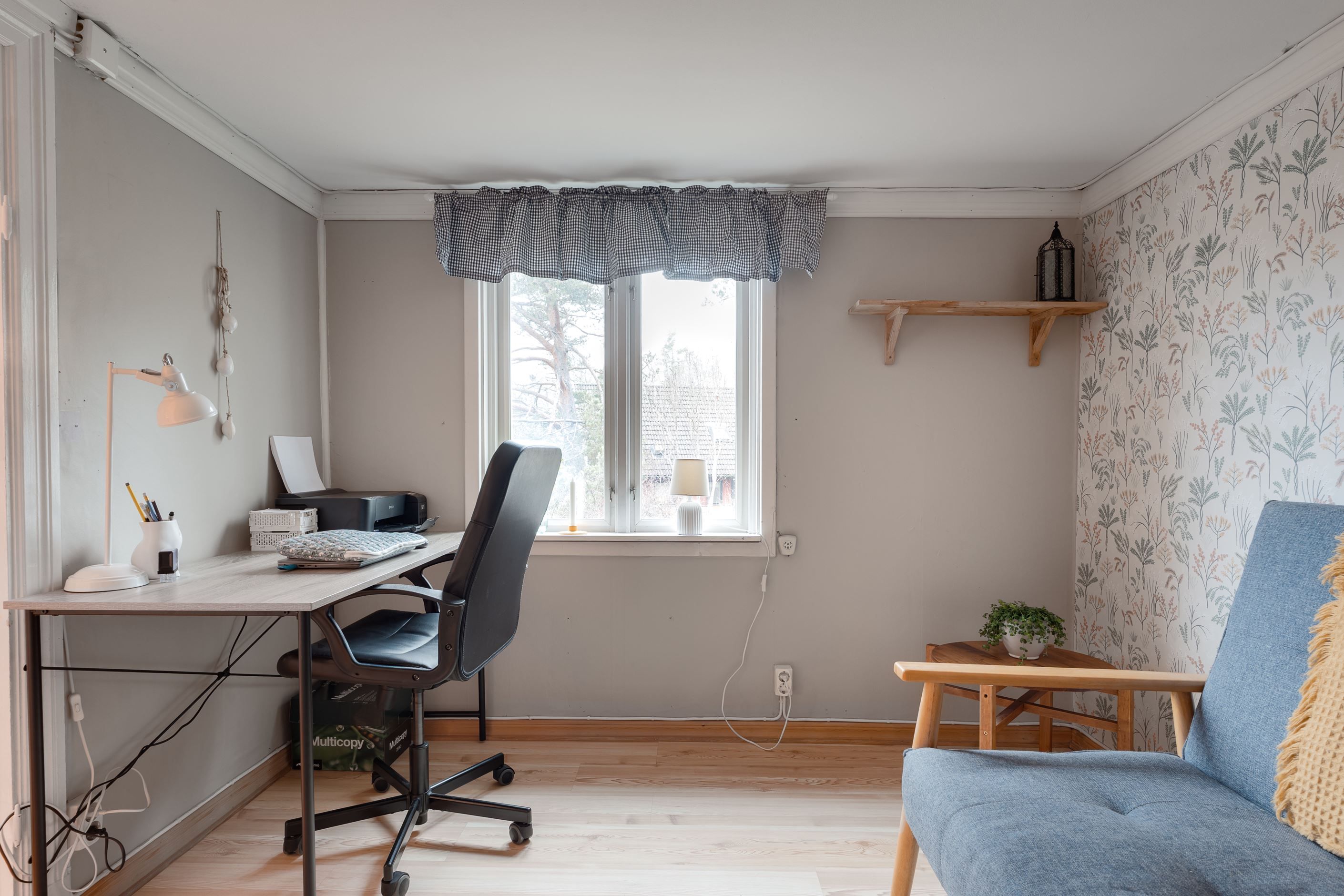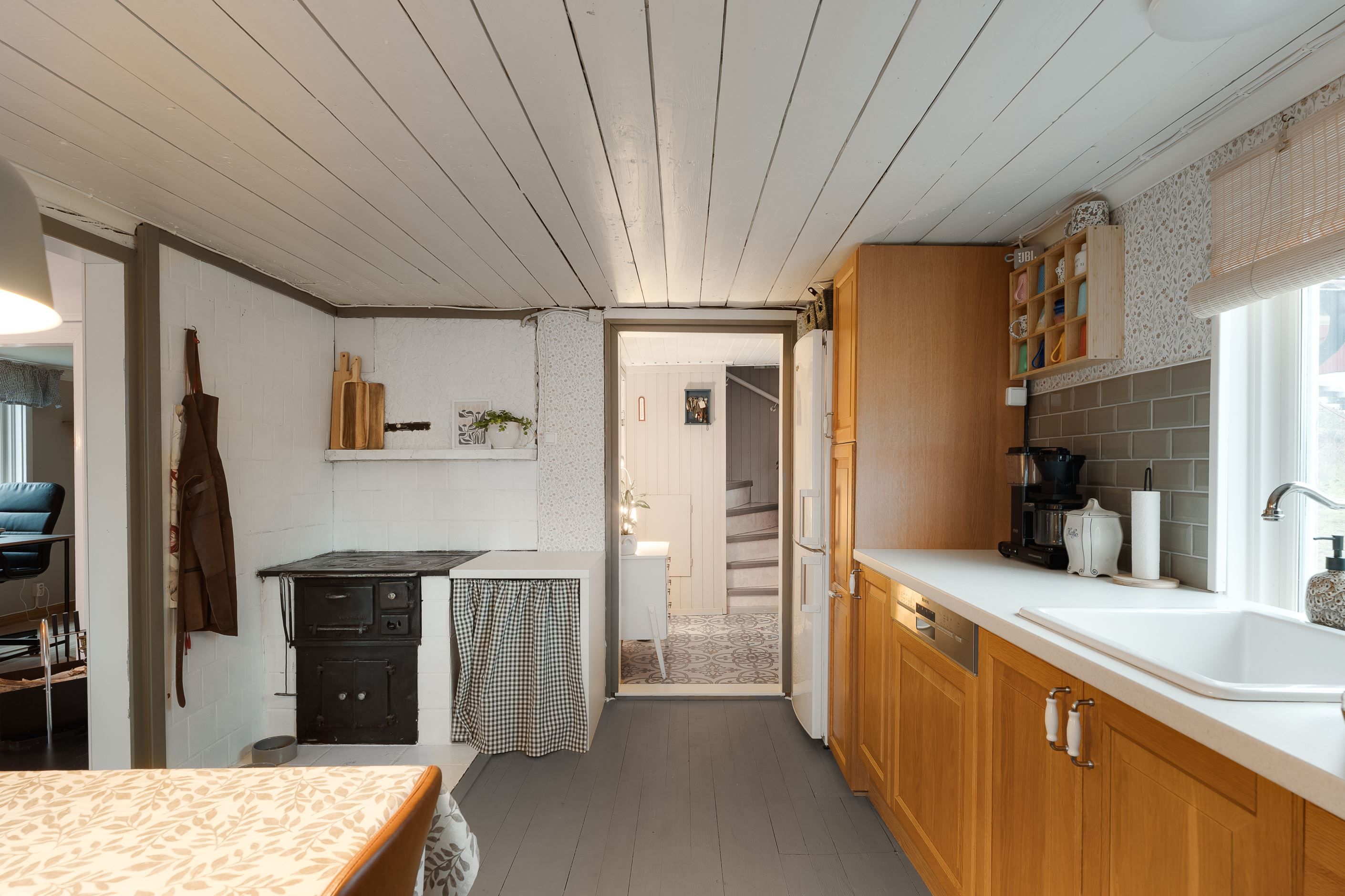 Bostadshuset erbjuder en fin välkomnande hall med badrum, stort kök med plats för många, vardagsrum med öppen spis och ett sovrum/kontor. På övre plan möts man av en mindre hall där man har tvättstuga, stort härligt sovrum med bra förvaring.
