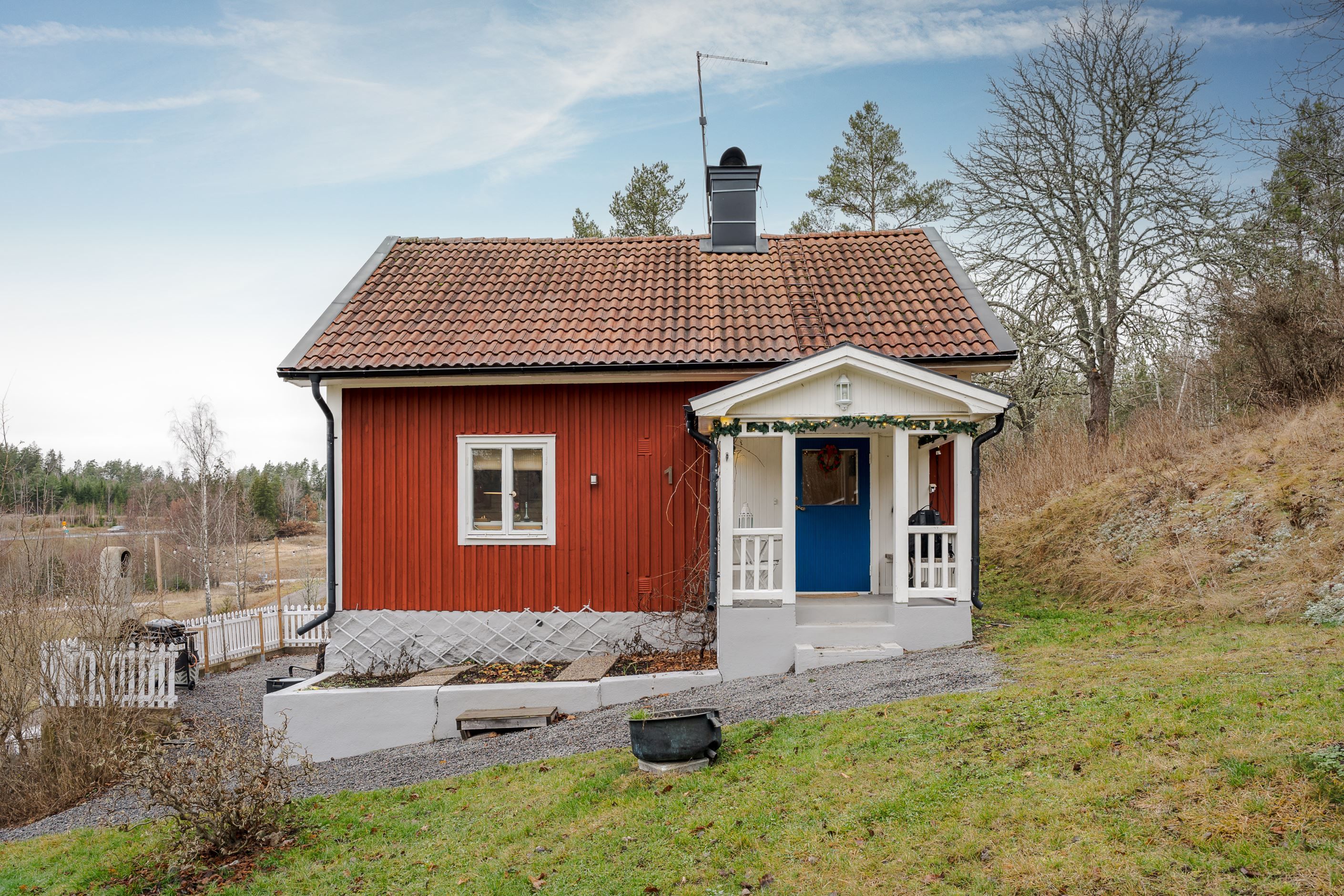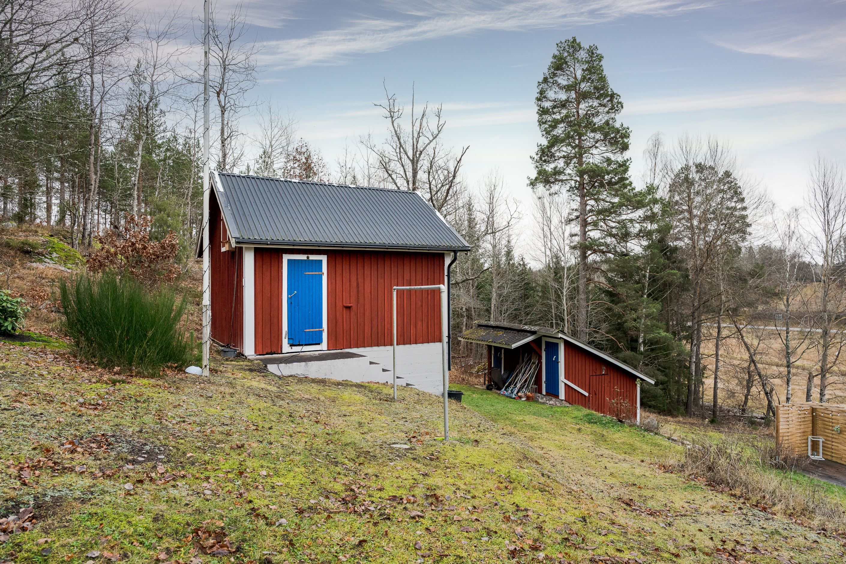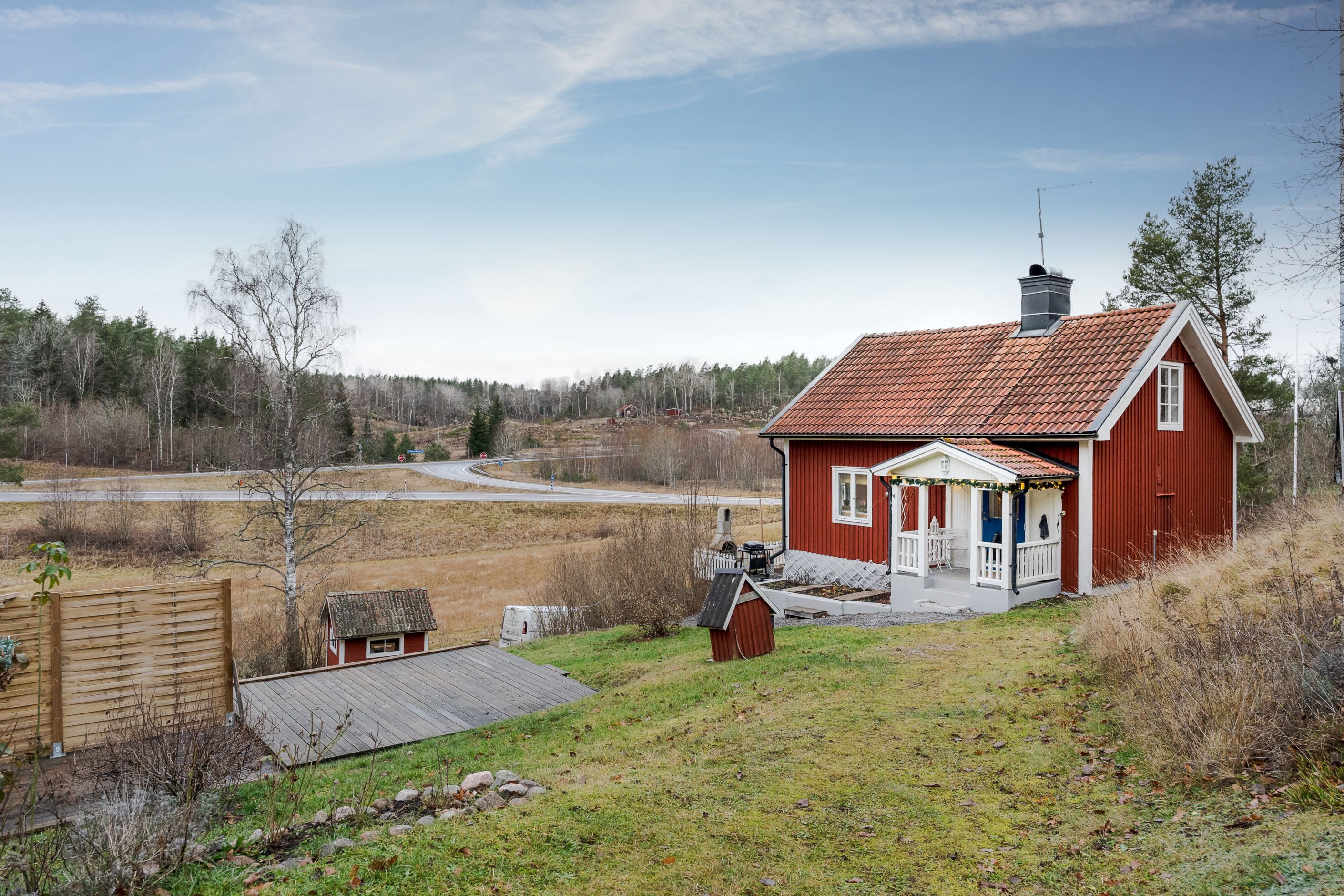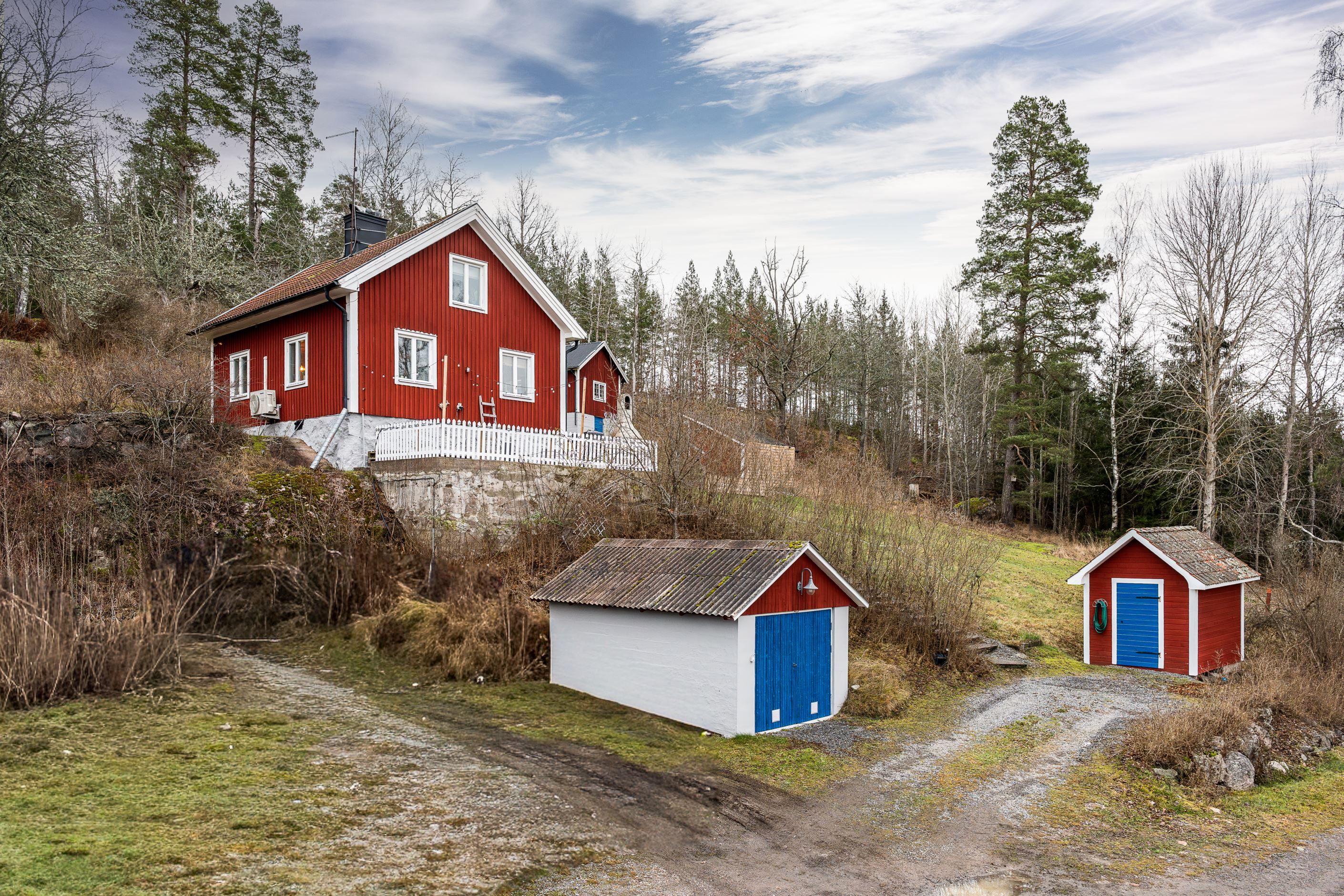 Här bor du med karaktär, lugnt beläget med flera mindre byggnader på tomten.