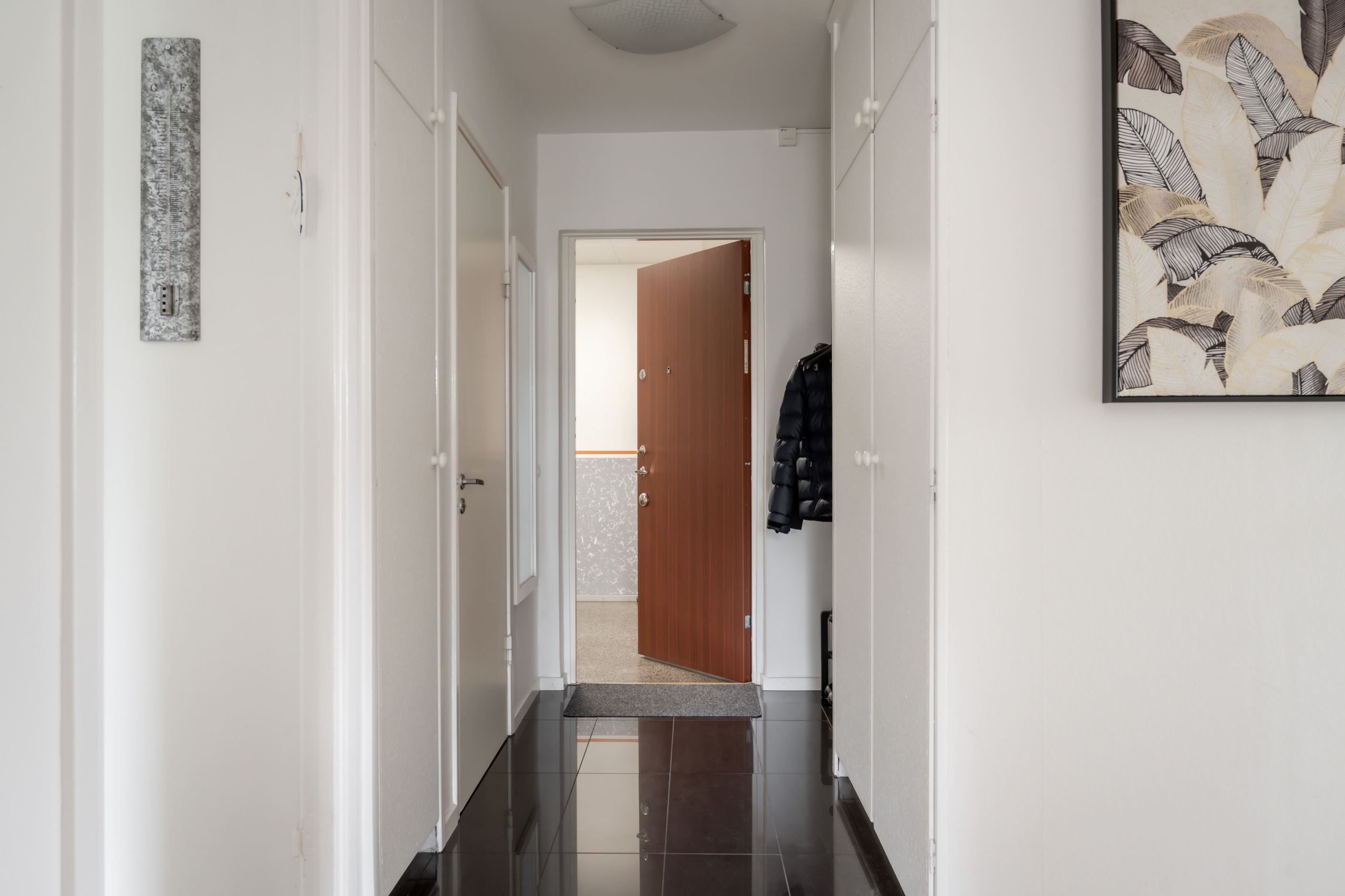 Här bor du i ett uppskattat gavelläge med fönster och ljus in från två riktningar. Balkongen ligger i skönt läge och bjuder på sol hela dagen. Härifrån ser du ut över kvarteret och naturen i fjärran.